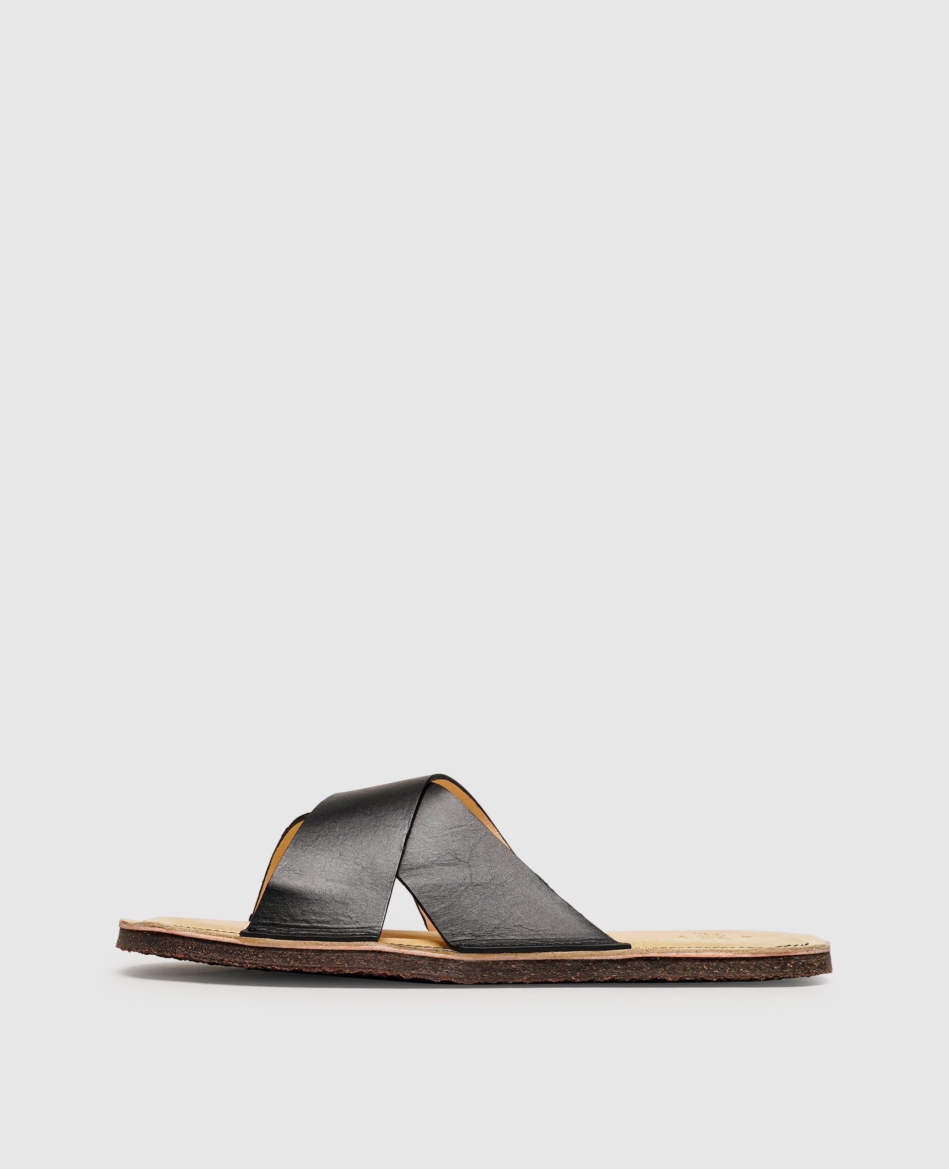 This slip-on sandal for men is the ideal companion for your holidays this summer. The lightweight model features two crossed straps made from vegetable-tanned calfskin, creating a simple and above all light and airy appearance. The comfortable leather footbed offers good support and is complemented by a non-slip outsole made from natural crepe. These slip-on sandals can be teamed with all your casual summer looks.