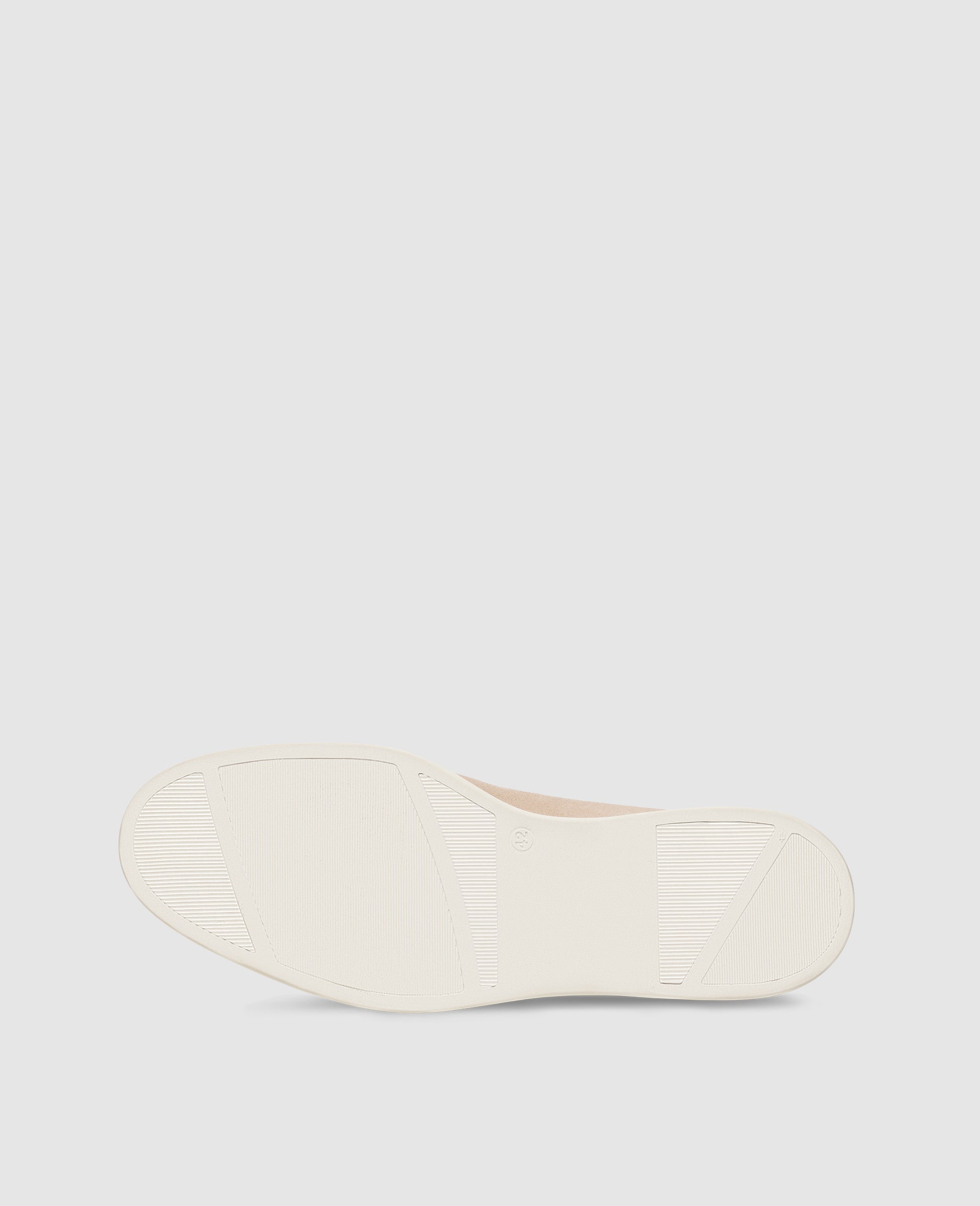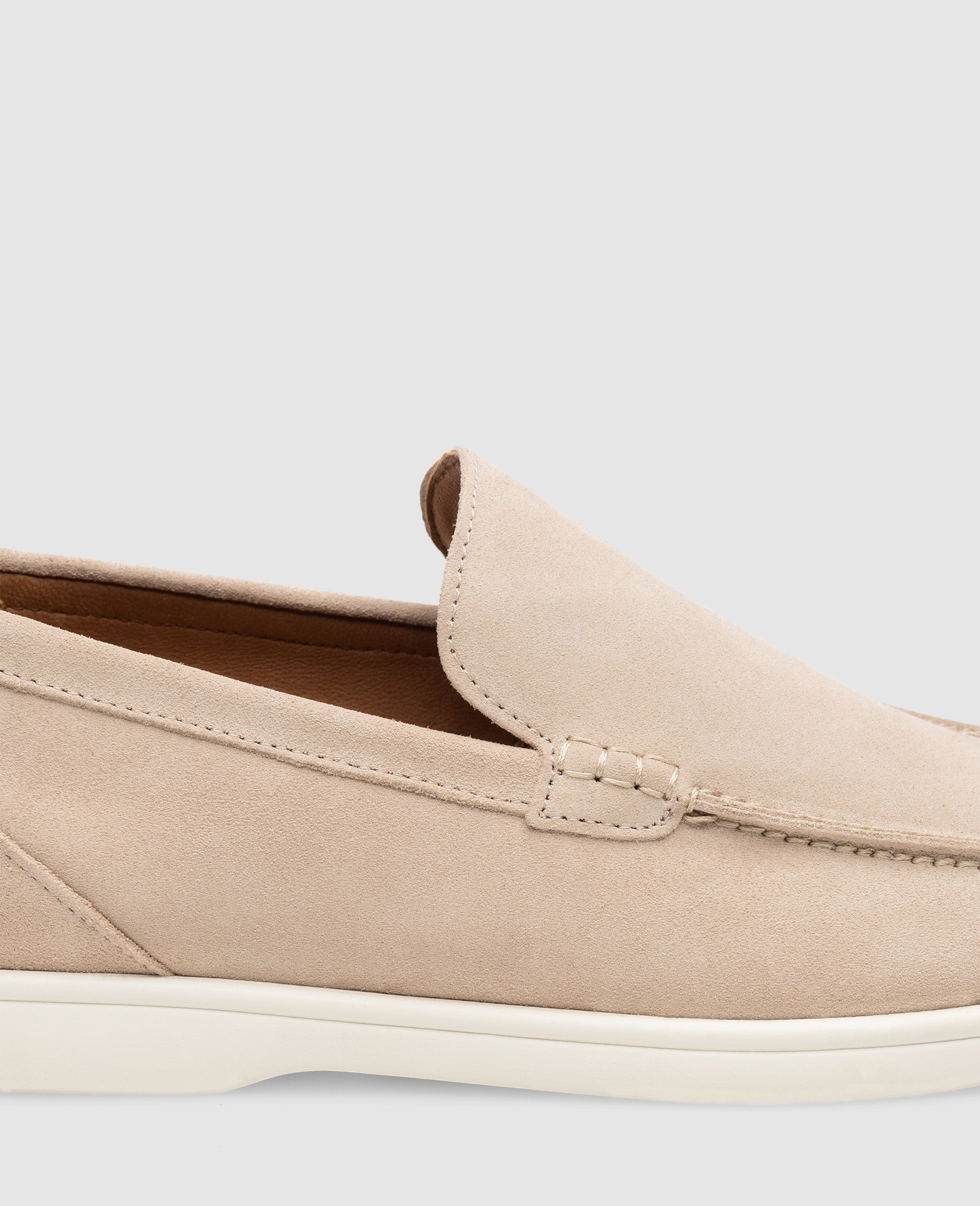 The super lightweight Elia slip-on shoe in beige calf suede impresses with its elegant design and high-quality materials. The leather lining ensures optimum comfort, while the soft rubber sole offers a pleasant walking sensation. A perfect companion for the summer.