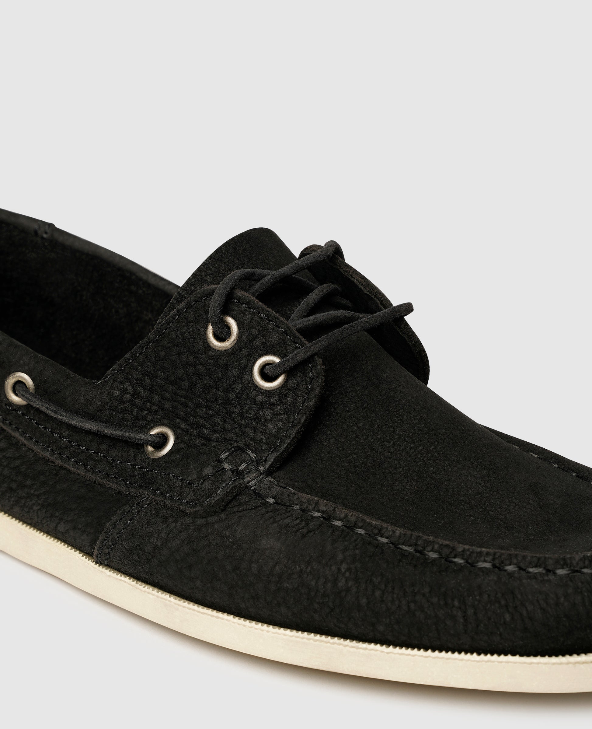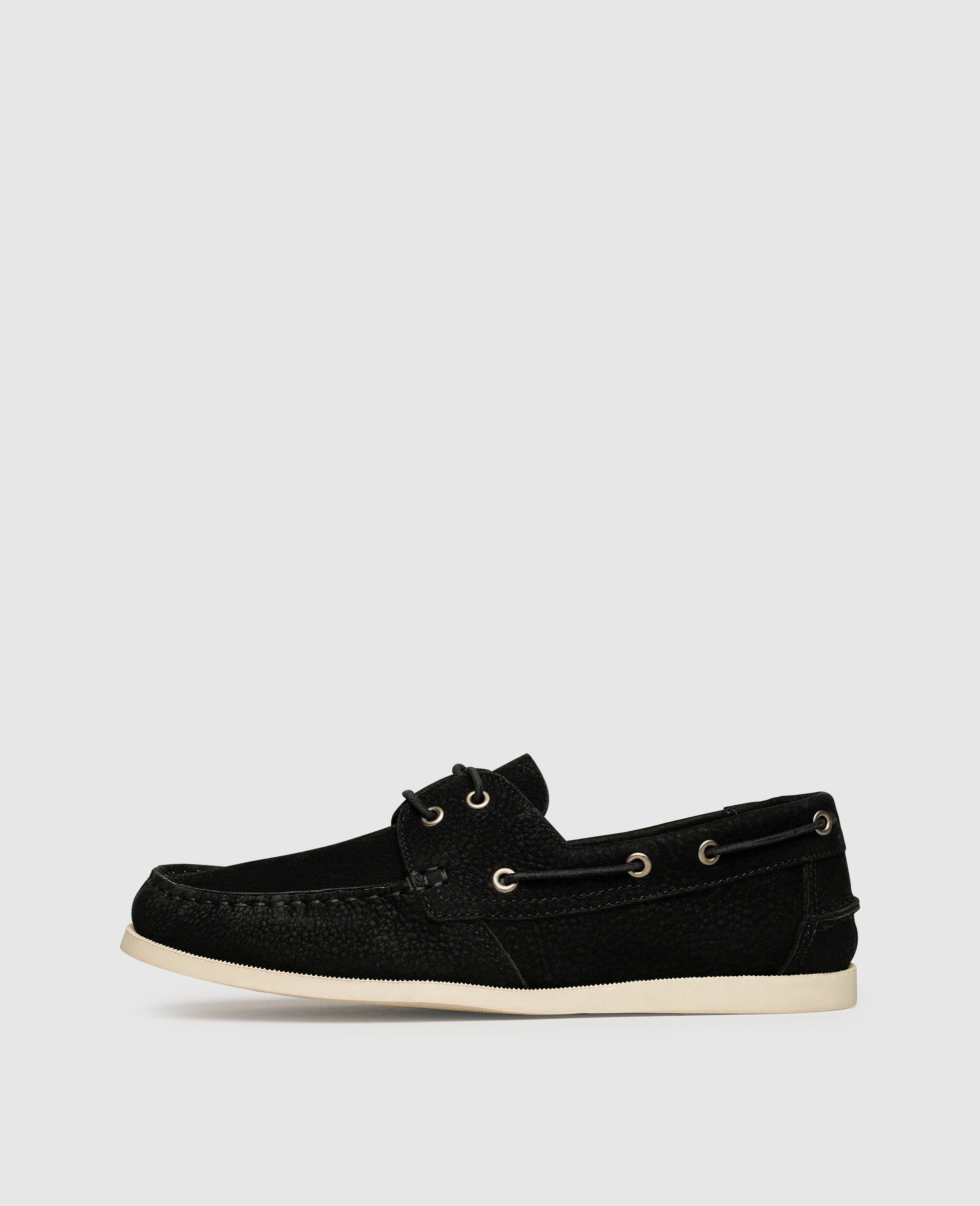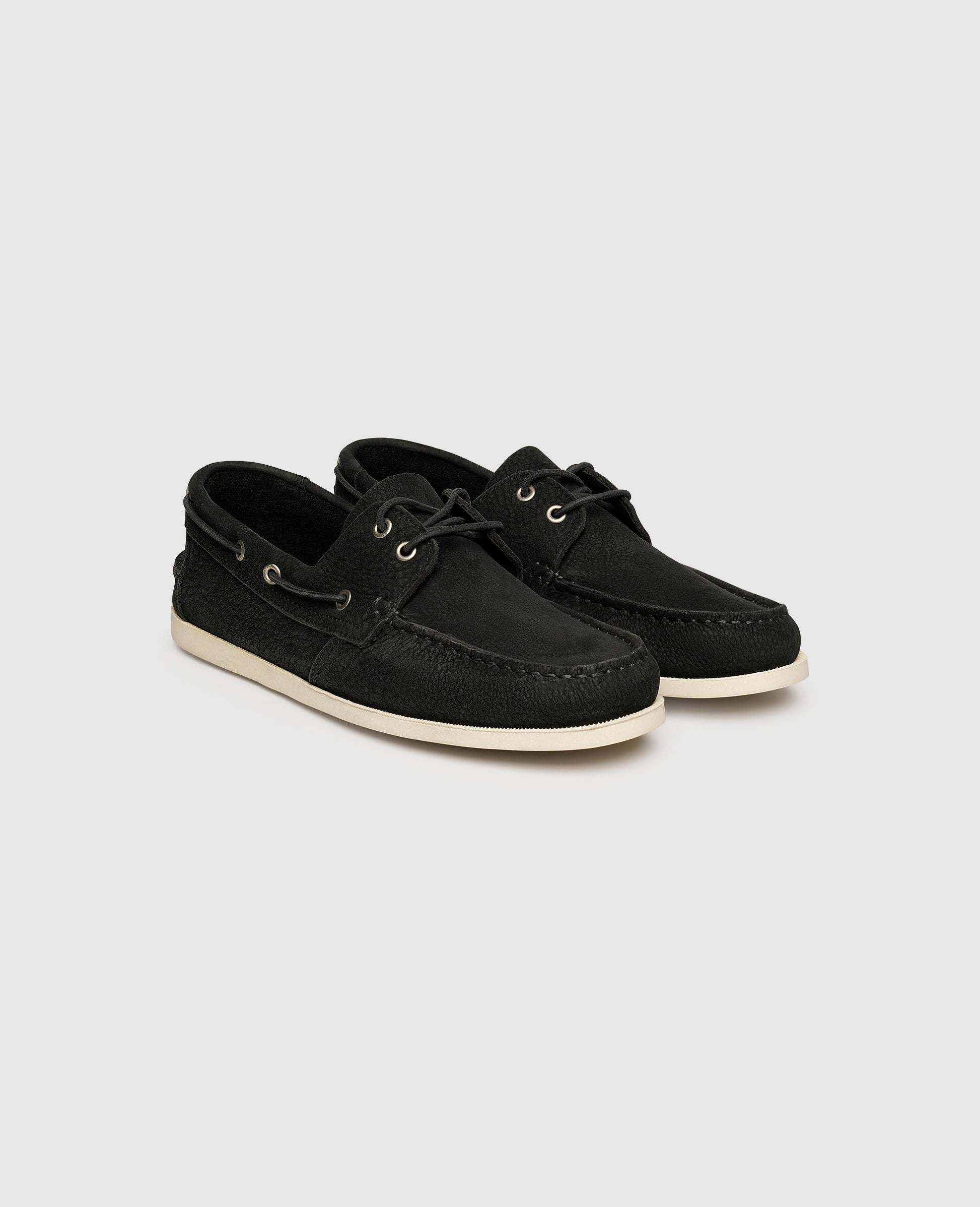 This boat shoe by Henry Stevens combines flexible dynamics with classic charm. The black shoe for men speaks for itself thanks to its grainy and short calf nubuck. A comfortable walking experience is guaranteed by the nonslip rubber outsole with a comfortable leather footbed. Made in Portugal, this slip-on shoe is perfect for rounding off your looks on the warm days of the year, when you are sure to receive appreciative glances with this model on your foot.