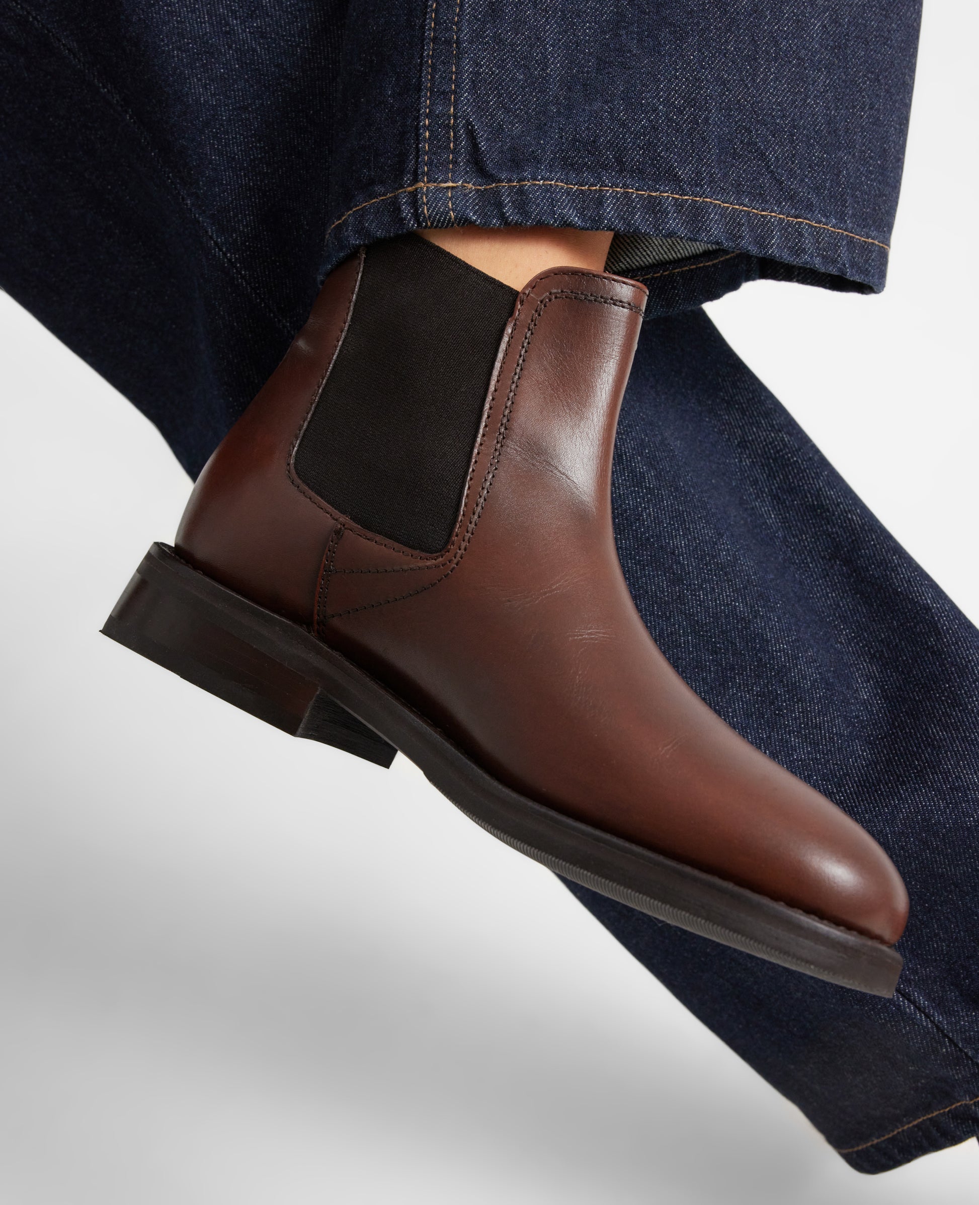 This goodyear-welted Chelsea boot in mid-brown presents itself in a fascinating garment made from high-quality calfskin. The elasticated inserts on the inside and outside are typical of this traditional model, which, in combination with the pull loop, make it easier to slip into the women's ankle boot. The boots have a timeless elegance thanks to the gently rounded last shape, which flatters every woman's foot. The classic Chelsea boots can be combined with rolled-up jeans or culottes.