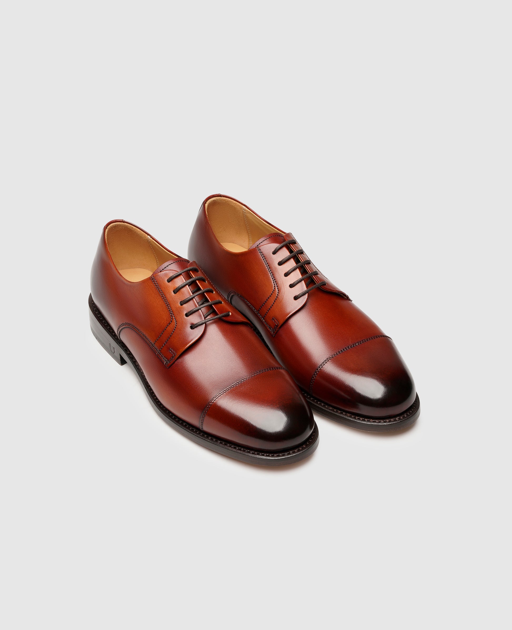 The unique hand finish on the upper leather of this Ella cap-toe Derby is sure to captivate any onlooker. But it's not just the coloring that elevates this Goodyear-welted classic to something special. Inside the shoe, the wearer is given plenty of space in the forefoot area and the Derby-style open lacing make it child's play to get on and off. The gently rounded design of the forefoot transforms this full leather shoe into a truly timeless companion that goes beyond fashion and will complement almost any outfit.