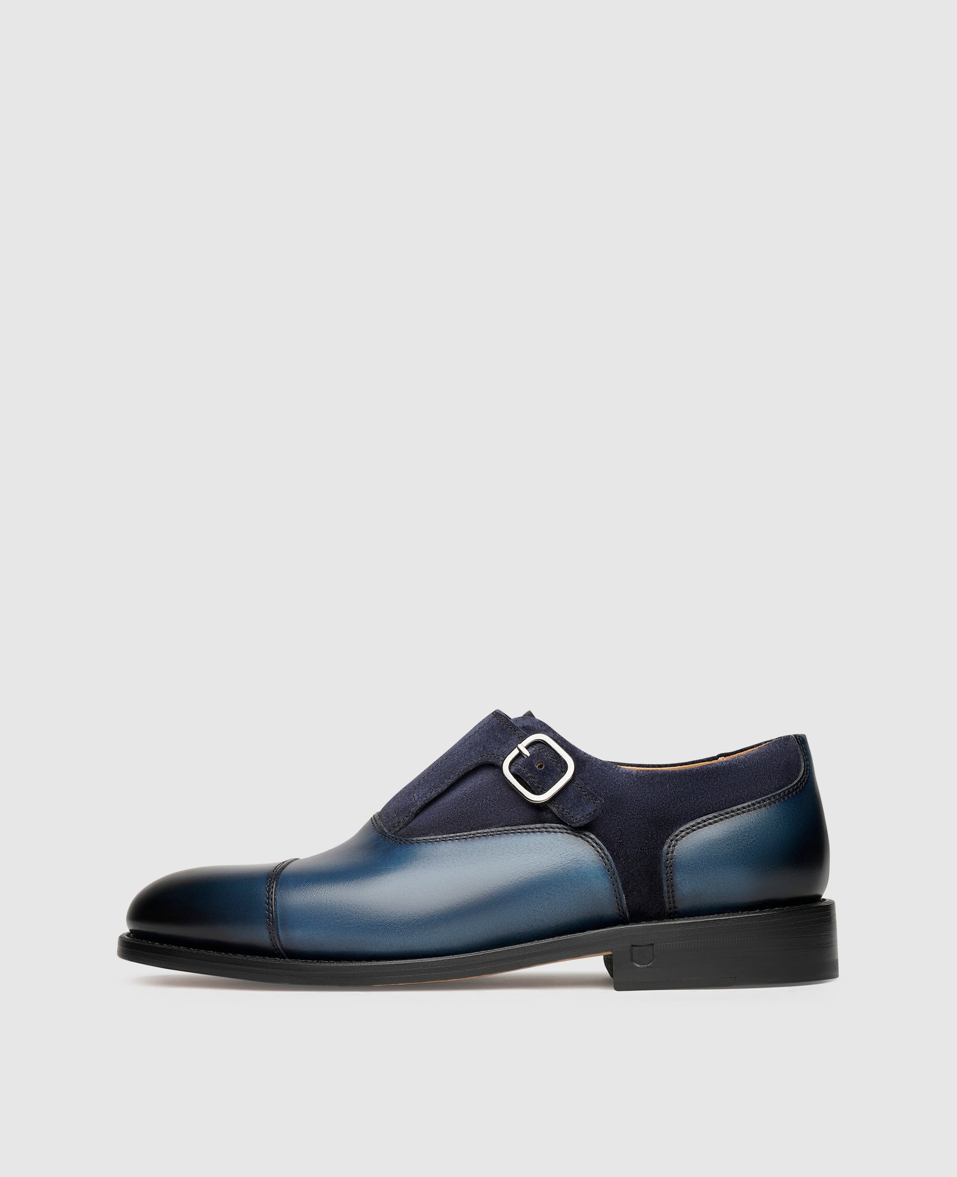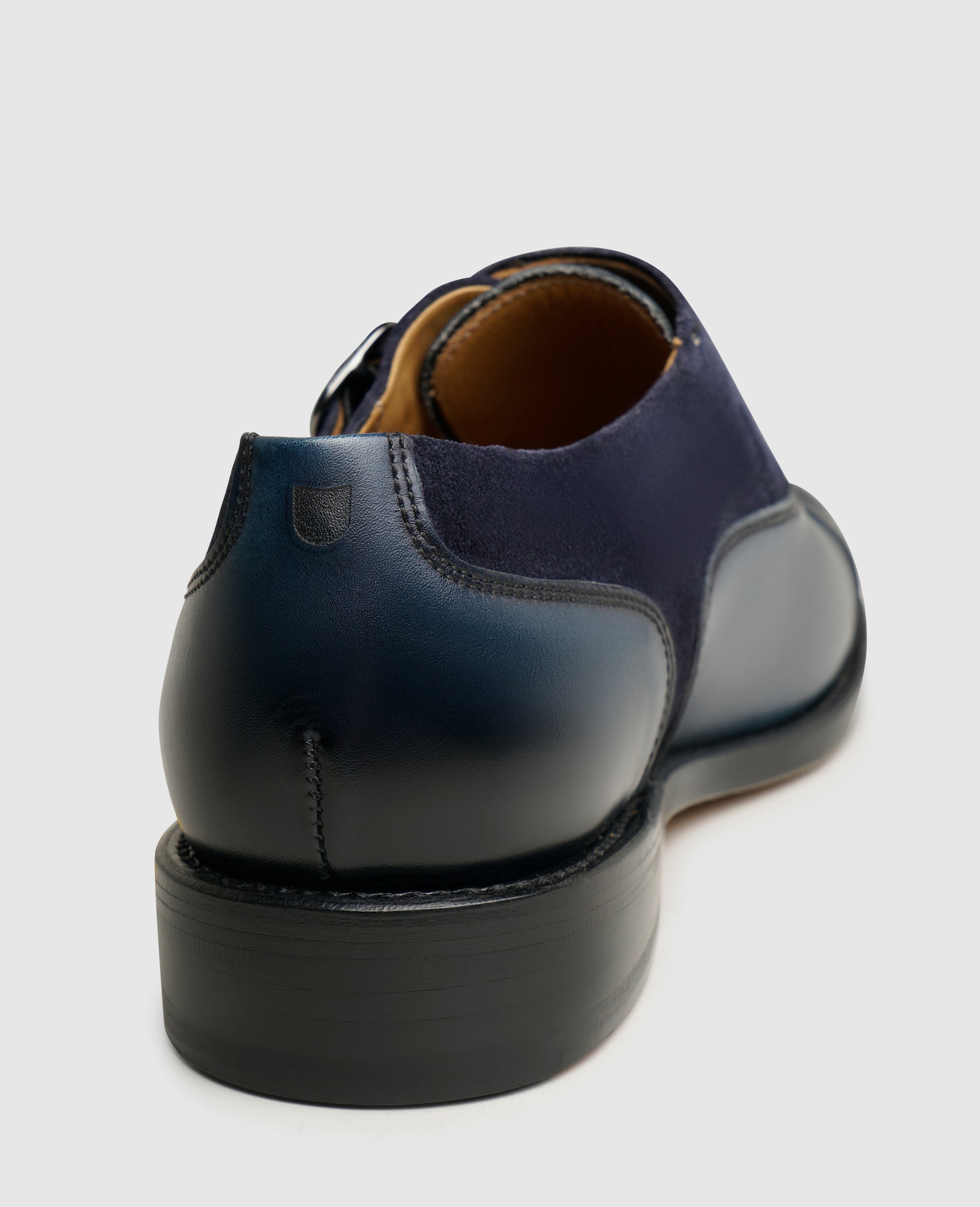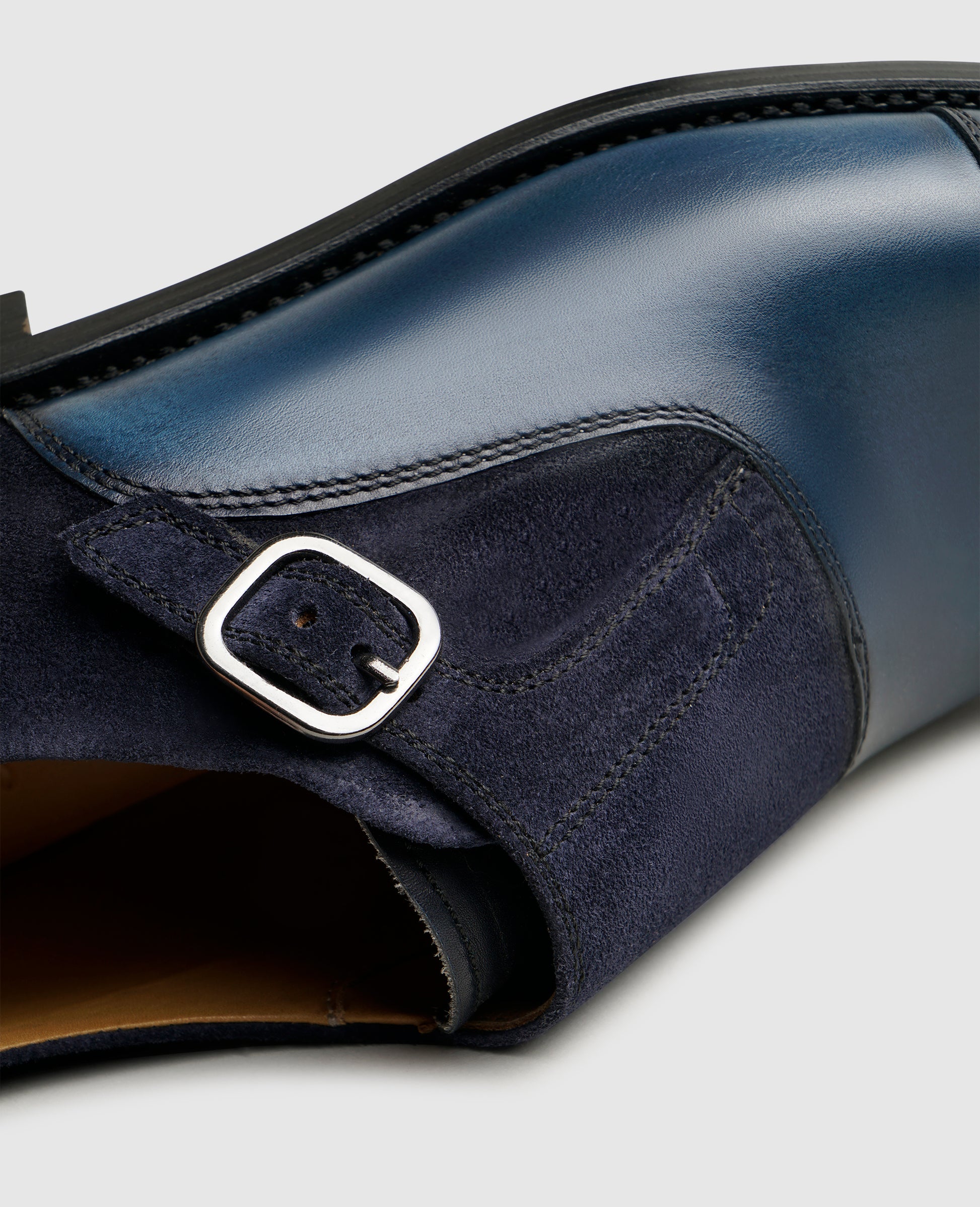 This buckled shoe offers that special something with its upper, which is wrapped in an exciting combination of materials. The supple smooth leather sections are made from delicate soft calf and feature a carefully applied hand finish that adds an elegant touch to this women's shoe. The soft velour, which also accentuates the toe cap, gives this monk strap an unconventional and unmistakable dynamic.