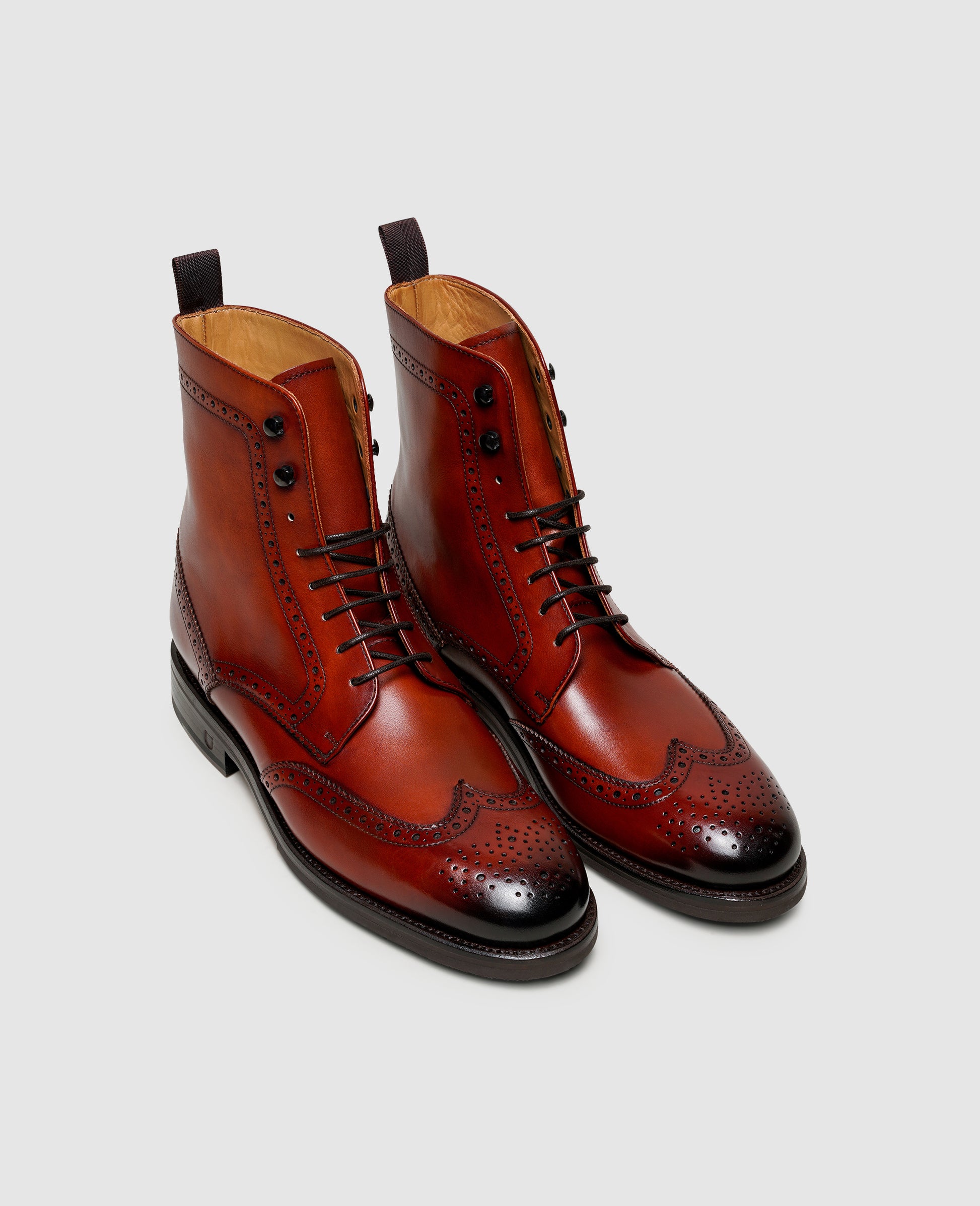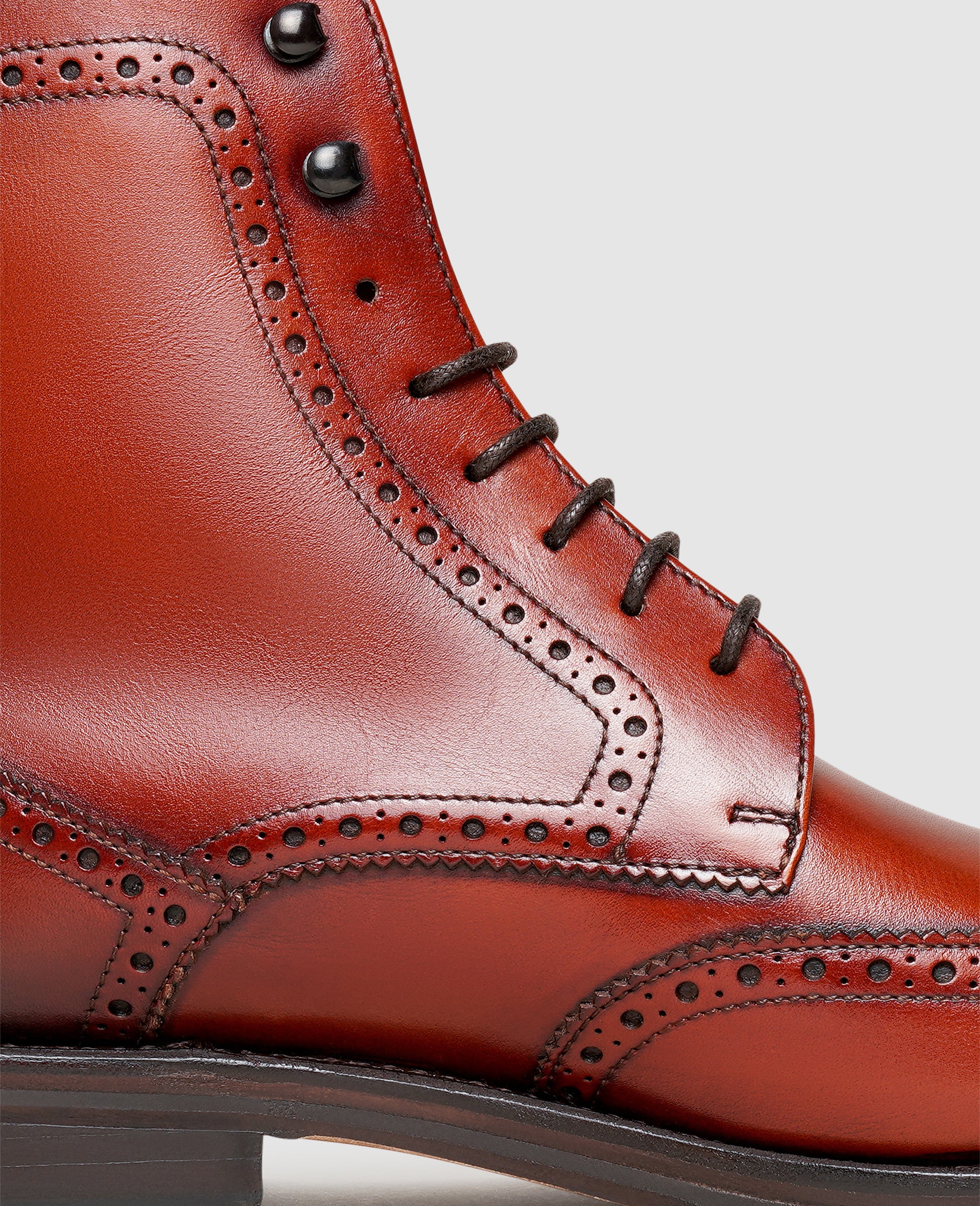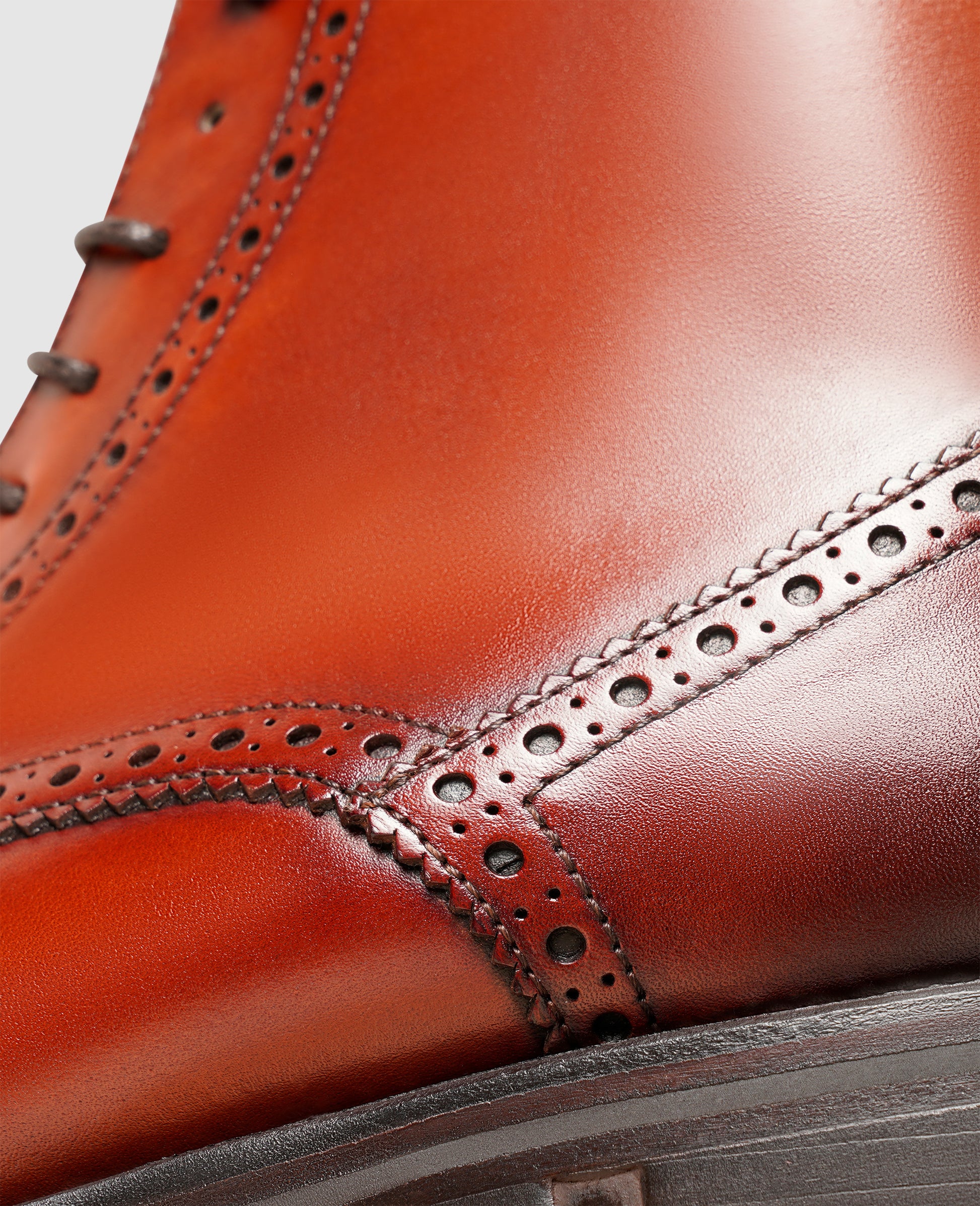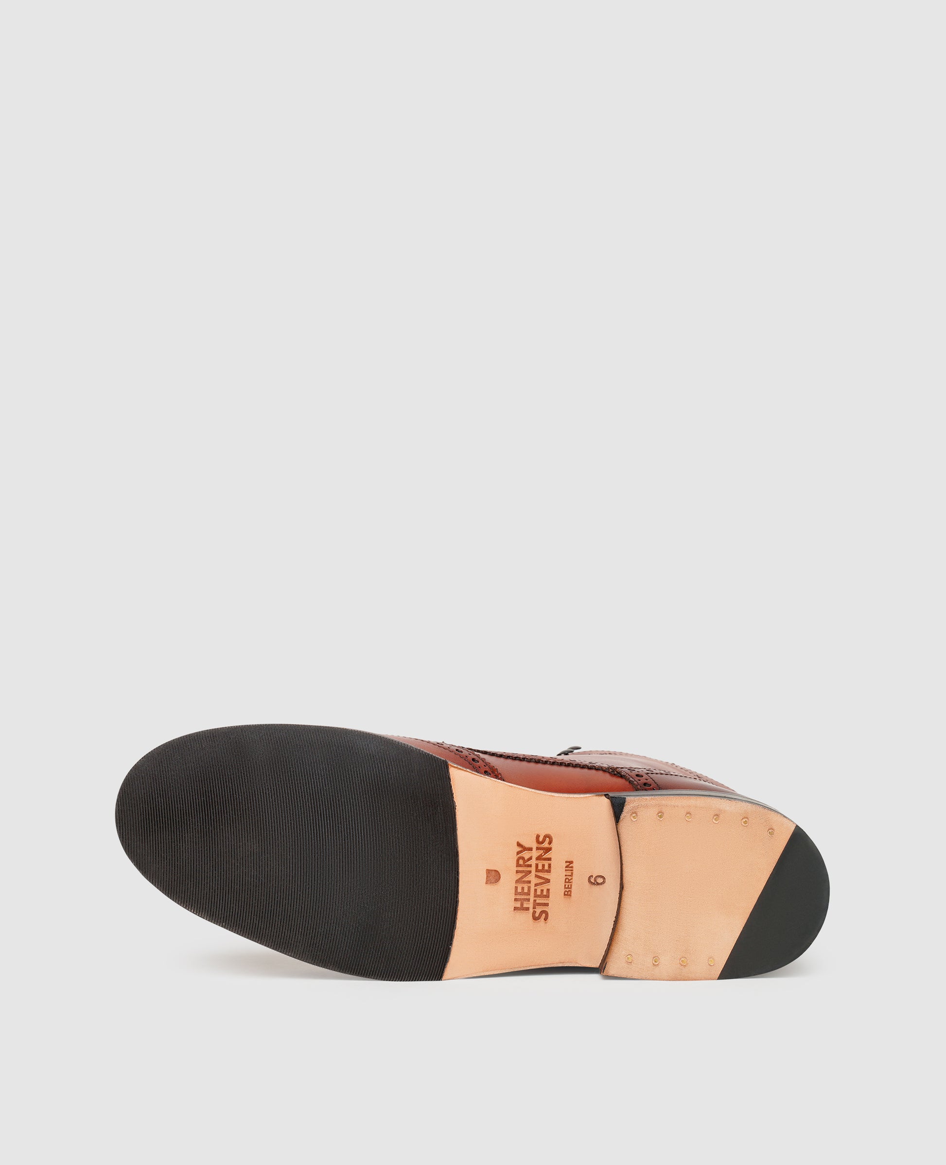A sustainably crafted women's boot from Henry Stevens, made of soft calf leather and featuring an intricate hand finish. The intricate perforation detailing is a striking symbol of the high-quality of this Goodyear-welted boot, while its perfect fit guarantees the highest wearing comfort. Thanks to the repair-friendly design and half rubber sole, these Derby boots are a durable companion that can be combined perfectly with a variety of different looks.
