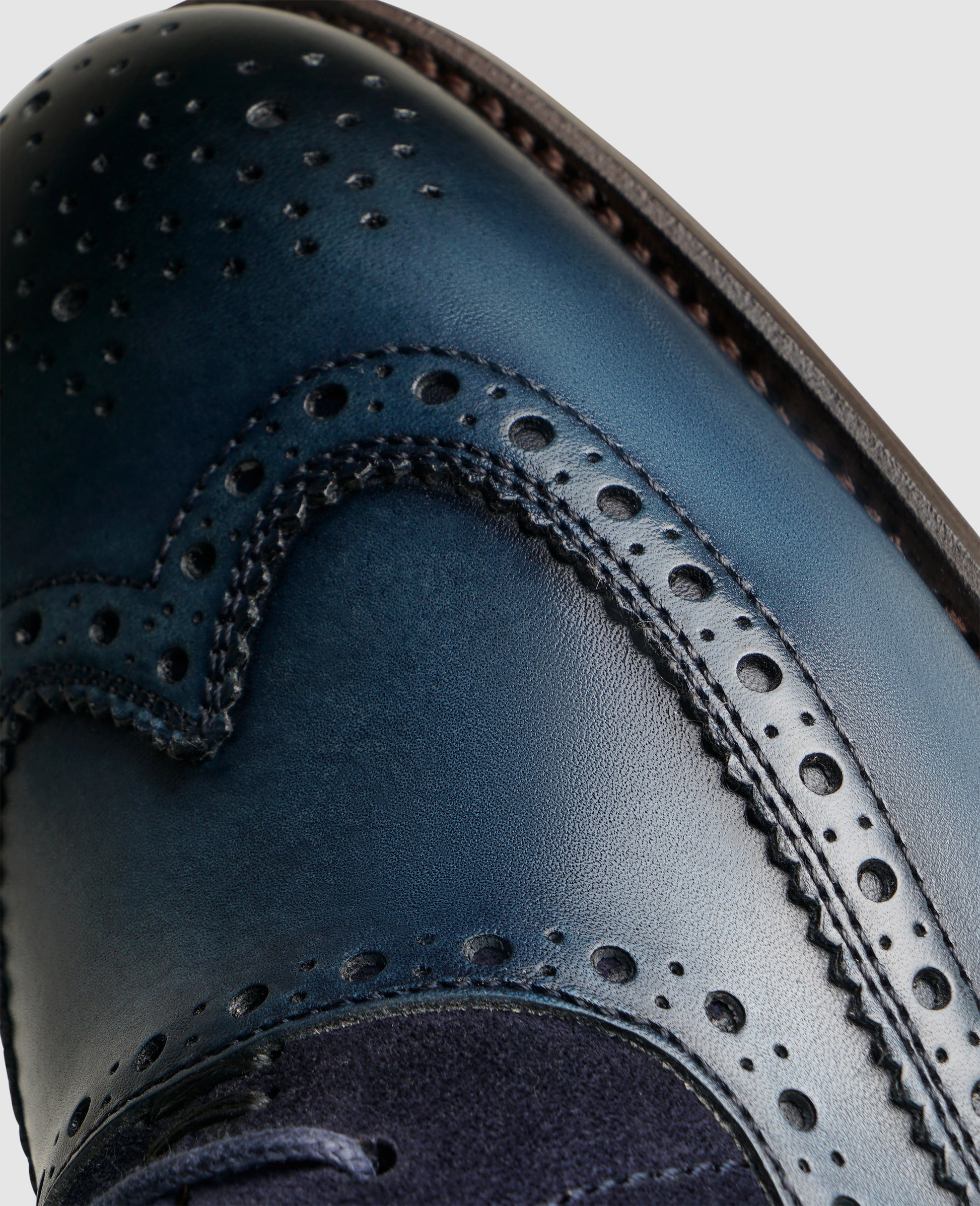 The head-turning combination of materials offered by the Ella full-brogue Oxford turns this classic women's shoe to an exceptional statement piece. The supple smooth leather features two special details: the characteristic perforations that give the shoe its name and a lavish hand finish on the fine calfskin leather, which is used to create an array of fabulous colors. A touch of dynamism is added thanks to the soft velour side panels.