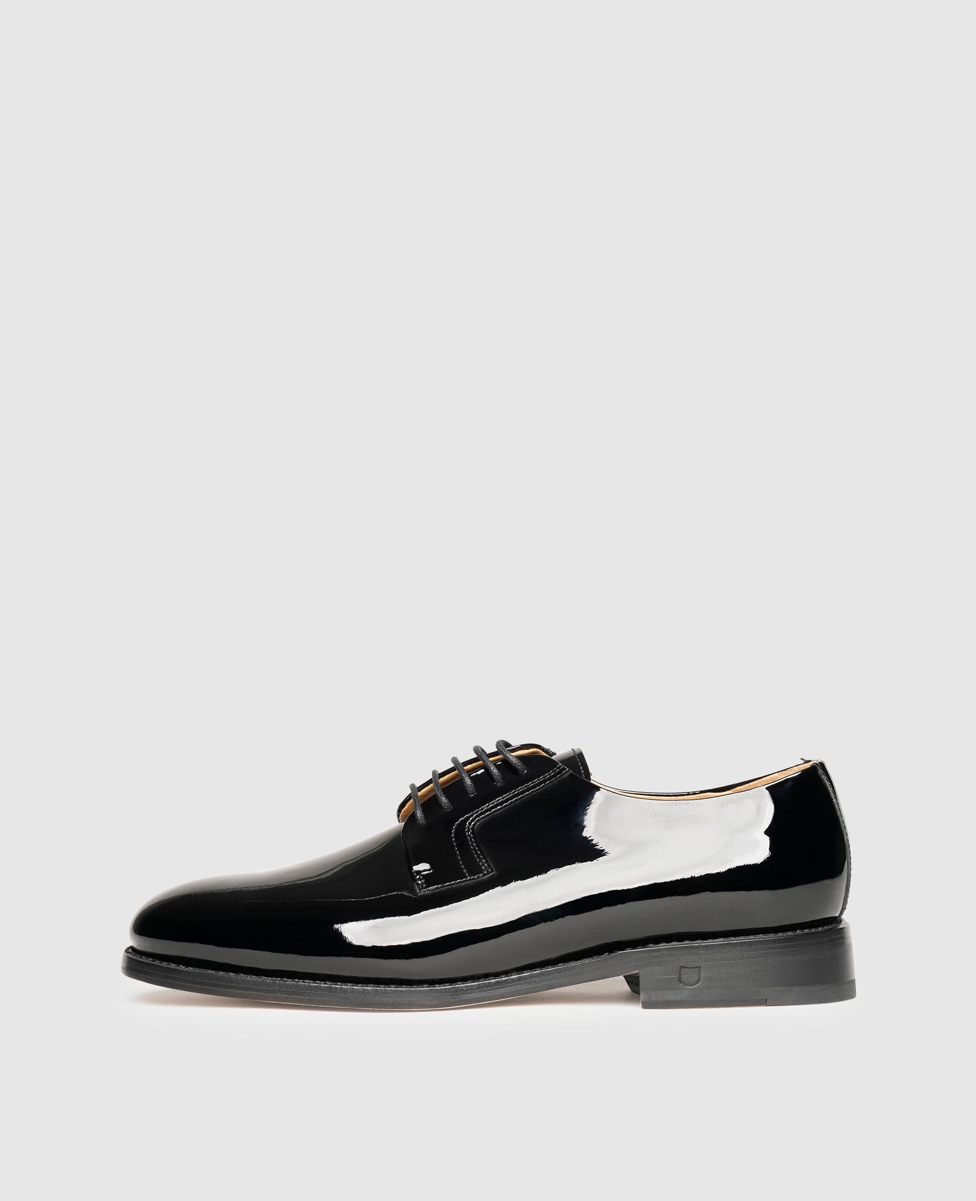 The wearer of this dazzling Blucher made from fine patent leather is sure to receive admiring glances. Its open lacing and gently rounded last make this Ella lace-up shoe for women a comfortable companion. Perfect for that special occasion, this classic patent-leather shoe with its fabulous mirror finish can also be used to make a statement with any leisure or business wear look.