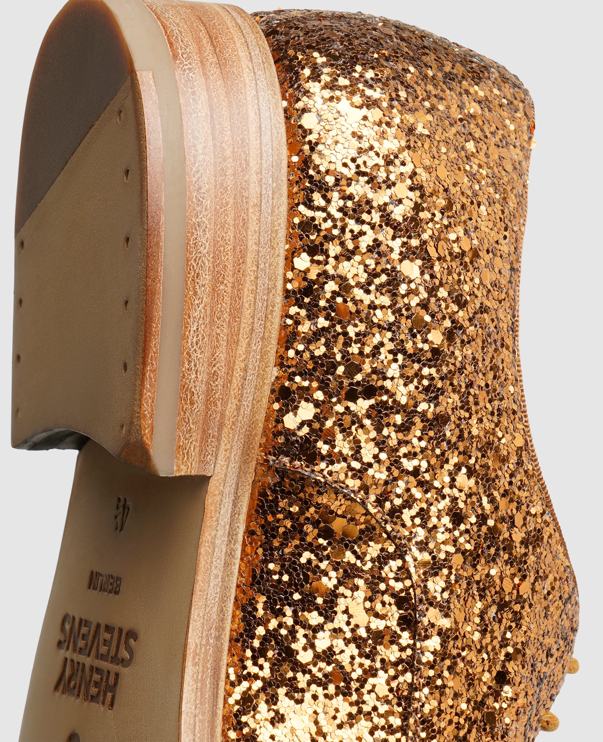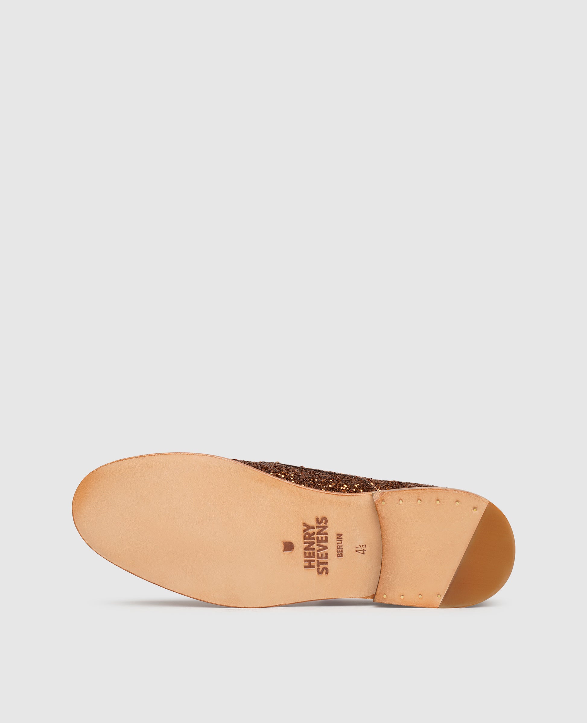 This eye-catcher from Henry Stevens offers extravagance and glamour combined with the upper of a traditional shoe model. Intricate sequin detailing on the calfskin upper lends this model a distinctive look that adds a wow effect to even the simplest outfit. The Derby's open lacing makes it easy to slip in and out of, while the classic leather outsole ensures the longevity of this women's shoe