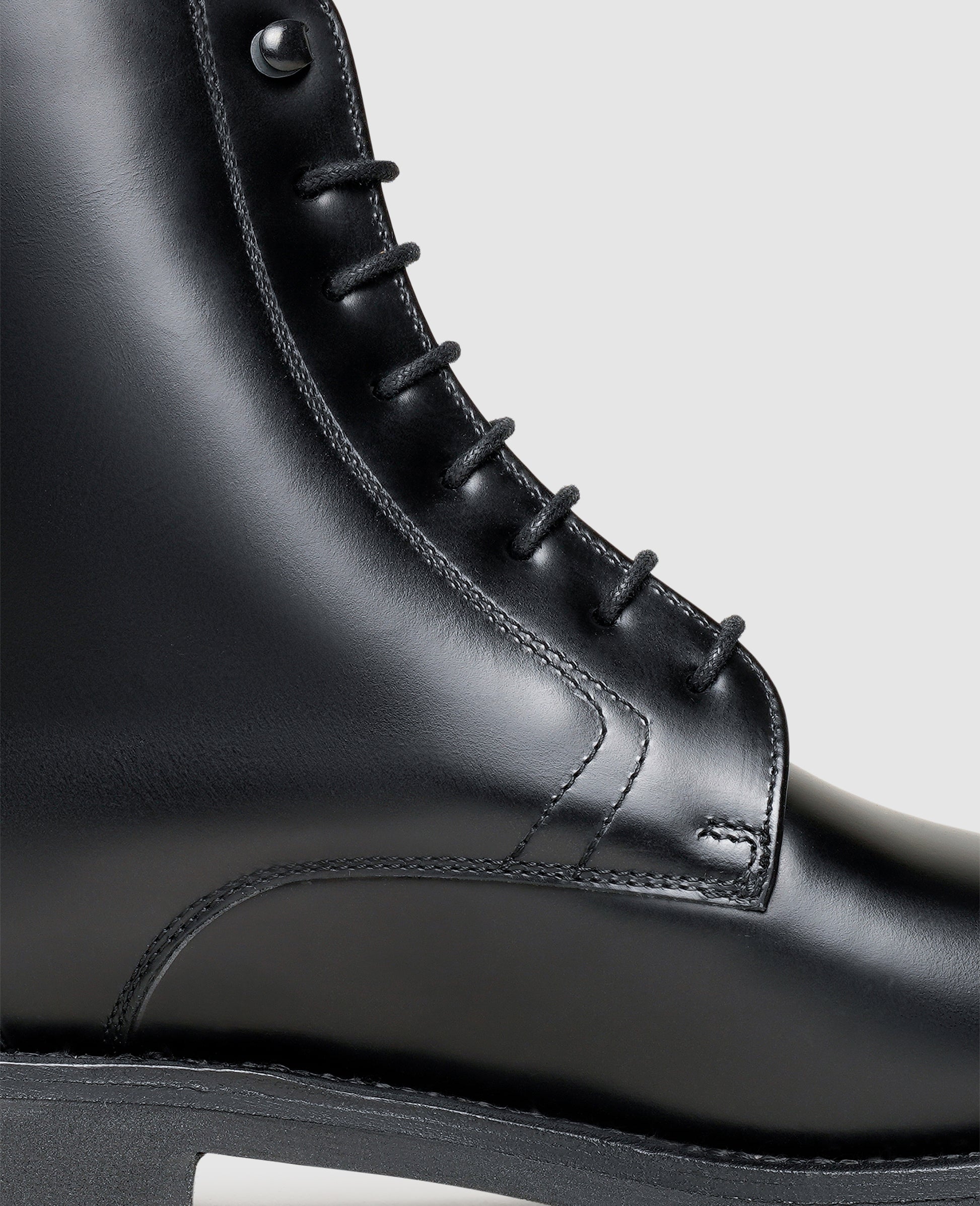 This classic Derby boot for women by Henry Stevens impresses with its timeless design and high-quality "Made in the EU" manufacturing. Handcrafted and Goodyear-welted in elegant, brushed calfskin, this boot is an understated companion for the wet and cold season. Featuring a sturdy rubber profile sole, this sustainably manufactured women's boot ensures a firm footing at all times. Defy uncomfortable weather with style with this model.