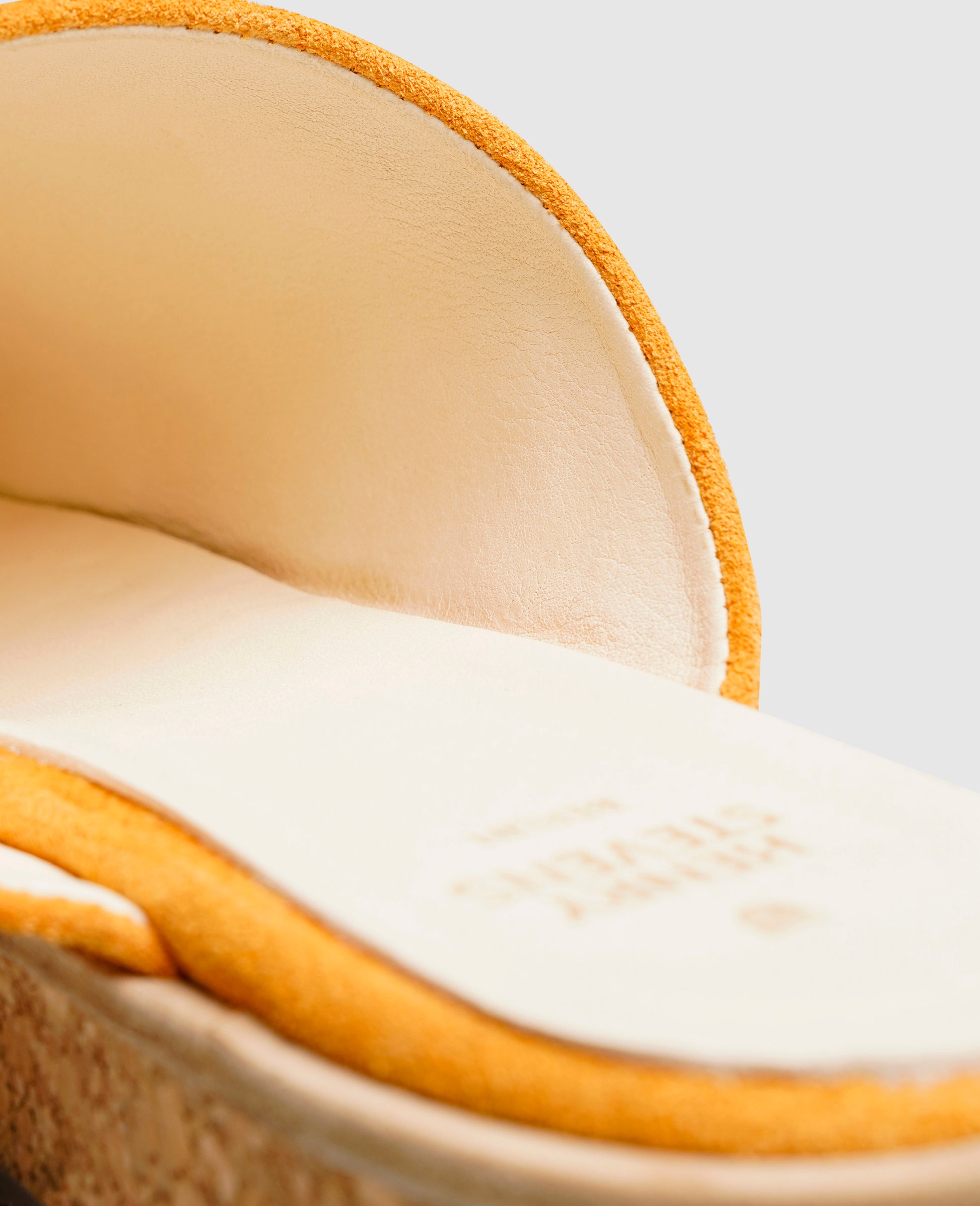 These lightweight mules for women from the Henry Stevens collection showcase a special design. While the velvety suede on the shoe's upper already exudes a summery dynamism, the sole inspires with its modern cork base and discreet rubber tread, guaranteeing a secure step even on wet surfaces. Fully compostable organic leather is used as the lining for the forefoot area.
