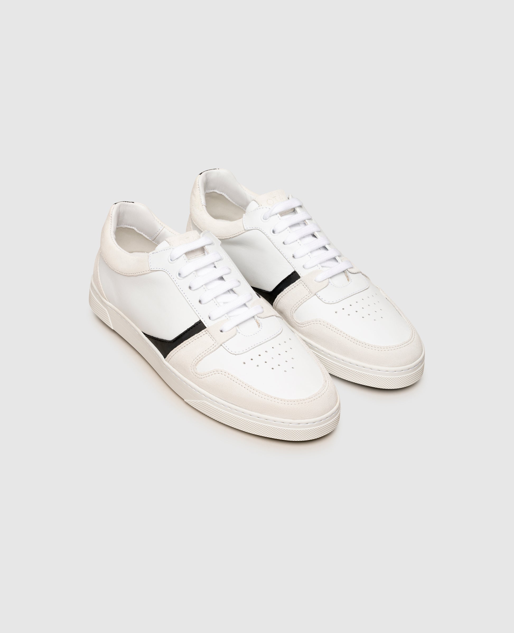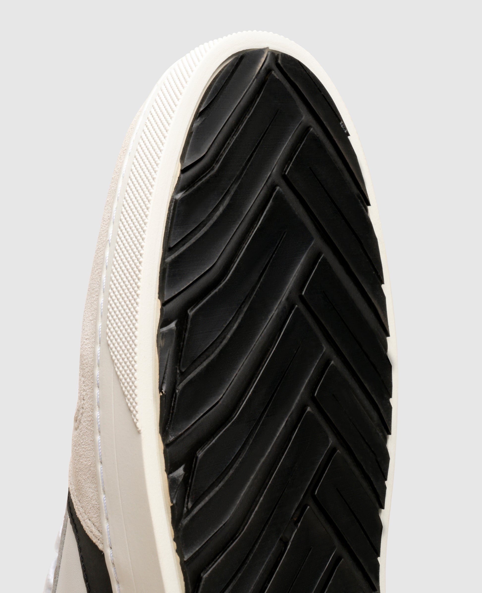 An on-trend combination of materials adorns the upper of these understated unisex trainers from the Parisian label O.T.A., complemented only by two color-contrasting accents. The coordinates of the Scottish town of Glencoe are immortalized on the heel. The parts made of supple velour emphasize the perforated toe section, which guarantees excellent breathability and gives the trainer a subtle retro look.