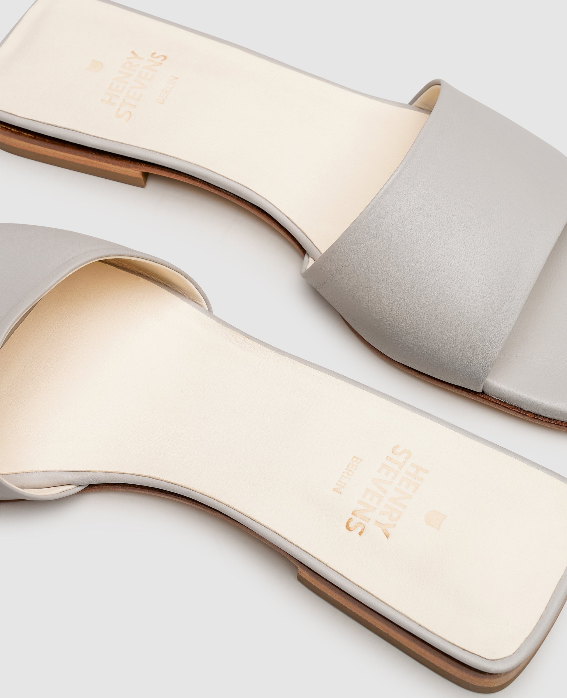 These flat women's sandals with their on-trend square shape offer a truly purist design. The simple, straight strap made of calfskin leather makes this mule a stylish and versatile all-rounder for your summer looks, while walking comfort is guaranteed thanks to the discreet heel height of just one centimeter. The classic leather outsole complements the sandals' graceful appearance perfectly.