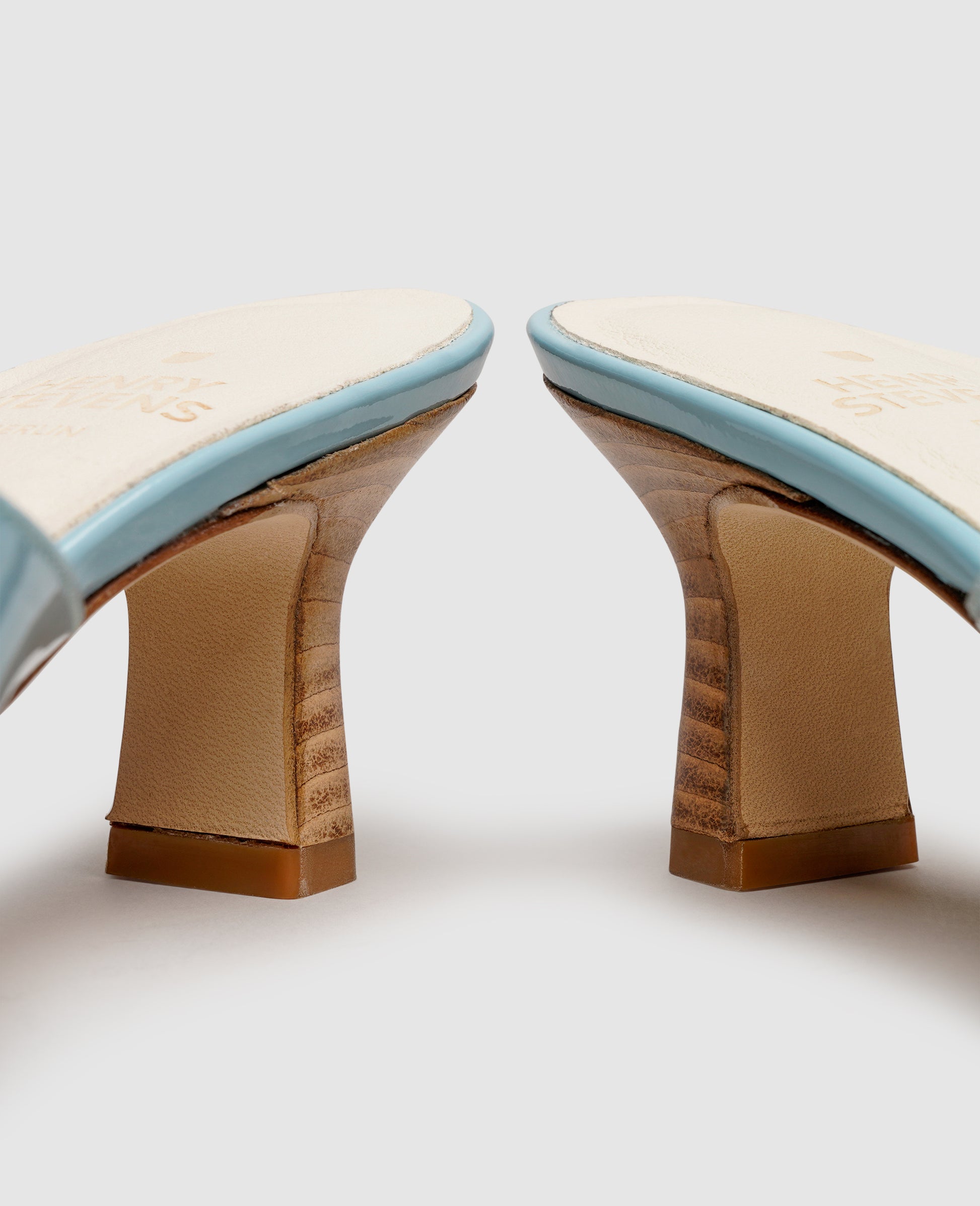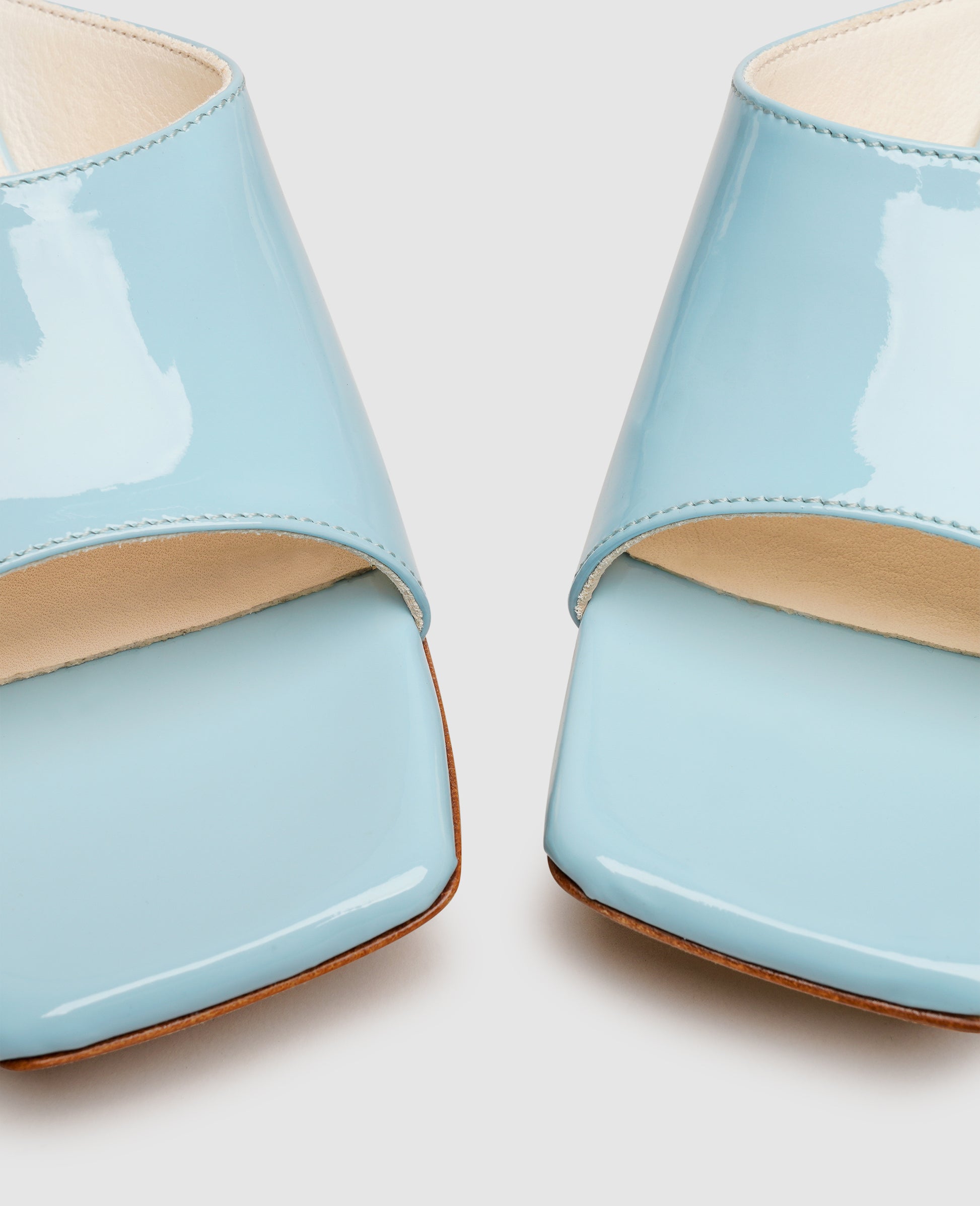 Your summer wardrobe will be complete with these elegant heeled mules. The fine calfskin leather coated with a layer of polyurethane delivers a stylish color accent, while the combination of the understated strap, angular forefoot, and sculptured five-centimeter heel creates an exceptionally feminine model that promises its wearer appreciative glances.