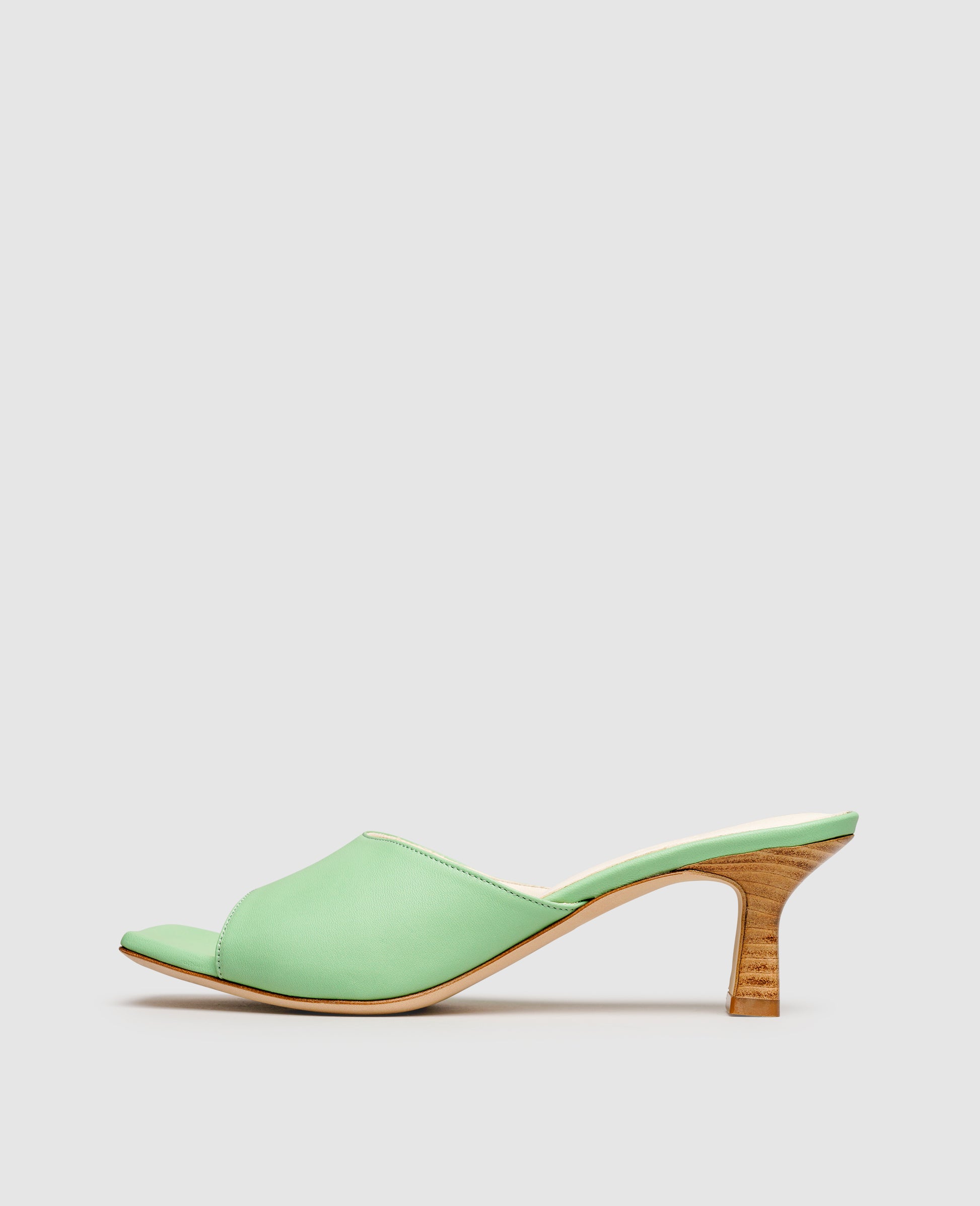 The sculpted heel with its height of five centimeters elevates these mules to a statement piece that is guaranteed to make an impression from the very first glance. The wearer's foot is adorned with an elegant calfskin leather strap, shaped to be slightly wider on the inside and outside of the foot to offer secure support with every step. These women's mules also boast a graceful appearance thanks to the on-trend, angular design of the forefoot.