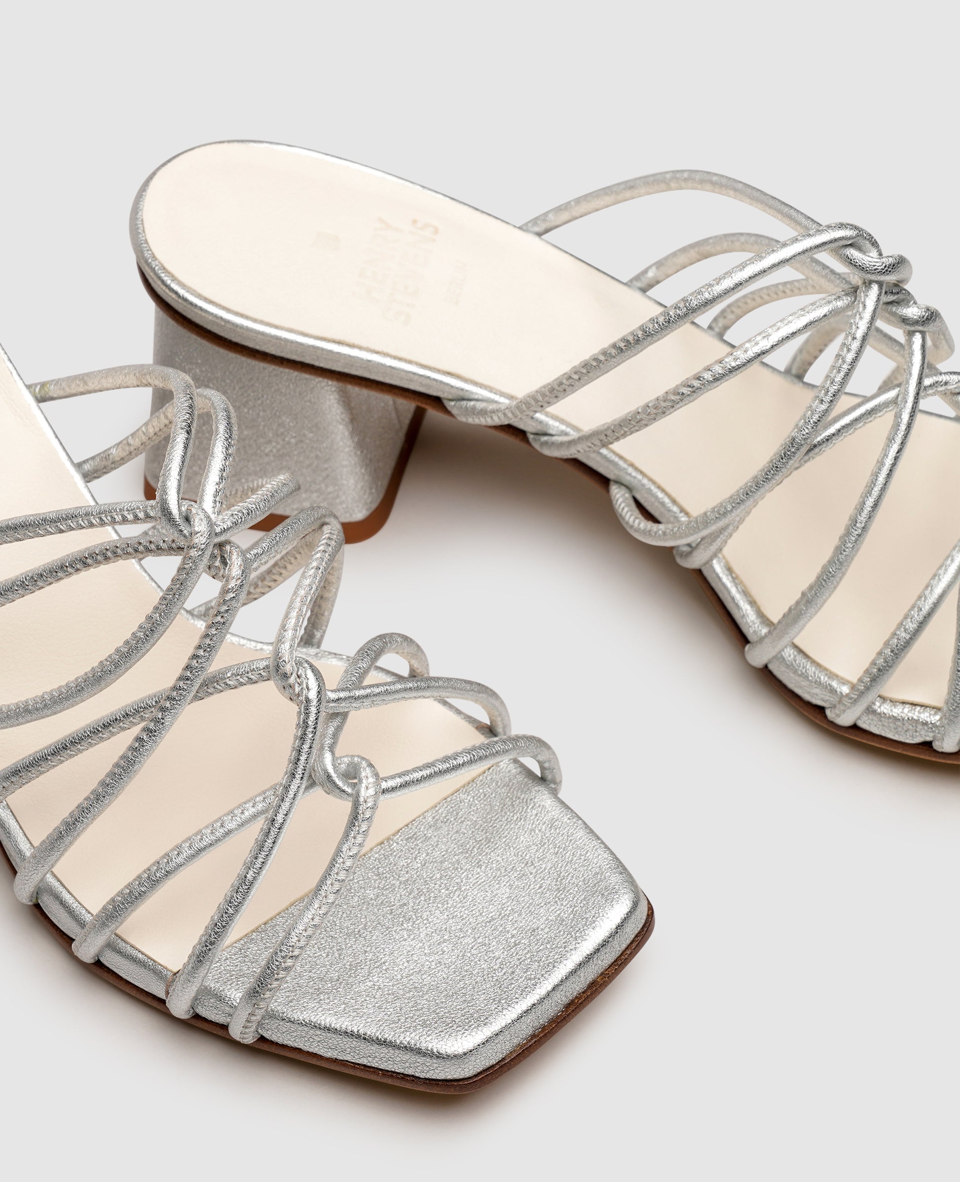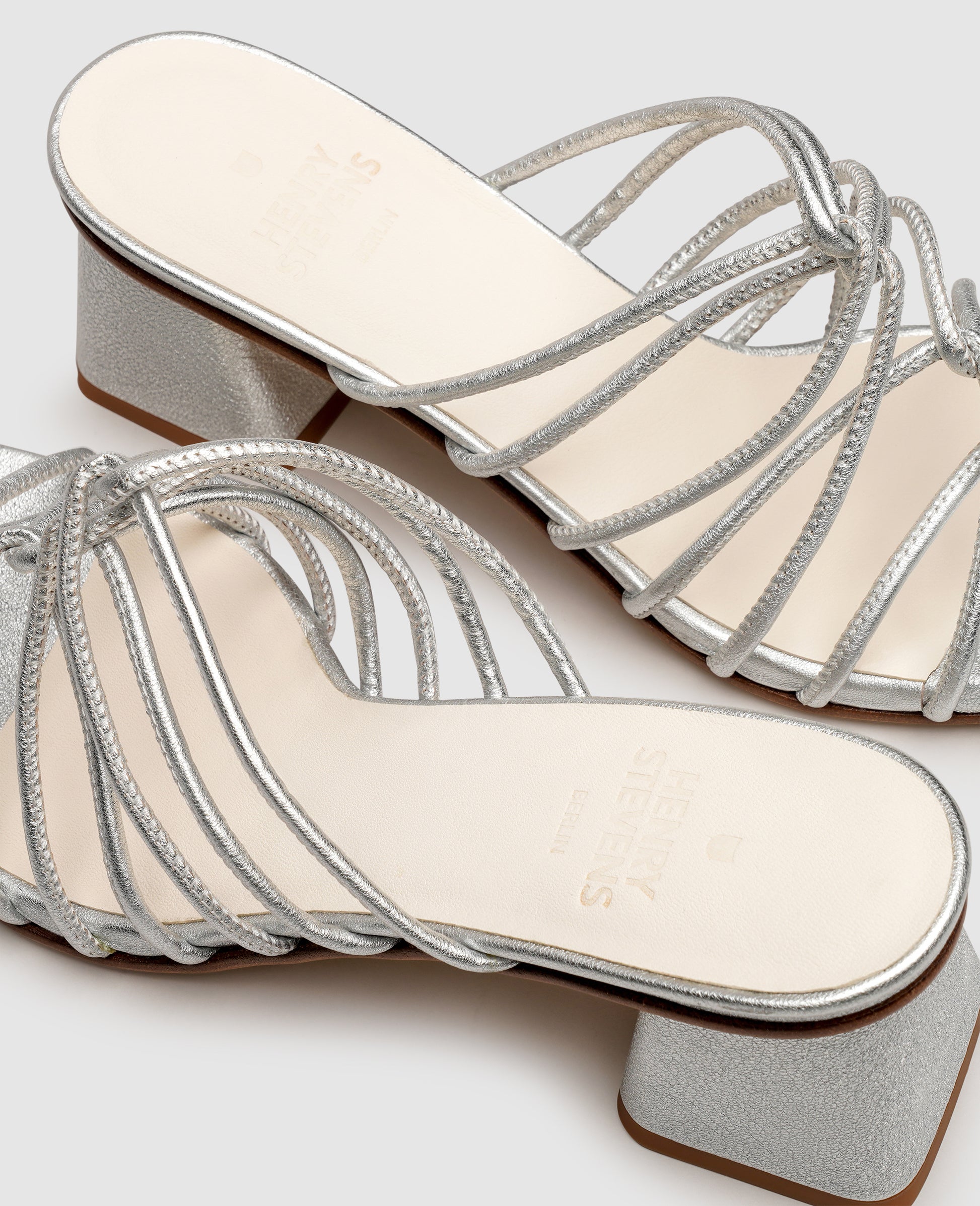 This feminine sandal is the perfect choice for an elegant summer-time style. And you don't have to compromise on a lightweight feel either, as your foot is covered only by the slender straps of the mule. This model is transformed into a dazzling eye-catcher thanks to the metallic-look calfskin leather and combines a modern style with classic elegance with its square-toe shape and five-centimeter block heel.