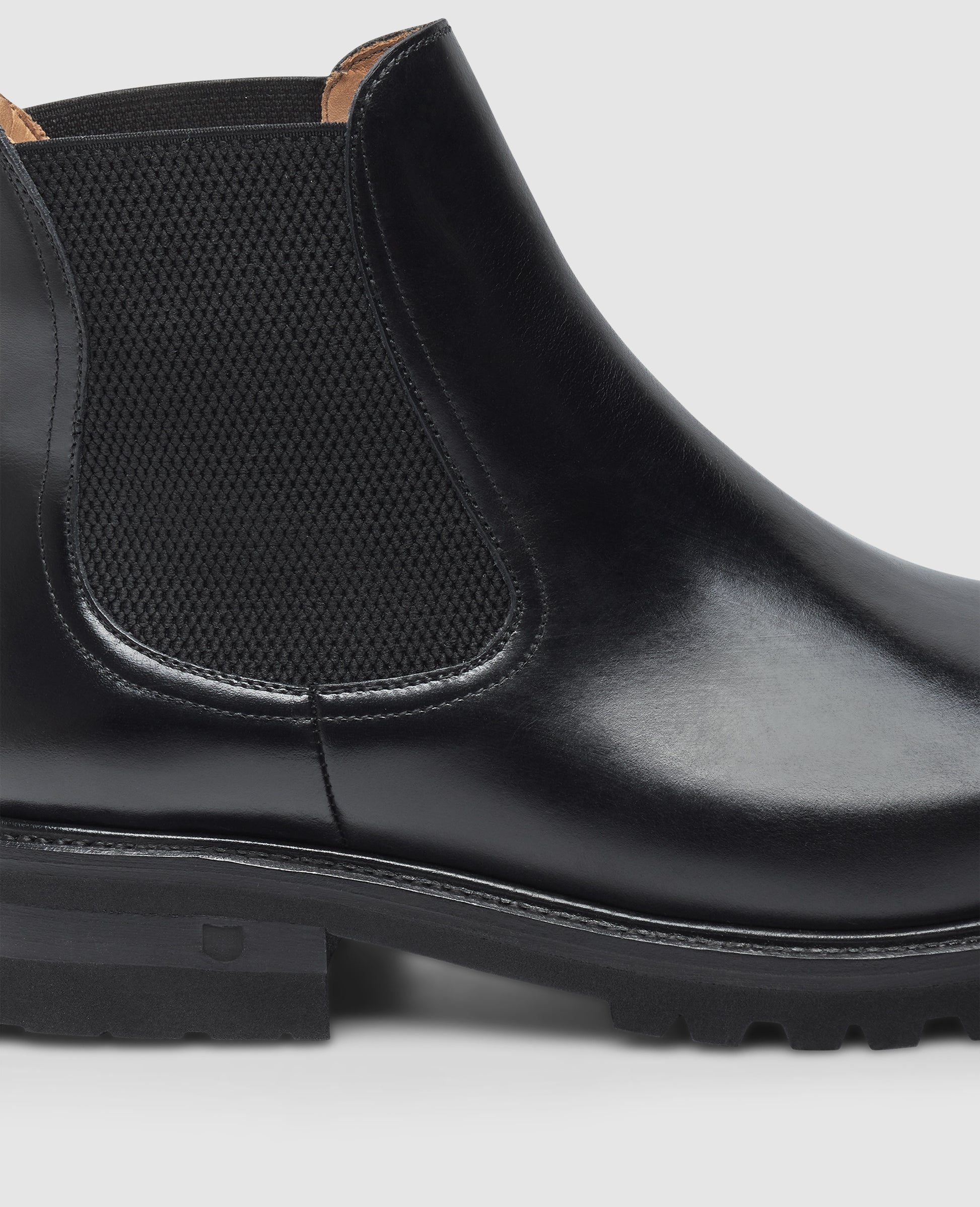 The Harry Chelsea boot in black is handmade from greased calfskin and an inner material made from vegetable-tanned leather. In combination with the rubber tread sole, it is perfect for the cold season and offers a high level of comfort thanks to the goodyear-welted finish and roomy fit. Made in Spain.