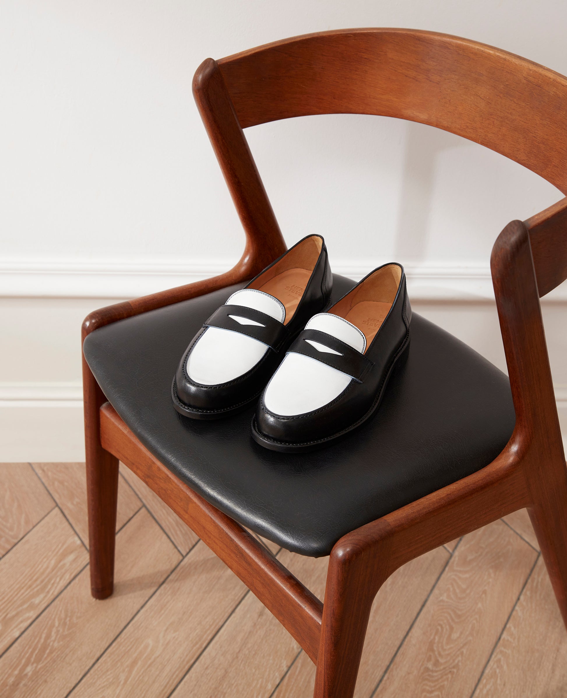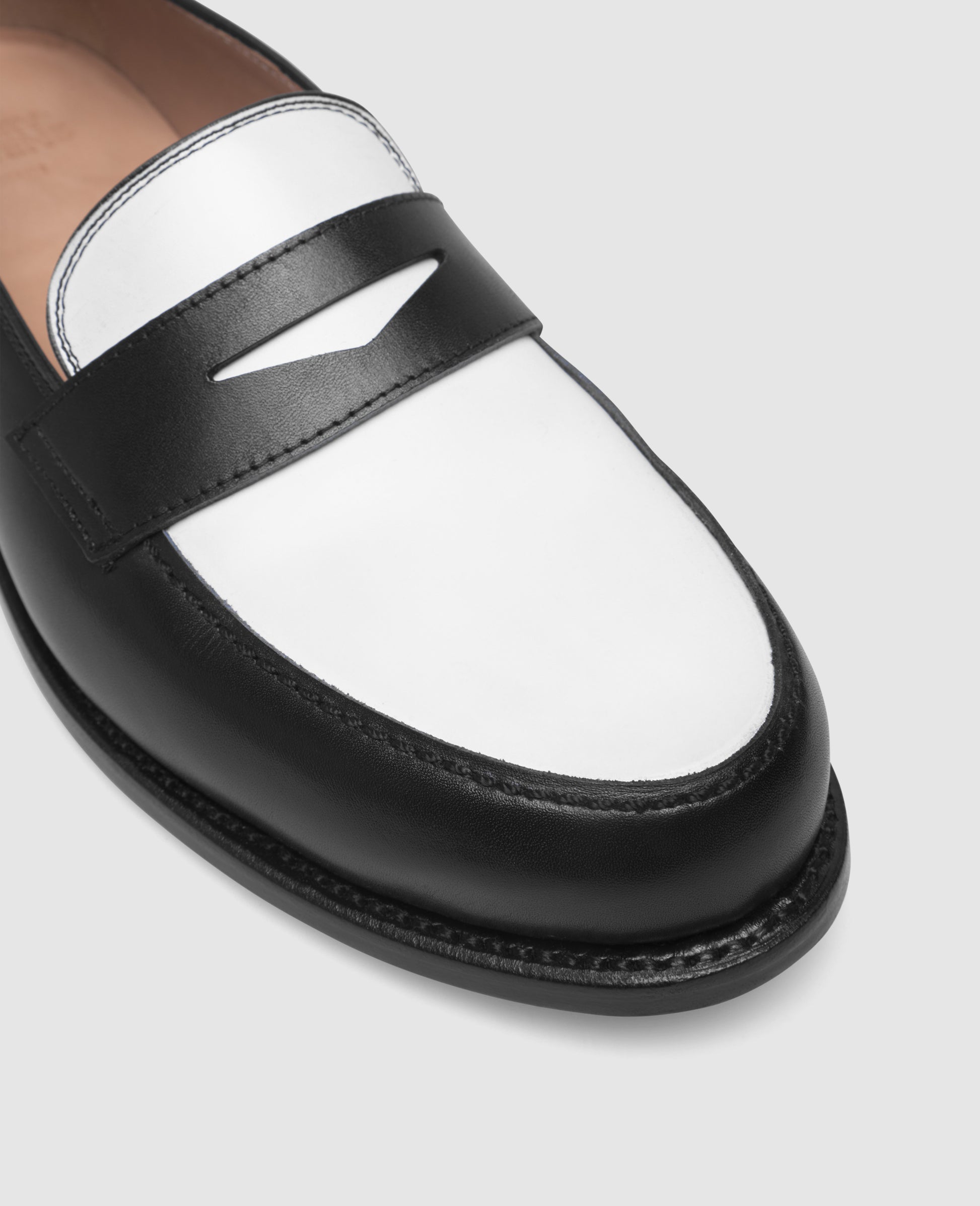 Made from the finest box calf, this shoe is a true work of art. The vegetable-tanned leather interior ensures natural comfort, while the contrasting combination of black and white lends this classic a dynamic elegance. A shoe that combines traditional craftsmanship with modern flair.