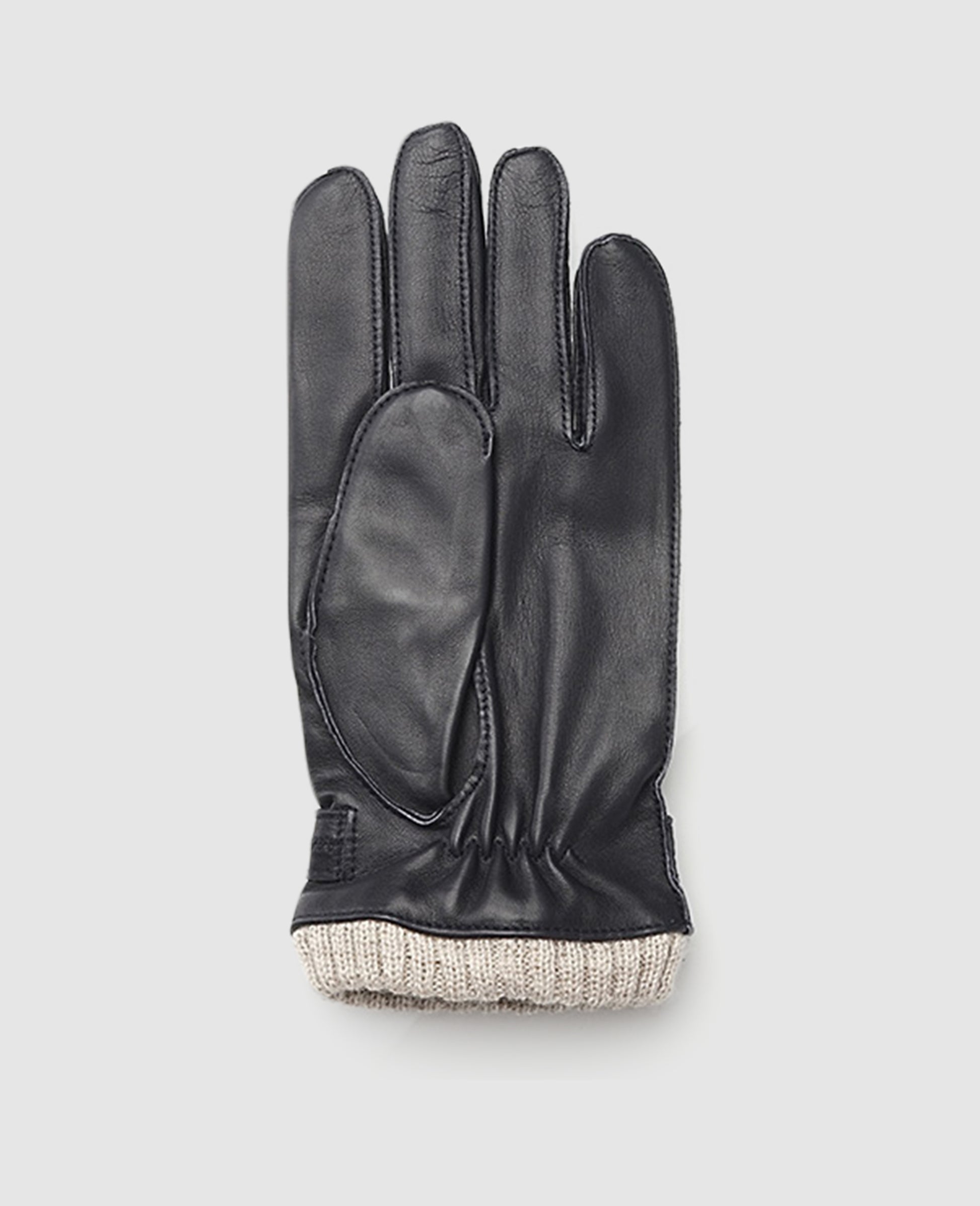 Leather gloves with cuff - Dark Blue