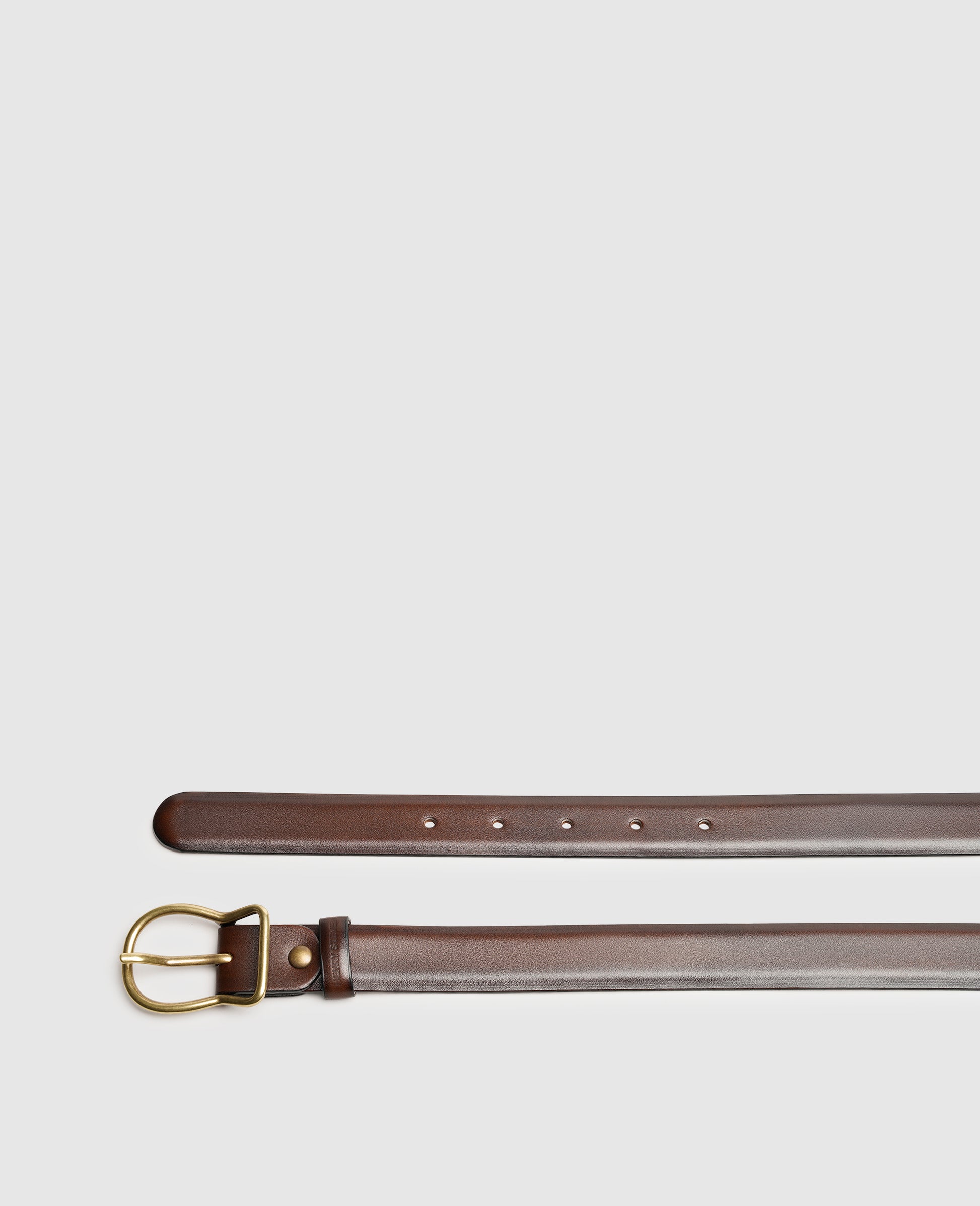 Graceful color nuances lend this handcrafted women’s belt from Henry Stevens that certain something special. The exquisite smooth calfskin leather features an elaborate hand finish and impresses with its soft shades of light and dark, while the inside of this two-layer, full-leather belt is made from natural undyed calfskin. A sleek pin buckle in gold rounds off this sophisticated women's accessory, offered in a 25 mm width.