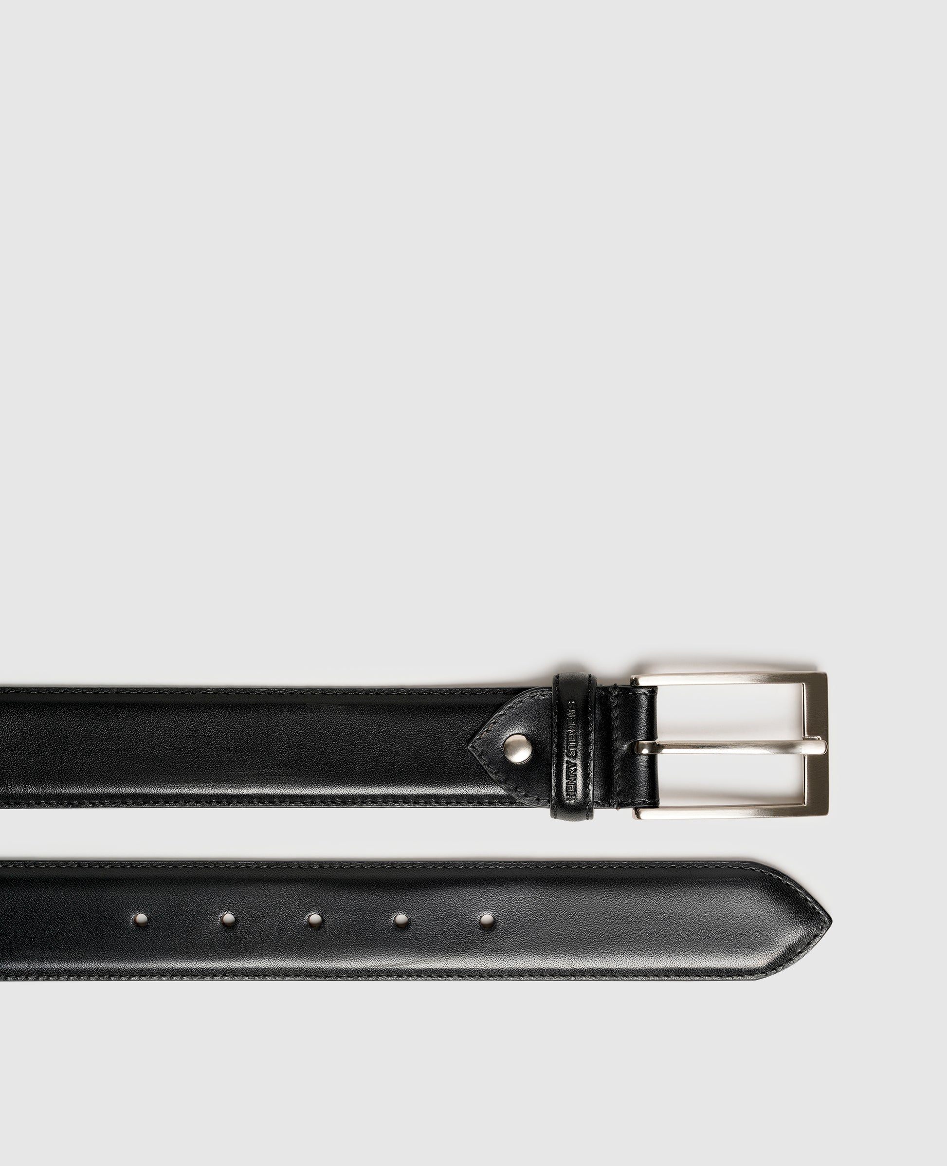The ideal complement to a classic men's shoe, this handcrafted men's belt made of the finest smooth leather from Henry Stevens comes in a width of 35 mm. Timeless elegance is exuded by the supple French calfskin leather with its soft sheen, which is stitched together tightly with an inner layer of natural undyed calfskin. This two-layer full leather belt for men features a silver pin buckle made of nickel-free zamak.
