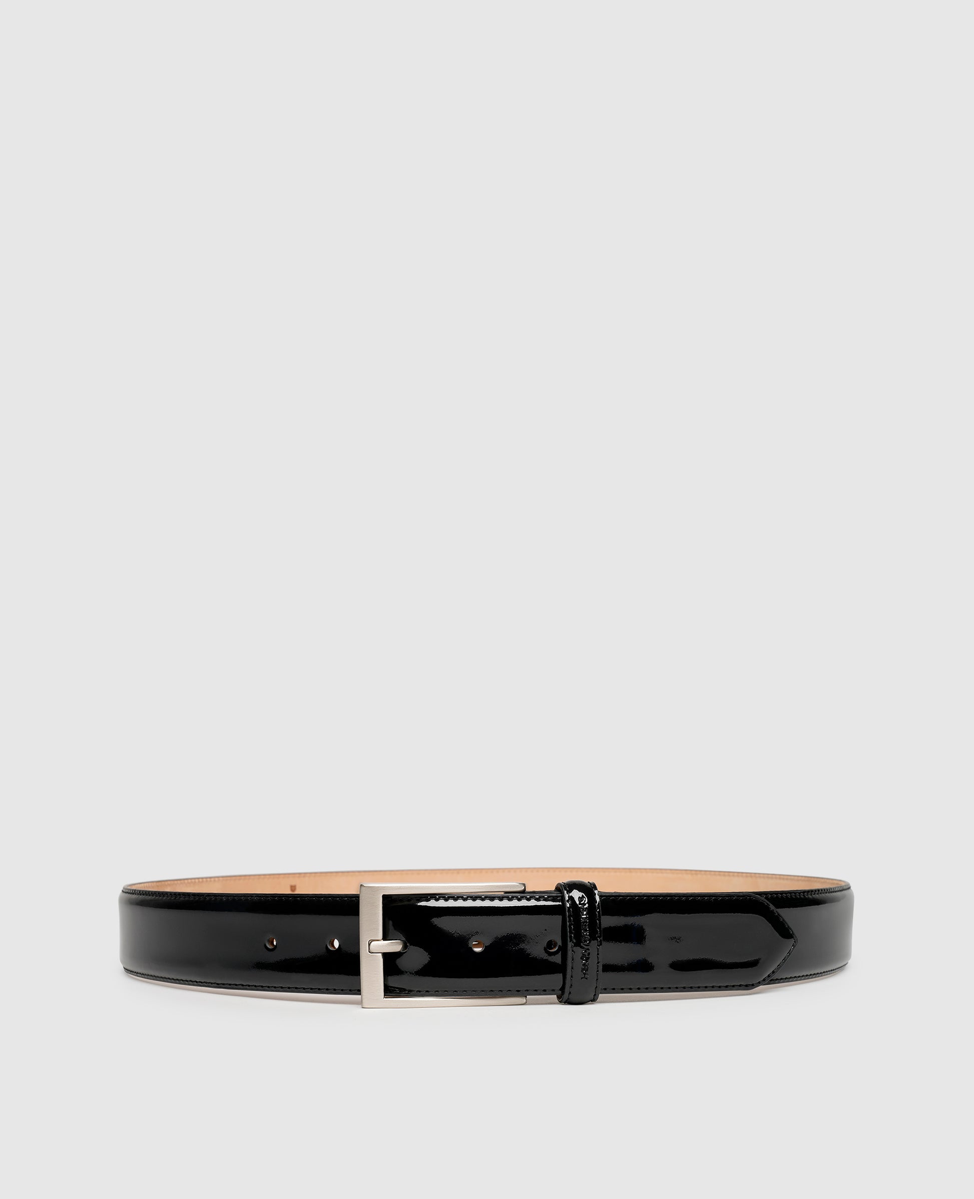 A perfect choice for glamorous events and festive occasions of all kinds, this handcrafted men's belt in black patent leather from Henry Stevens has a width of 35 mm. The exquisite calfskin leather is coated with a special polyurethane finish to create a mirror-smooth look, while the inner layer is offered in a natural calfskin. This elegant belt for men features an elegant pin buckle in silver.