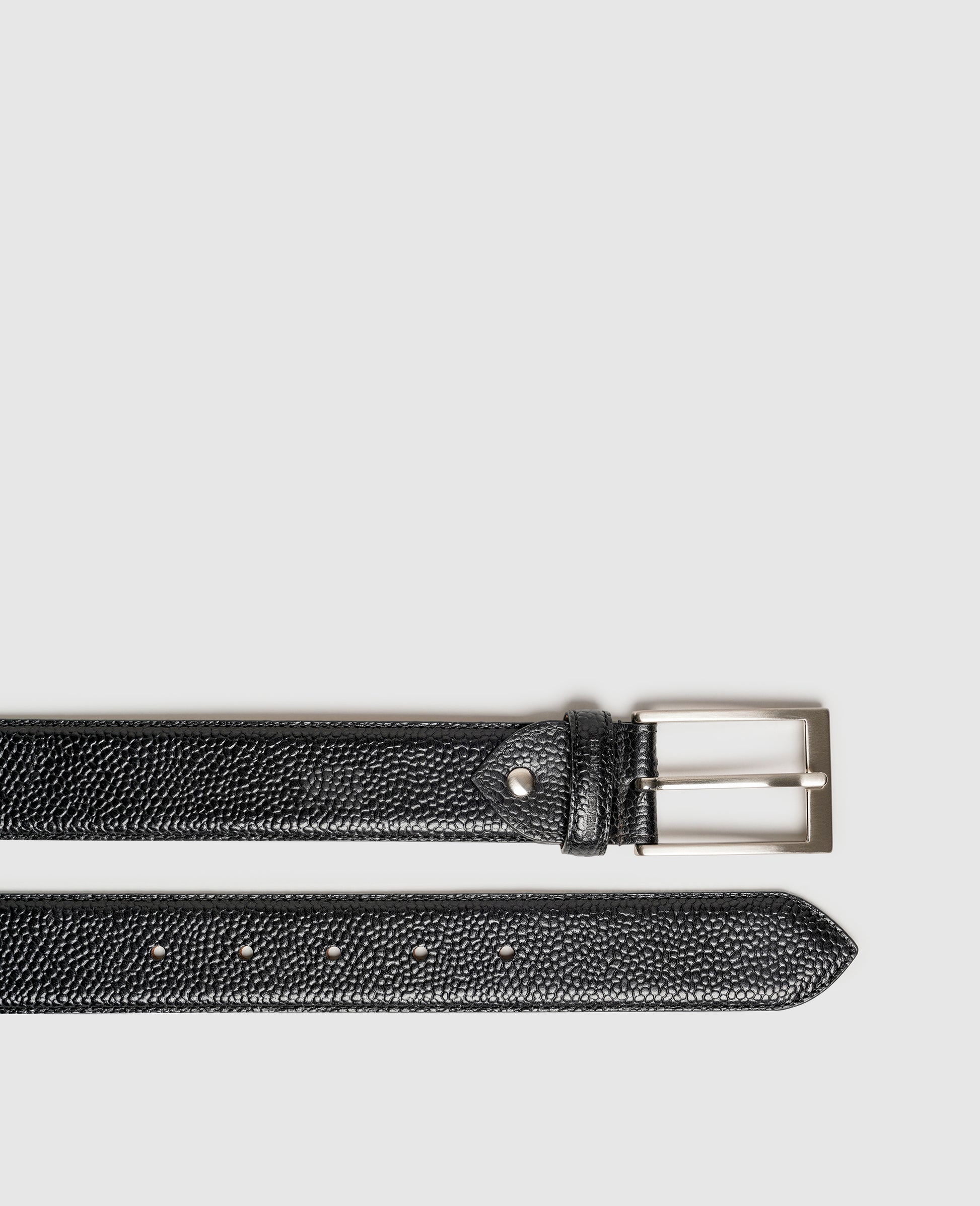 This handcrafted Scotchgrain leather men's belt from Henry Stevens features a striking look. The embossed cowhide leather on the outer layer is an absolute eye-catcher and exudes a certain nonchalance, while the tightly stitched inner layer is made of natural calfskin. Classic understatement is conveyed by the elegant silver pin buckle made of nickel-free zamak. This leather belt for men features a width of 35 mm.