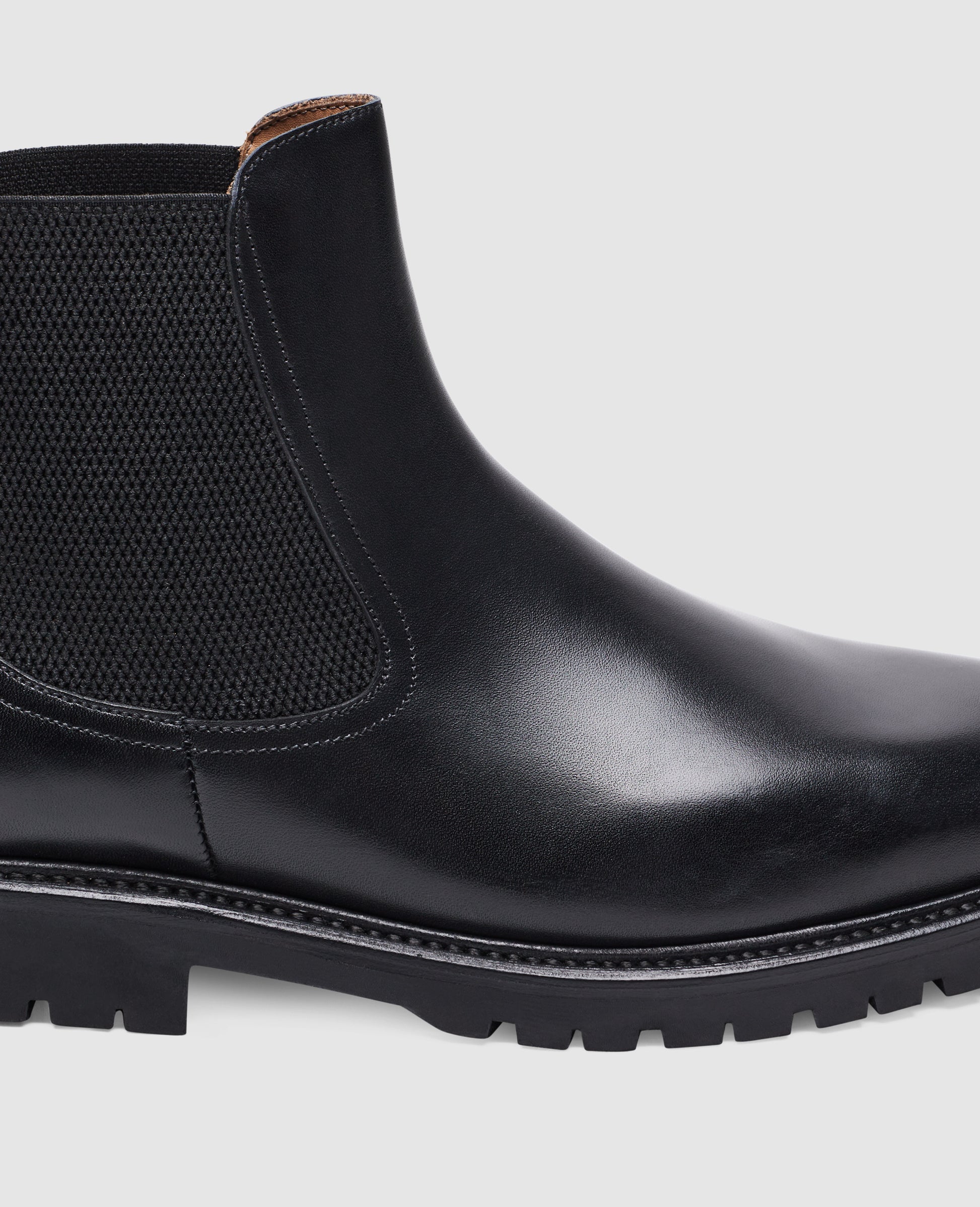 The handmade Jones Chelsea boot in black is made from supple box calf and an inner material made from vegetable-tanned leather. The wide last shape and goodyear-welted design offer a high level of comfort and the robust rubber sole makes it comfortable and suitable for the autumn season. Made in Spain.