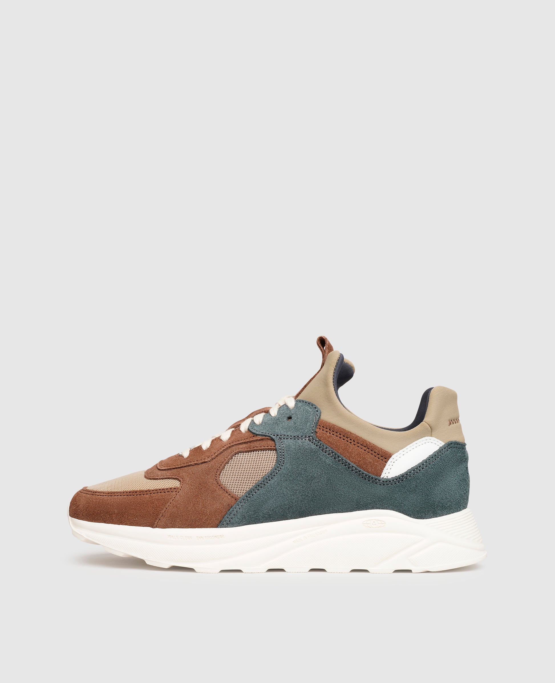 This Larch model from ekn Footwear offers casual trainer vibes with an athletic feel guaranteed to add that extra edge to any outfit. The combination of velour leather and recycled Neoprene is reflected in the use of color, allowing the eye to focus on the sock-like upper, which provides additional support for the ankle. A removable insole offers additional cushioning and comfort.