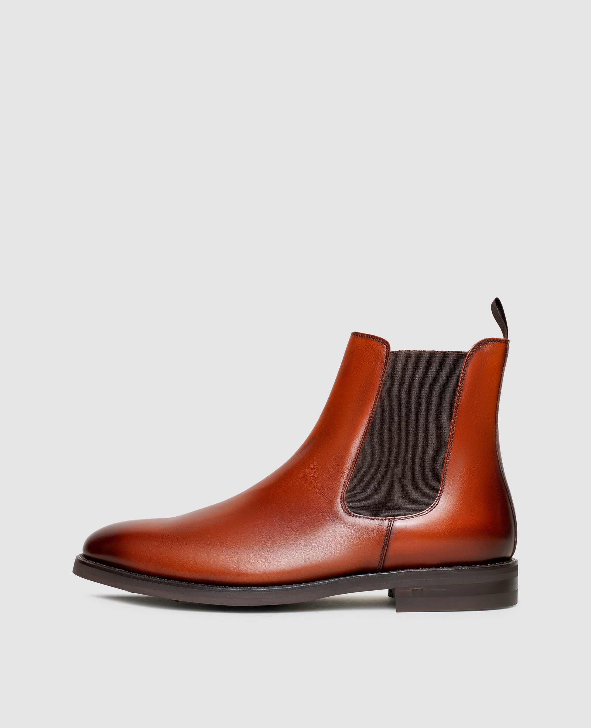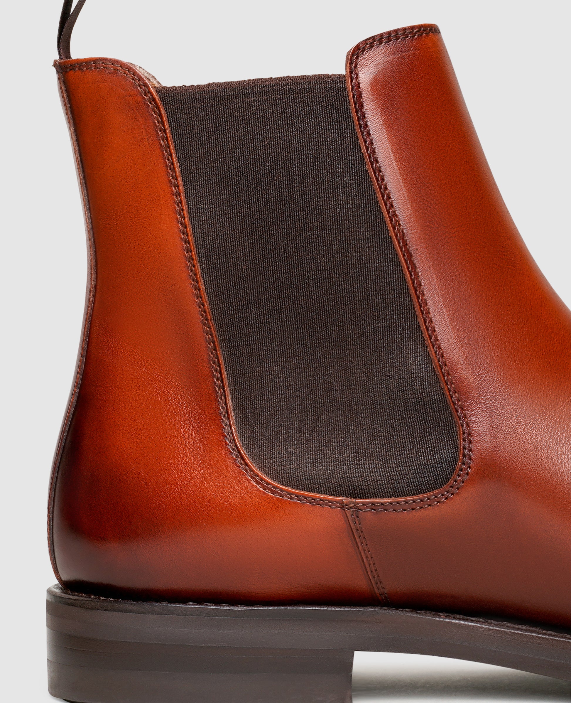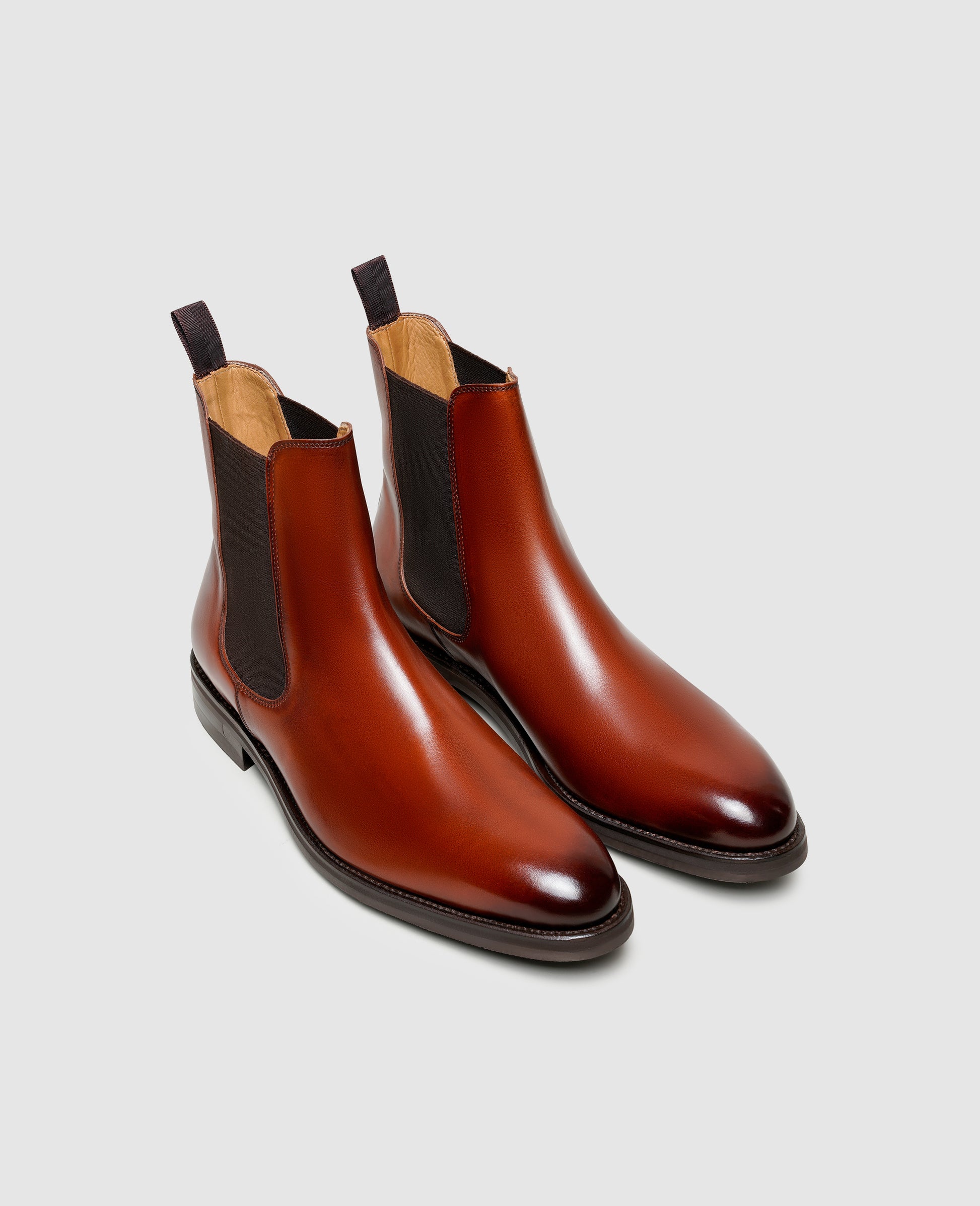 These Goodyear-welted, handcrafted Chelsea boots for men from the Henry Stevens collection impress with their subtle shades of light and dark on the supple smooth leather. Resulting from an intricate hand finish, these nuances add a modern flair to this popular men's boot, which features, as ever with this style, the signature elastic side inserts. The non-slip Dainite rubber outsole guarantees a secure step even in inclement weather.