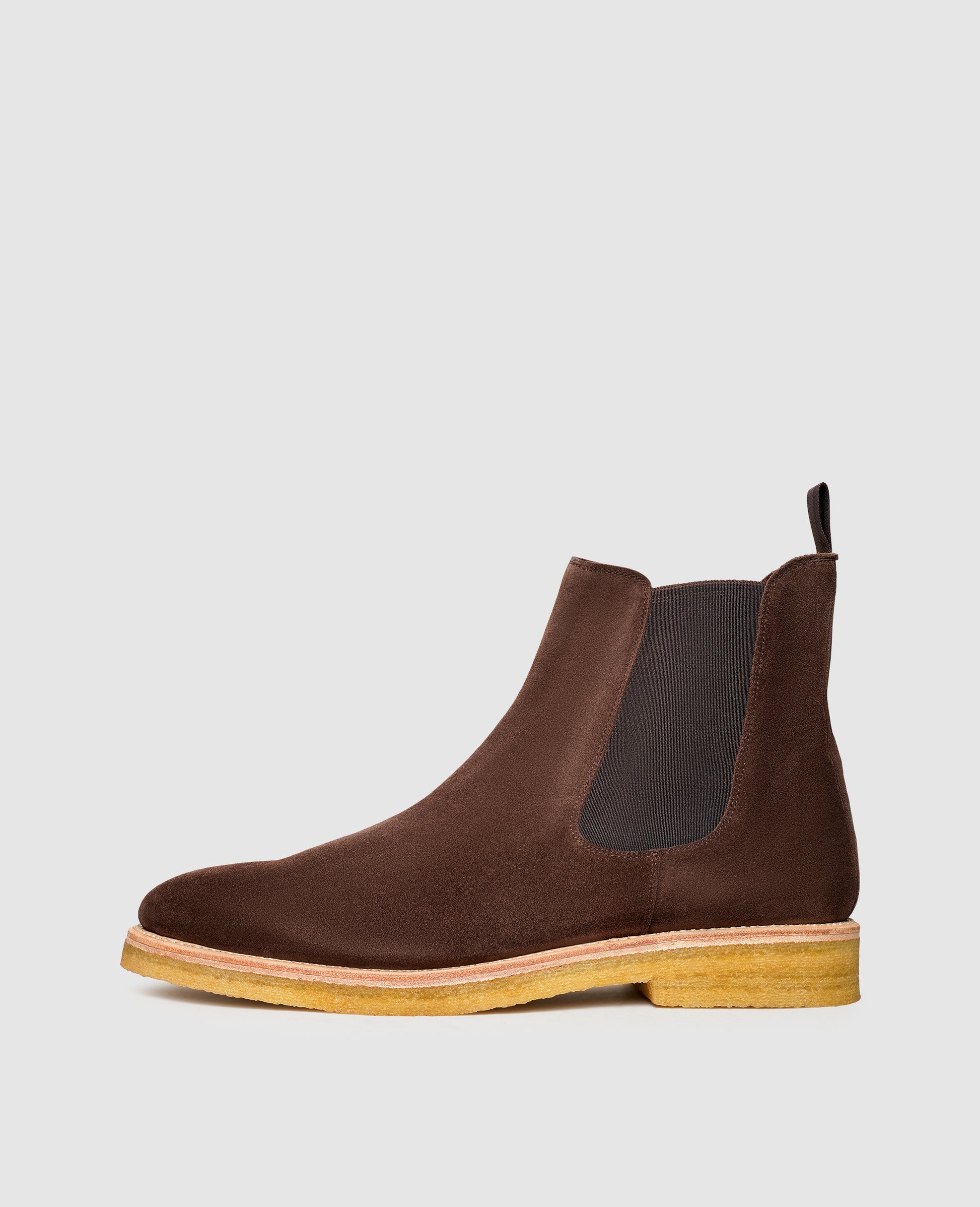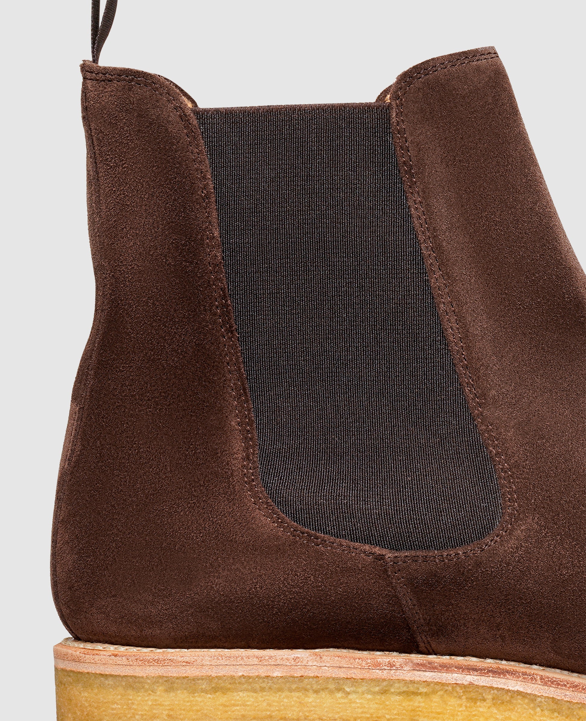 A favorite for smart-casual looks, these Goodyear-welted boots from the Henry Stevens' men's collection boast a velvety suede look and are sure to impress with their renowned nonchalance. The elastic side inserts and rear pull loop, essential for any Chelsea boot, are complemented here by a sturdy crepe sole. The elaborate manufacturing that goes into this model guarantees a comfortable, durable, and repair-friendly all-rounder.