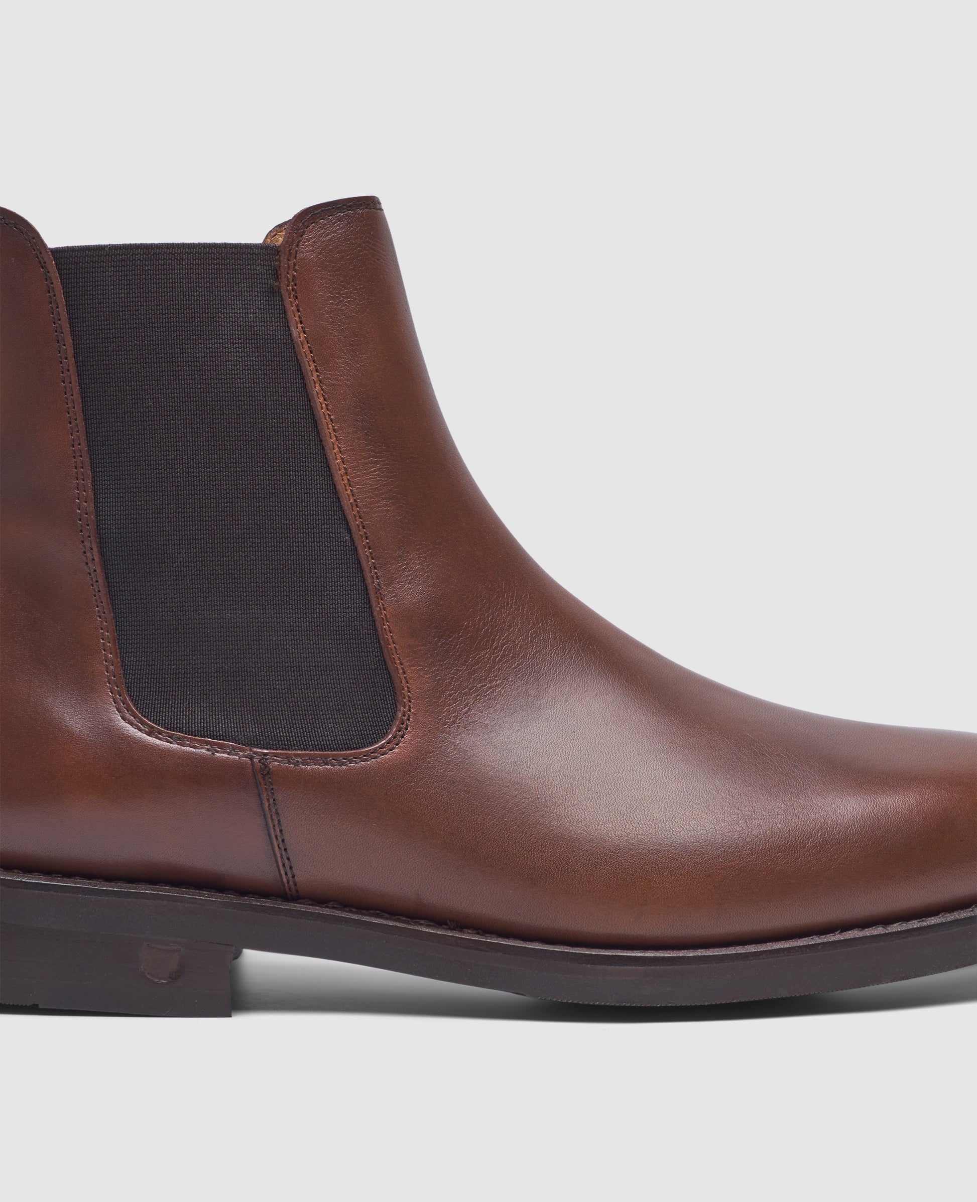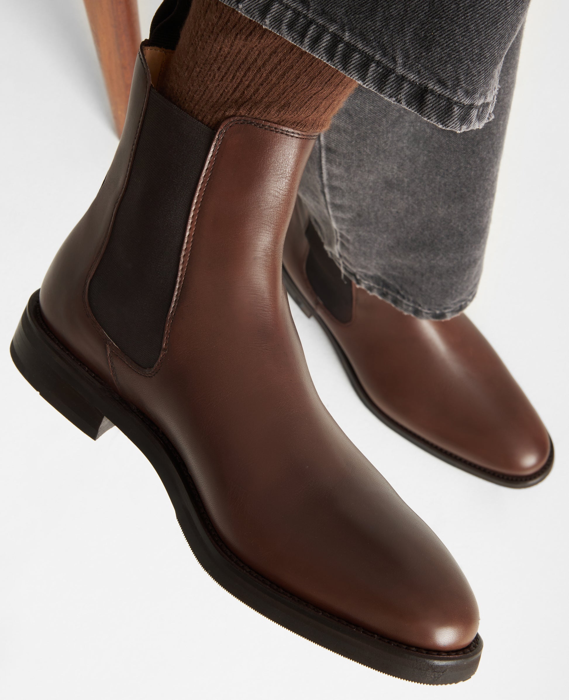 Authentic, comfortable and handmade from exquisite materials, the goodyear-welted Chelsea boot in medium brown by Henry Stevens combines everything a sophisticated and sustainable men's boot needs. The supple, shiny calfskin is accentuated by the wide rubber band inserts on the sides - a practical pull loop on the heel makes it easier to put on and take off. The modern leather and rubber sole rounds off the comfortable walking experience with flying colors.