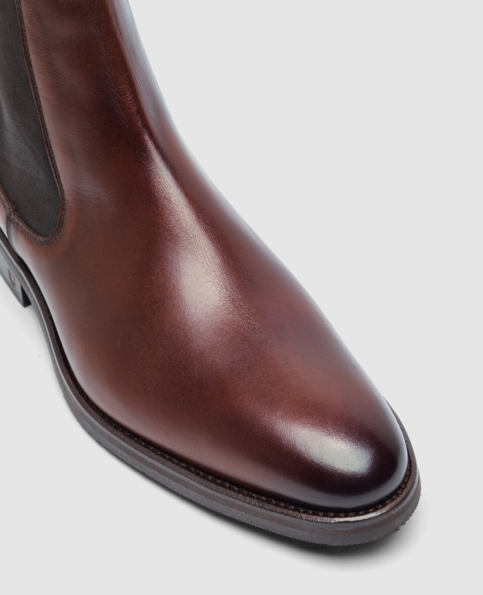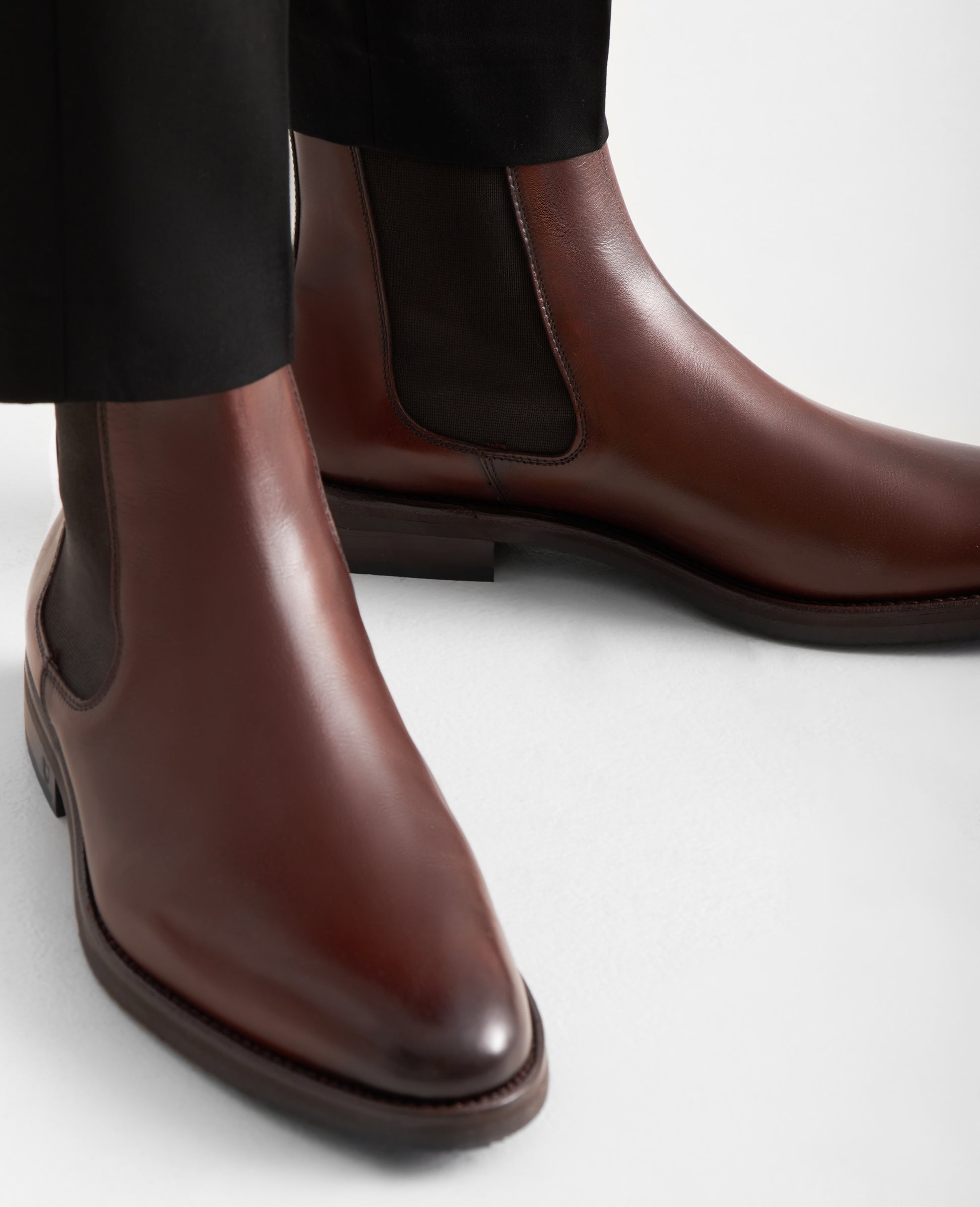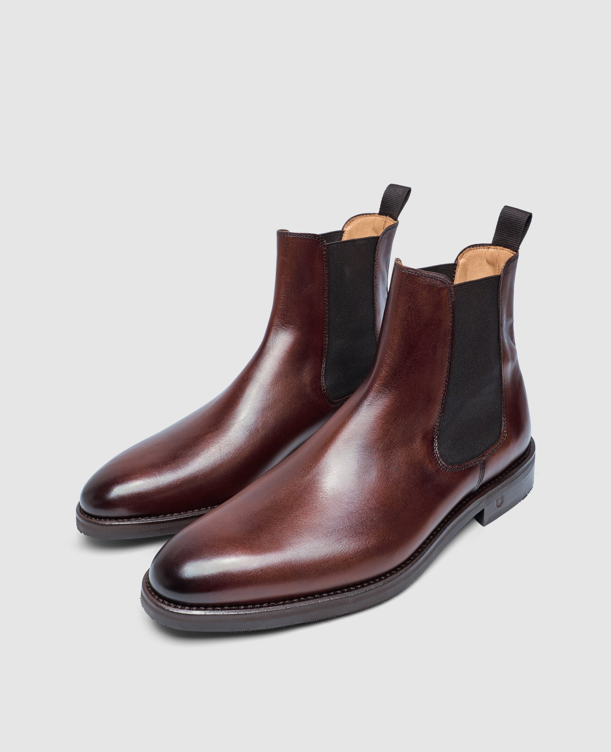 The Marshall Chelsea boot in mid-brown is handmade from calfskin with a patina and an inner material made from vegetable-tanned leather. With its goodyear-welted seams, it combines elegant design with a high level of comfort. Made in Spain.