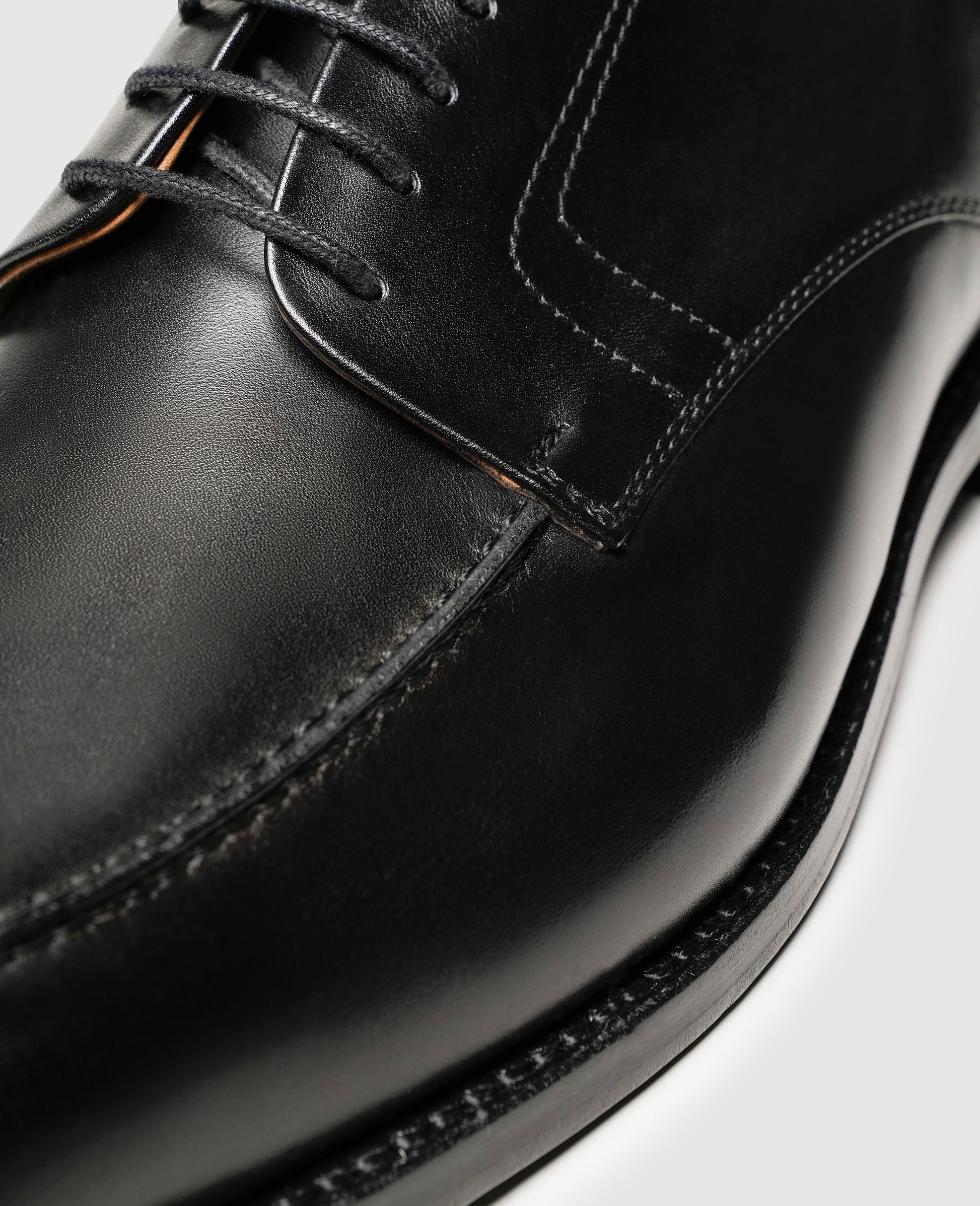 A striking elegance defines this Goodyear-welted, handcrafted Norwegian men's shoe from Henry Stevens. The famous lace-up shoe is characterized by the U-shaped design of its upper, as well its dynamic split seam. In the Marshall model, this distinctive design is combined with supple French smooth leather and an elegant leather sole. Thanks to its exquisite materials and elaborate manufacturing, this Norwegian men's shoe transcends the boundaries between classic tradition and contemporary nonchalance.