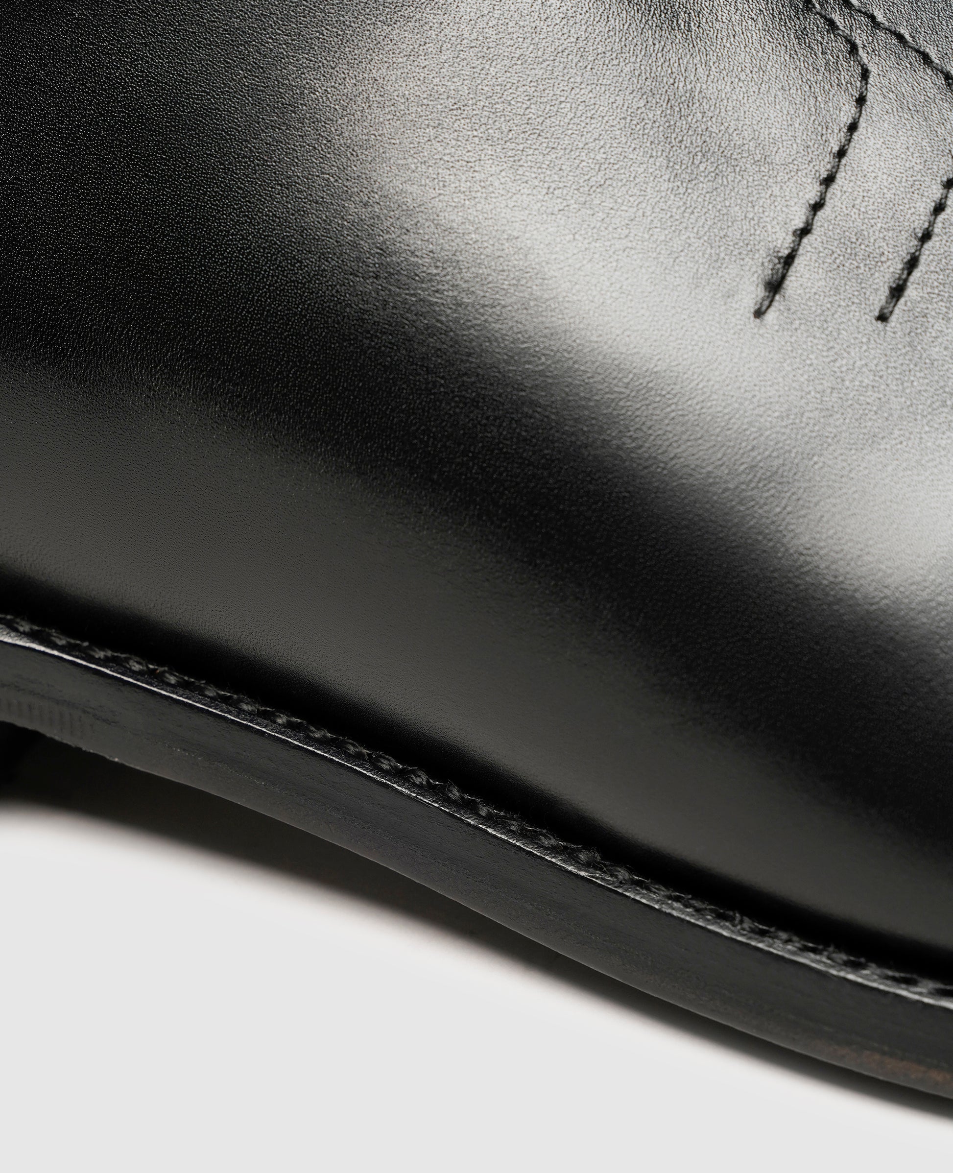 This Goodyear welted, handcrafted men's wholecut shoe from Henry Stevens is nothing less than the pinnacle of elegance. Its classic grace stems from its intricate basic cut, which uses a single piece of leather to create the shoe's upper. In combination with its exquisite smooth leather, characteristic closed lacing, and the elegant leather sole, this wholecut model is the perfect companion for life's special moments.