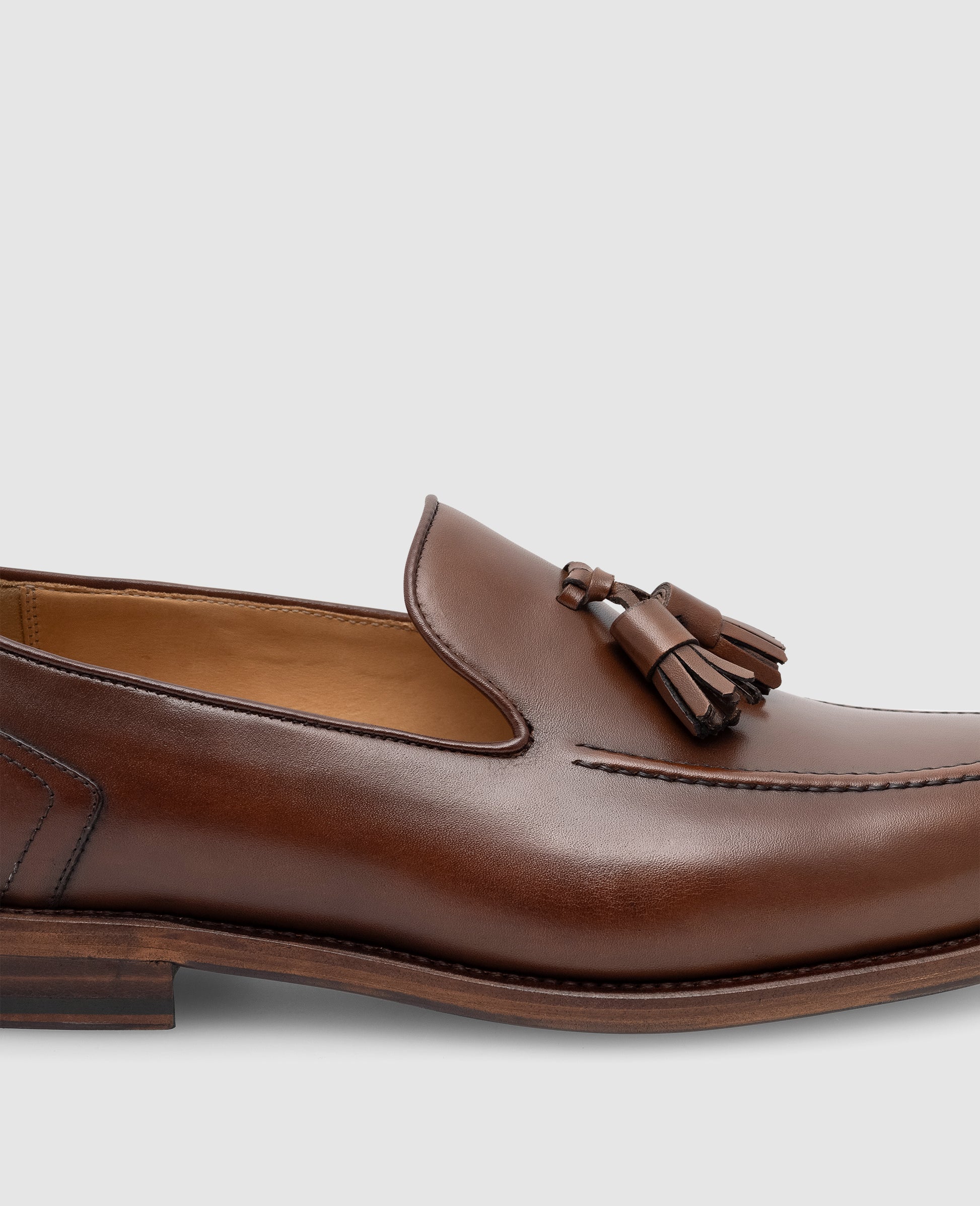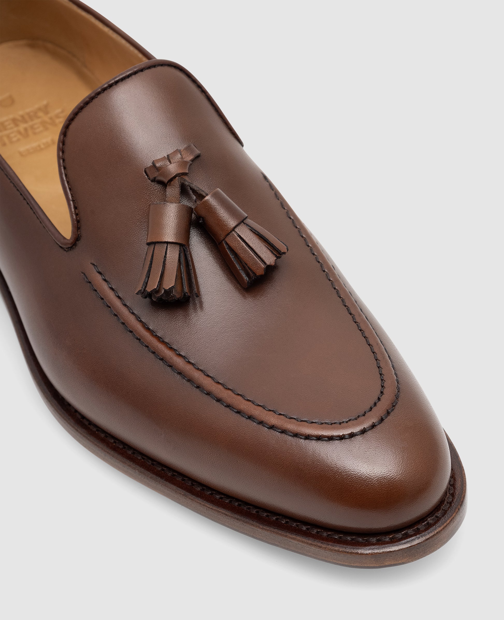 The Marshall tassel loafer in brown is an elegant companion for the summer. With its welted construction and high-quality box calf material, it offers durability and style. The vegetable-tanned leather lining and flexible leather sole ensure a comfortable fit.