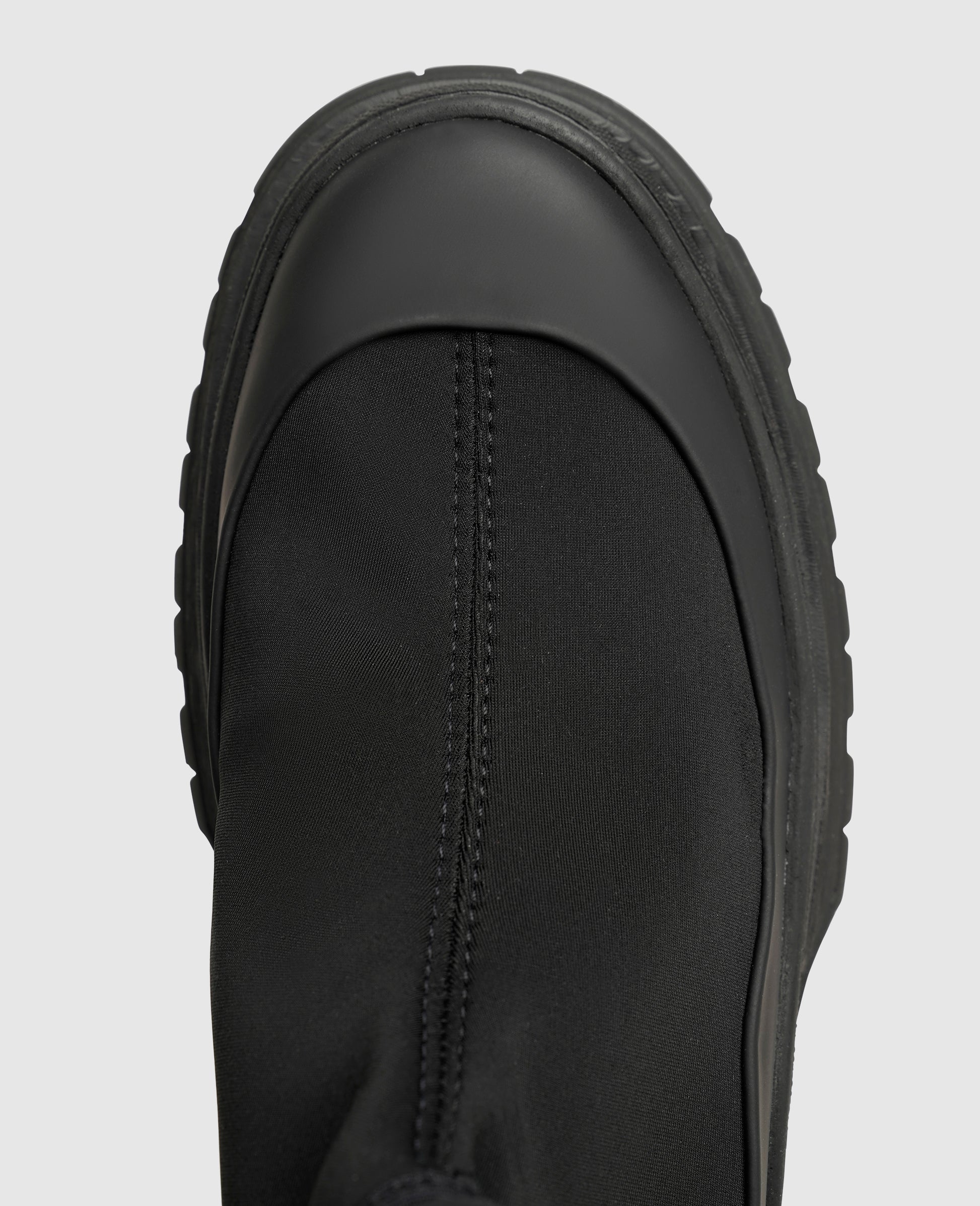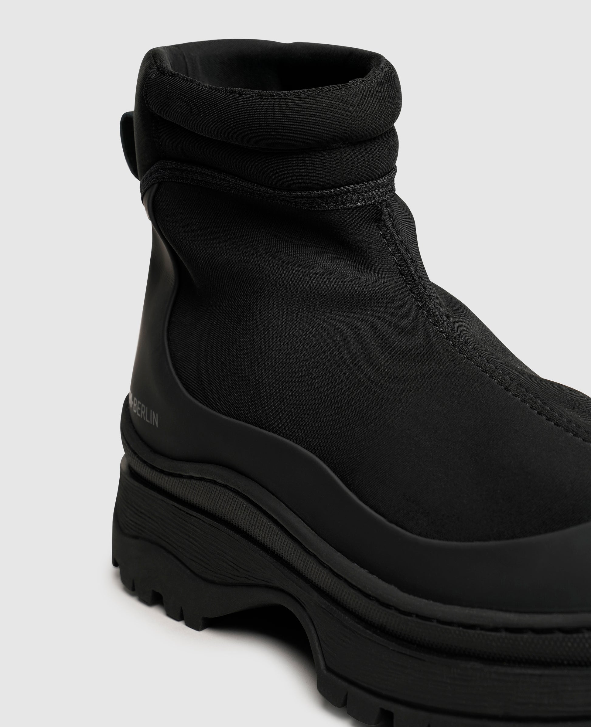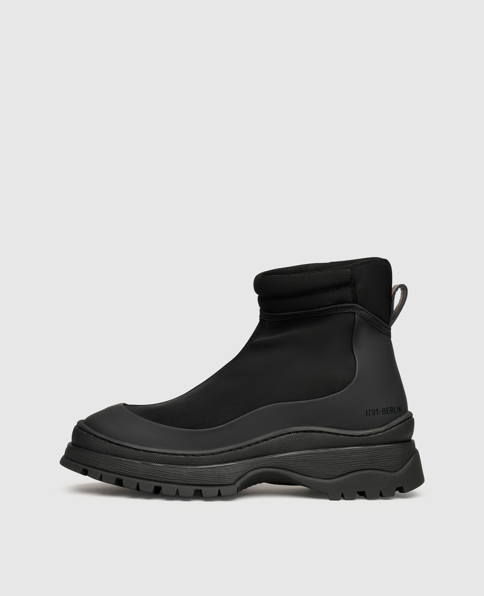 Guaranteed to be quite the statement piece and an eye-catching addition to any look, this ankle boot from N91 is a must-have. The upper has the appearance of a sock, while a pull tab at the heel makes it easy to slip into the close-fitting model. This women's textile ankle boot also features a water-repellent, rubberized leather shell that extends all the way to the heel. The matte leather section also features the N91 logo printed in a subtle shimmer.