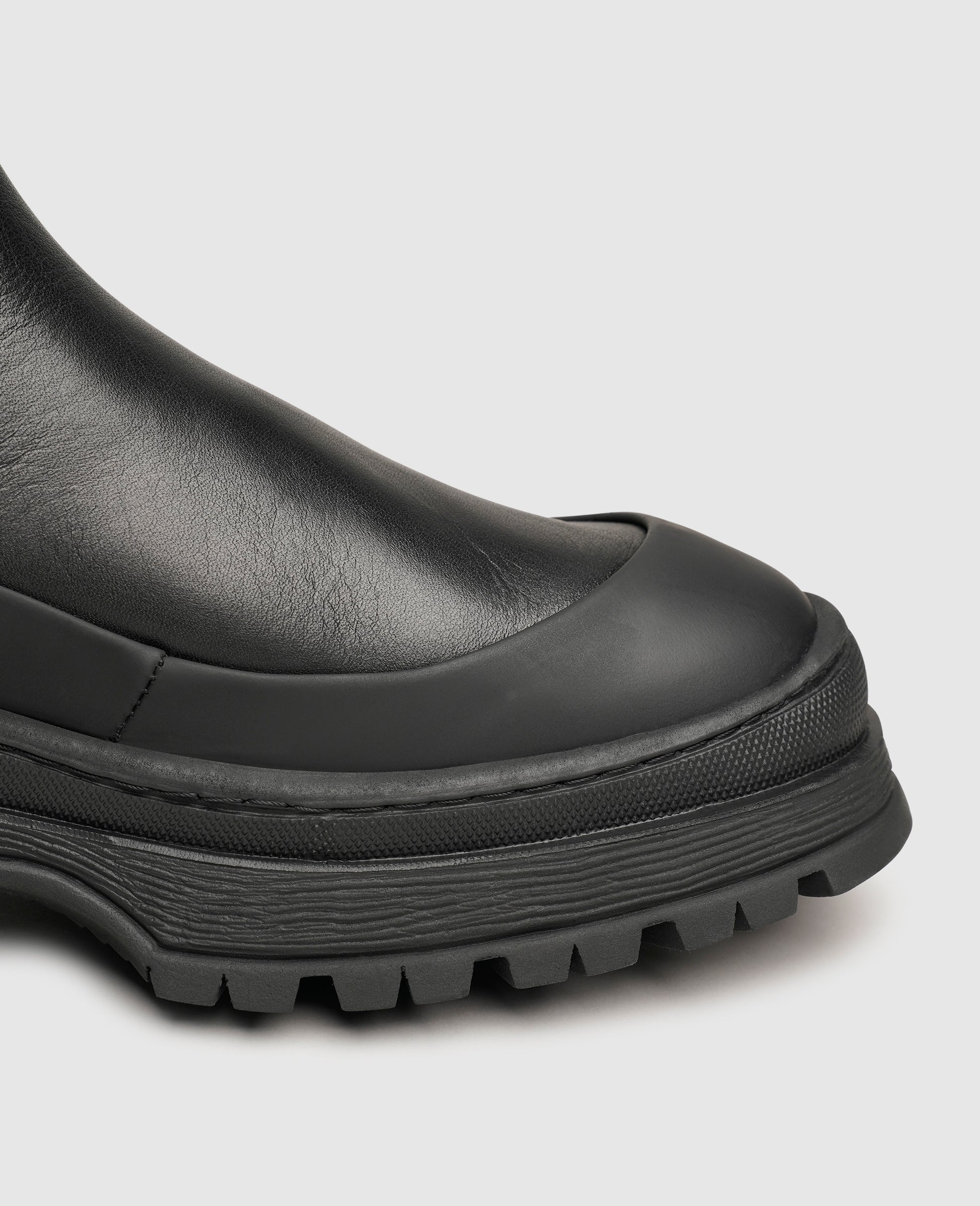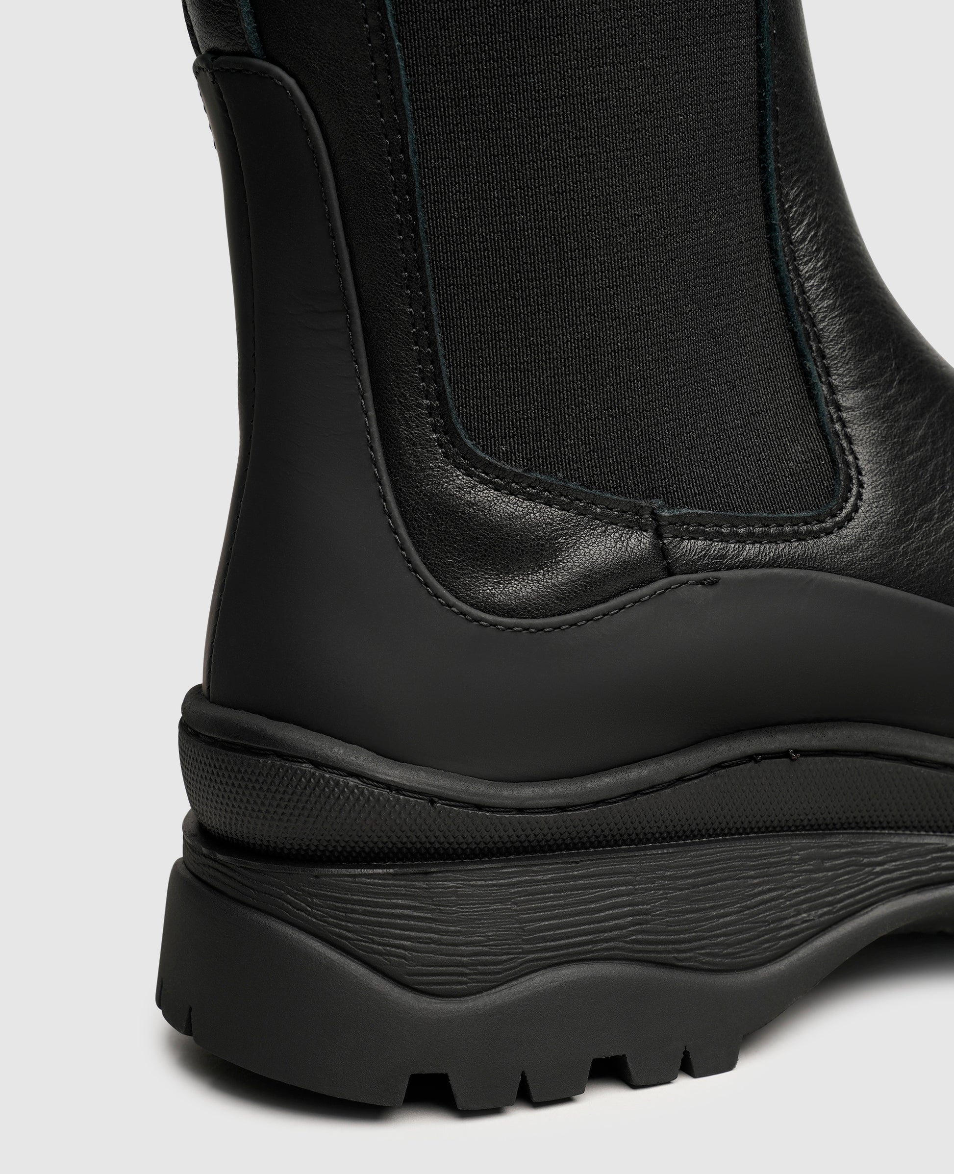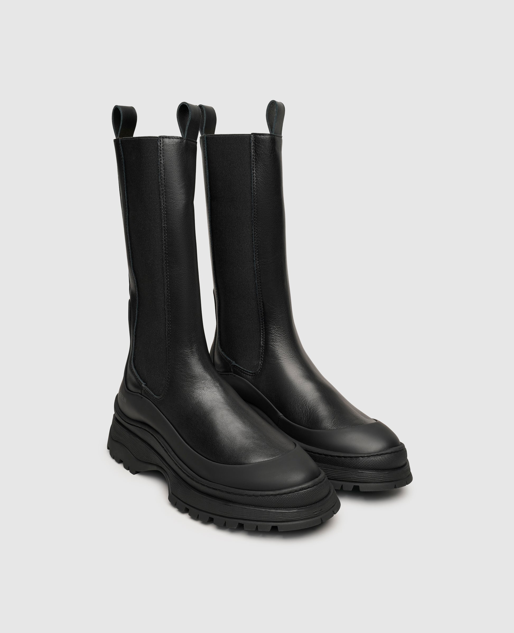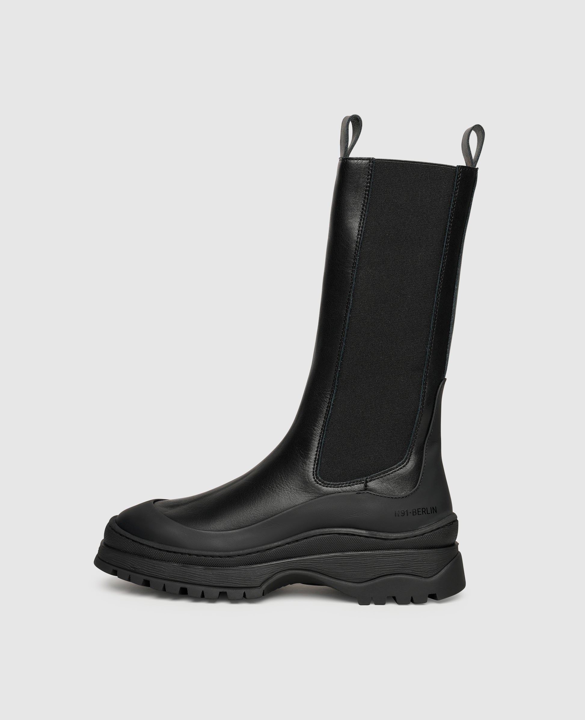 You can create on-trend looks for both the fall and winter with these longline Chelsea boots. The upper covers almost the entire calf and is complemented by the characteristic elastic inserts, extending the entire height of the model. The technical rubber profile sole leads into a rubberized leather trim around the calfskin leather, which is in itself both highly durable and water repellent. The subtle shimmer of the logo printed on the side of the heel designates this model as a Berlin original belonging to the N91 brand.