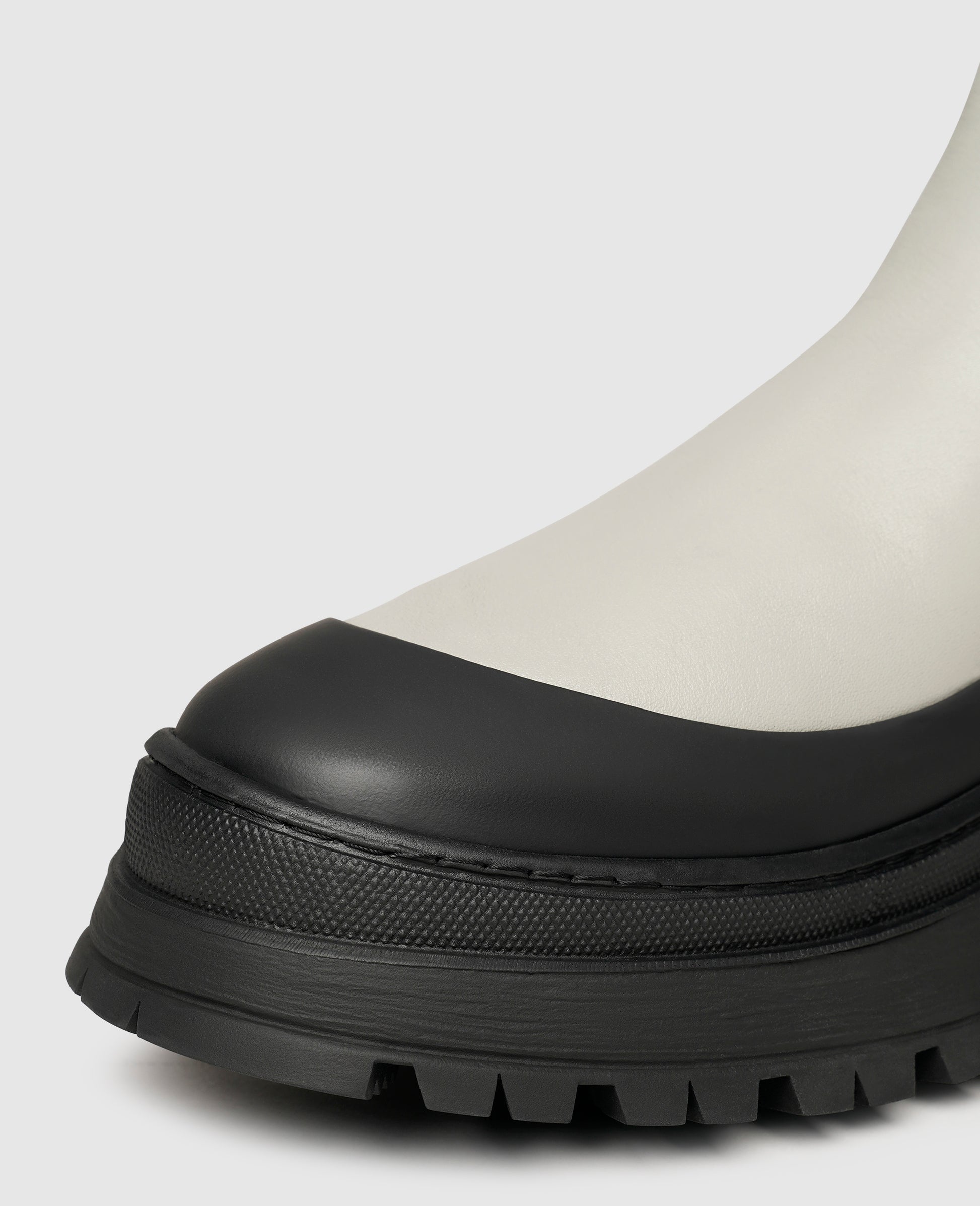 Innovative design meets high-quality materials in these stylish Chelsea boots from N91. The shaft extends above the mid-calf and is complemented by the distinctive elastic inserts on both the inside and outside of the model. The technical styling of the rubber profile sole features a rubberized leather trim that frames the forefoot of this women's water-repellent calfskin leather boot and adds a distinctive accent. The entire interior of these slip-on boots is made from organic leather, free from harmful substances, and comes with a comfortable memory foam footbed.