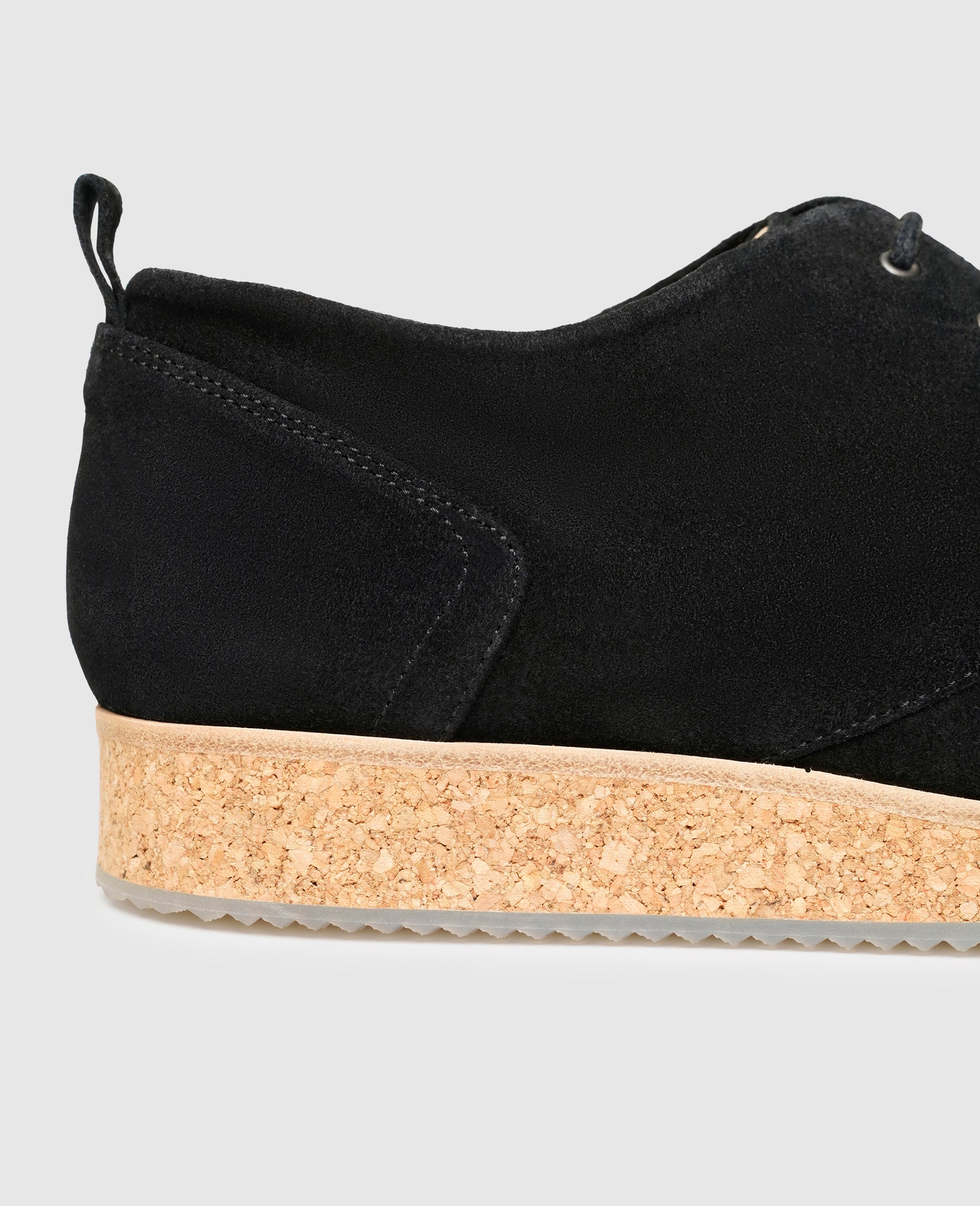 Casual flair surrounds this men's Derby in velvety suede from Henry Stevens. The shoe's upper with its open lacing showcases a dynamic and easy-care suede with a soft feel. The base of the shoe captivates with its bright natural cork and non-slip rubber outsole. Together with its practical interchangeable footbed and vegetable-tanned organic inner leather, this modern lace-up shoe for men promises a comfortable and lightweight wearing experience.