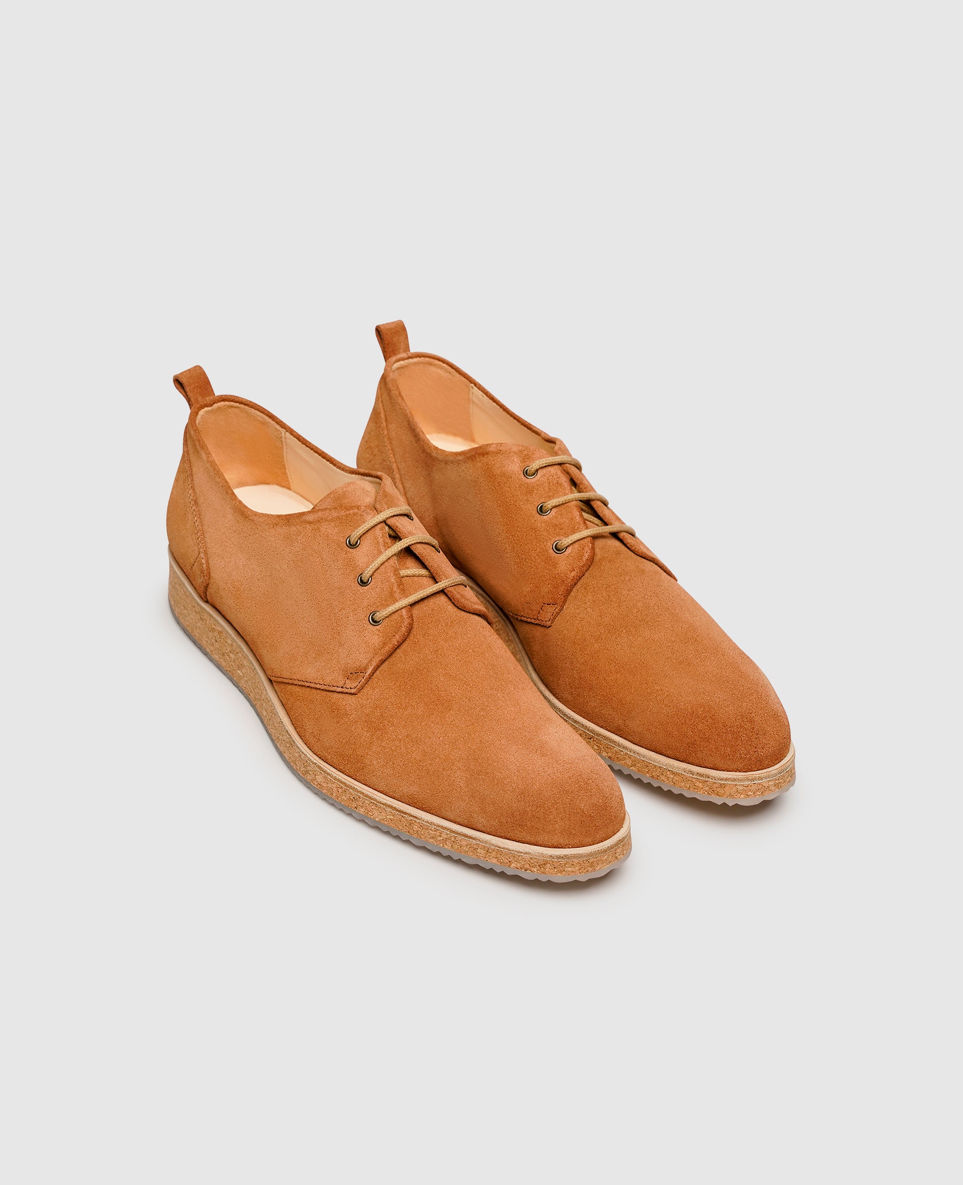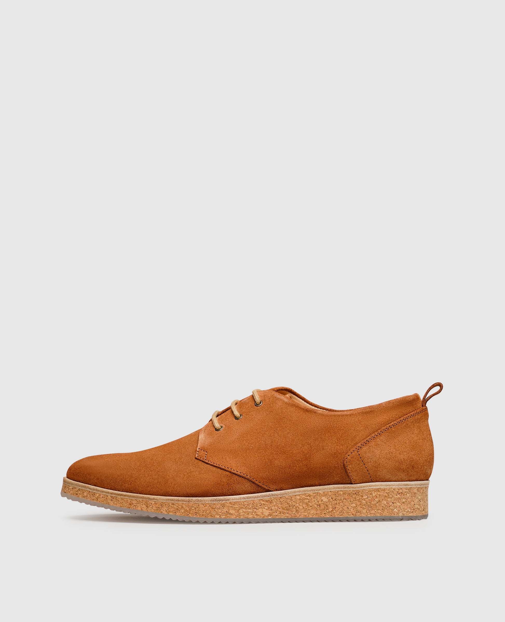 Casual flair surrounds this men's Derby in velvety suede from Henry Stevens. The shoe's upper with its open lacing showcases a dynamic and easy-care suede with a soft feel. The base of the shoe captivates with its bright natural cork and non-slip rubber outsole. Together with its practical interchangeable footbed and vegetable-tanned organic inner leather, this modern lace-up shoe for men promises a comfortable and lightweight wearing experience.