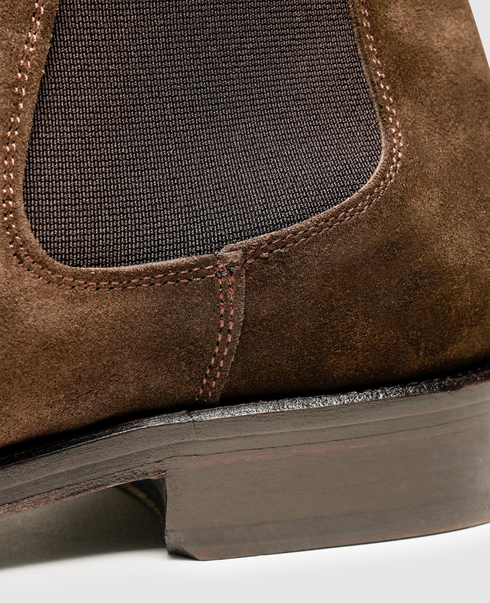 The ever-popular Chelsea boot is available here from Henry Stevens in a Blake-stitched design with a comfortable heel cushion with memory foam effect. The shaft, which extends just above the ankle, impresses with its soft velour leather and traditional elastic side inserts, while the inside of the model is lined with a compostable organic lining. The combined leather-rubber outsole guarantees a secure footing even in wet and slippery conditions.