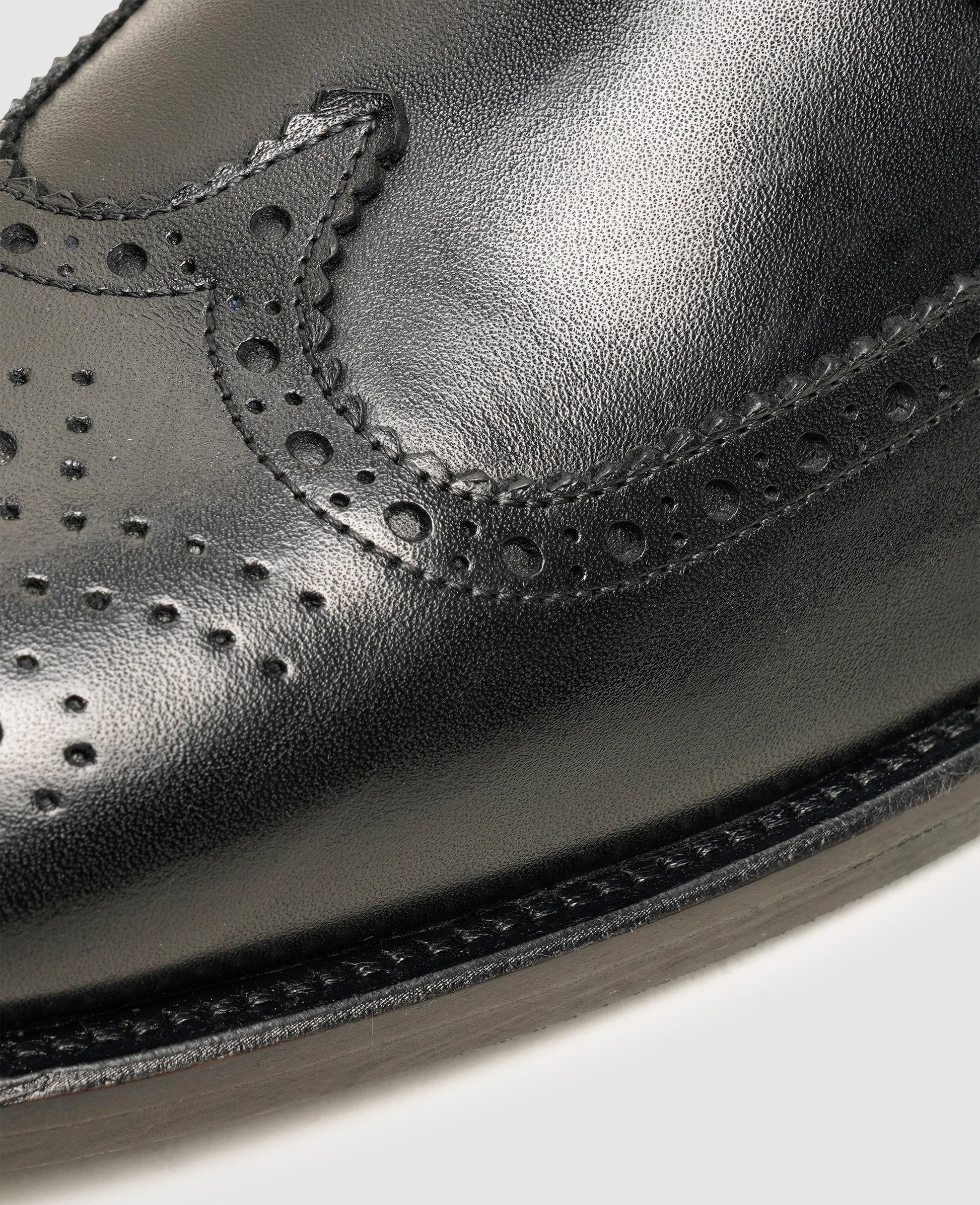 These Blake-stitched full-brogue Derby boots for men from the Henry Stevens collection offer a modern lightweight appeal. While the fine smooth leather showcases opulent detailing, the inner lining is made from compostable organic leather. The lightweight construction of the sole and padded heel cushion with memory foam effect provide comfort and flexibility, and the sturdy leather-rubber outsole prevents hazardous slipping in wet and slippery conditions.