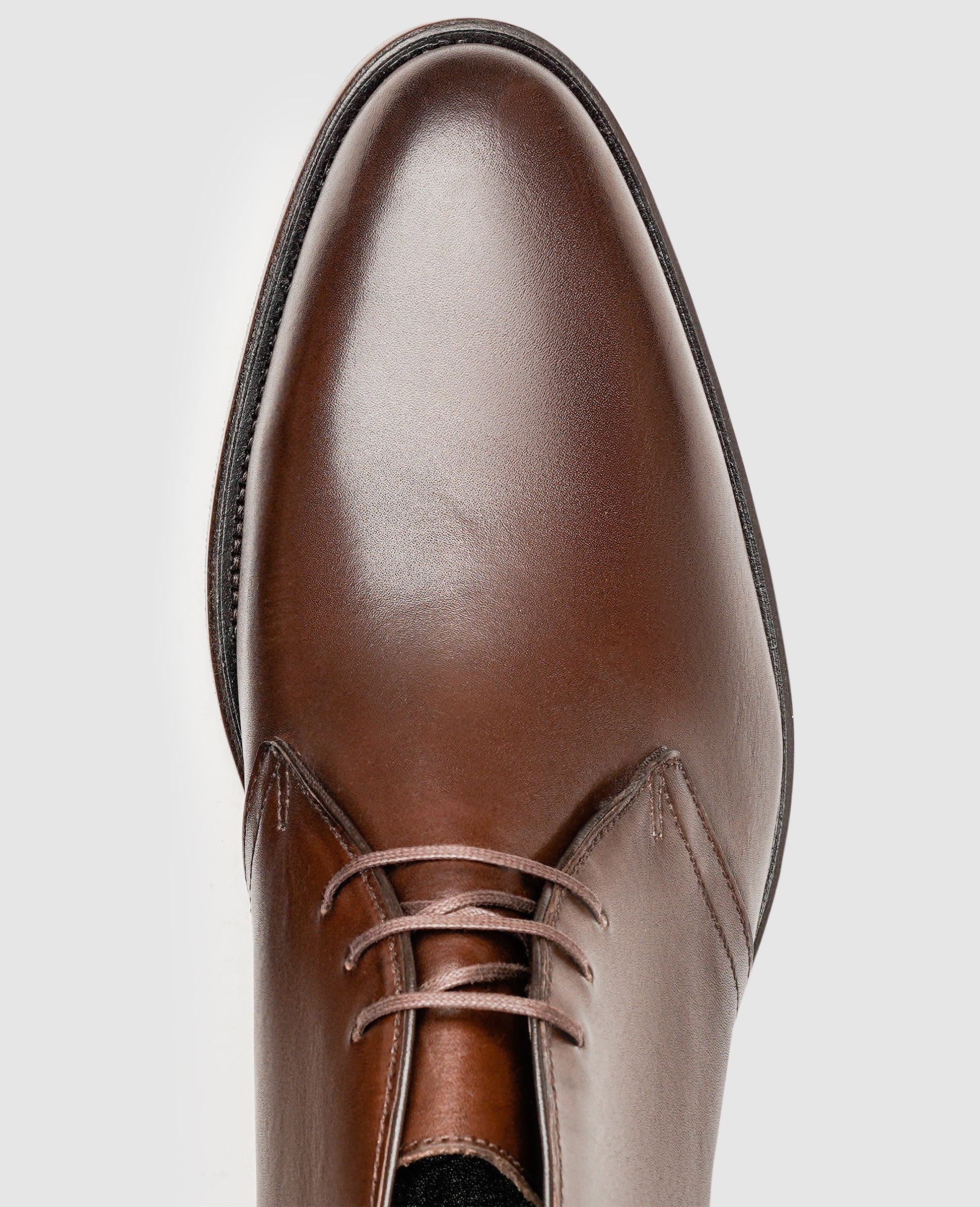 Purist elegance is combined with lightweight sole construction in these handcrafted George boots from the Henry Stevens brand. Crafted from the finest smooth leather, the Blake-stitched construction of this model lends the famous men's ankle boot a special flexibility. The high degree of wearing comfort is further supported by additional heel cushioning with a memory foam effect, as well as a combined leather-rubber outsole. The icing on the cake is an inner lining made of organic leather.