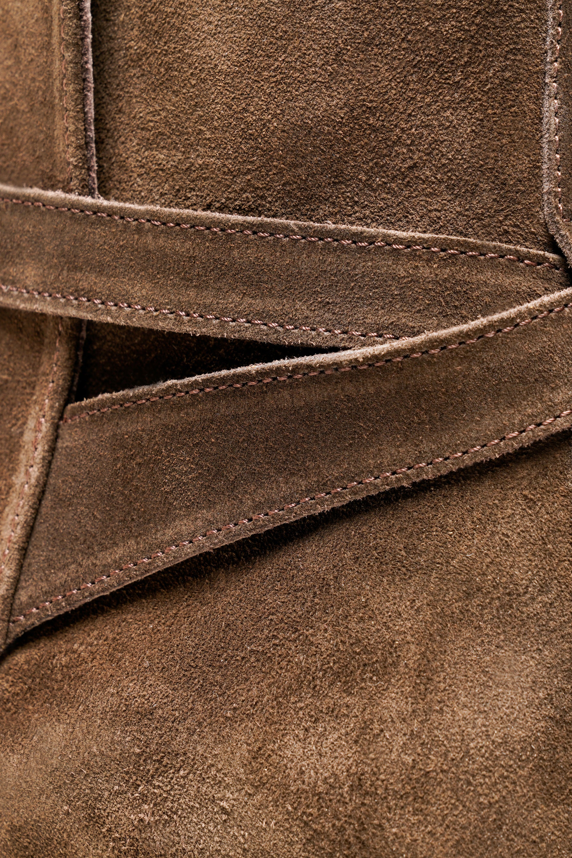 These handcrafted and Blake-stitched velour jodhpur boots from Henry Stevens offer style, comfort, and flexibility. These traditional boots feature an eye-catching cross strap with elegant buckle detailing and a sturdy leather-rubber outsole. The inner lining is made of organic vegetable leather and an integrated heel cushion guarantees exceptional comfort. Ideal for both casual business and sophisticated leisurewear looks.