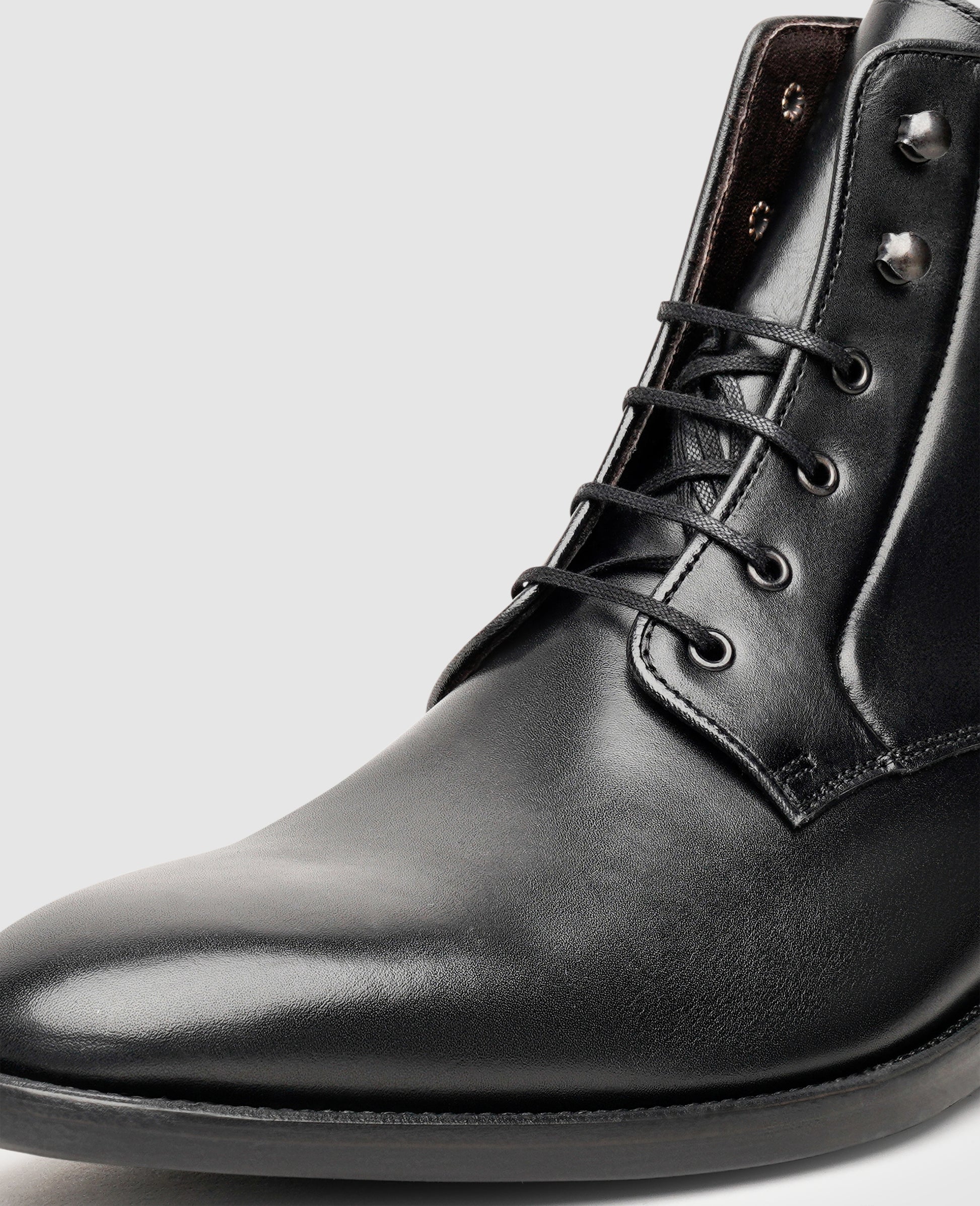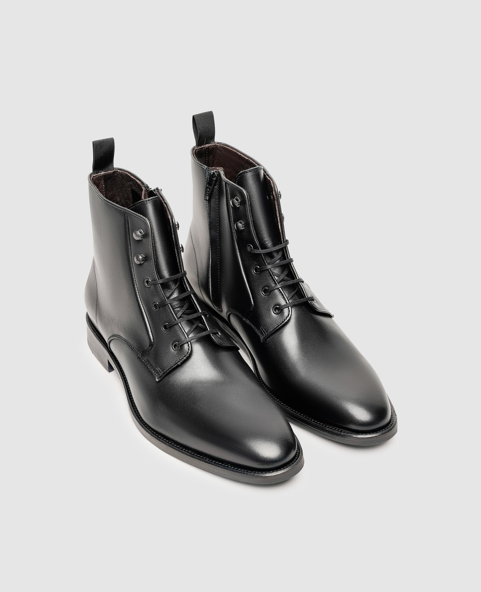 These handcrafted lace-up boots for men from Henry Stevens are authentic, flexible, and versatile. The classic design pays homage to the popular Derby cut with its open lacing and is paired stylishly here with the finest smooth leather and an organic lining. The Blake-stitched construction ensures a high degree of flexibility, which is further complemented by the additional heel cushioning with memory foam effect, zip fastening, and non-slip leather-rubber outsole.