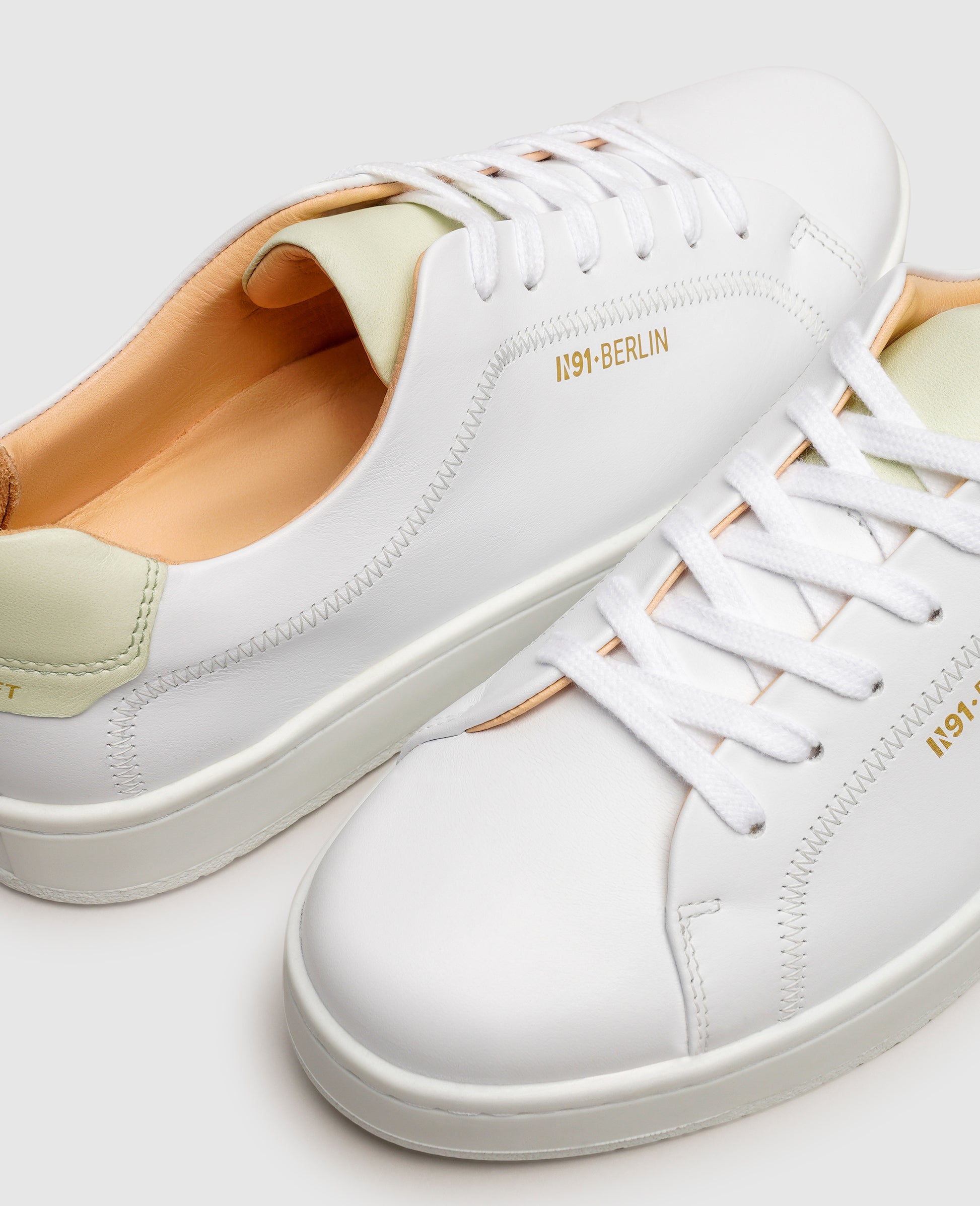 This handcrafted women's trainer from the N91 collection embodies modern understatement. The shoe's upper, made of supple calfskin leather, has been kept predominantly in a subtle white color. The flexible rubber outsole, featuring a practical interchangeable inner footbed, is similarly discreet. One highlight: individual color elements on the shoe's tongue and toe cap provide an unobtrusive dynamism.