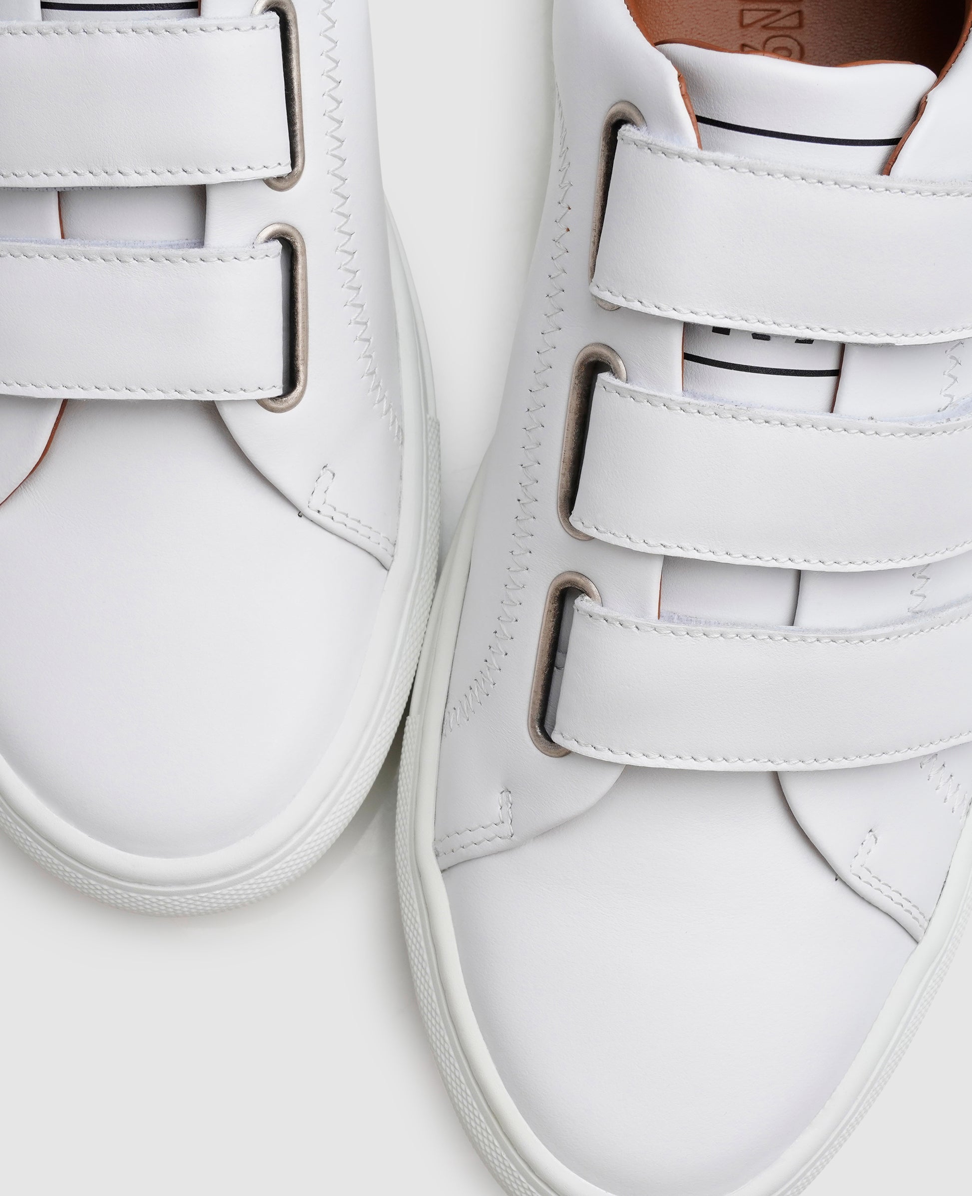 A Velcro trainer is the epitome of casual retro style. Its eponymous Velcro fastener is undoubtedly a visual highlight, especially in this threefold version, transforming the fastening of this model into pure child's play. The celebrated lightness of the trainer comes traditionally from its wide, rubber shell sole, which also accommodates a practical interchangeable footbed. Thanks to this flexibility, the wearer is free to use their own insoles. The striking outsole provides a pleasant contrast to the supple, glossy calfskin that adorns the entire upper. Two eyelets on the inside of the shoe enhance its breathability, even when worn for longer periods.