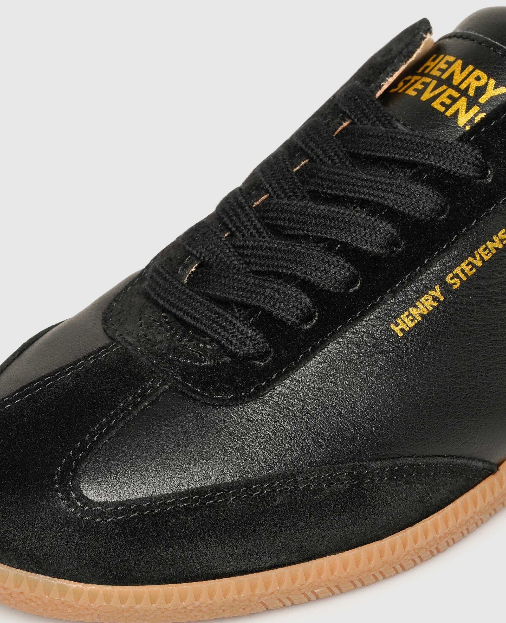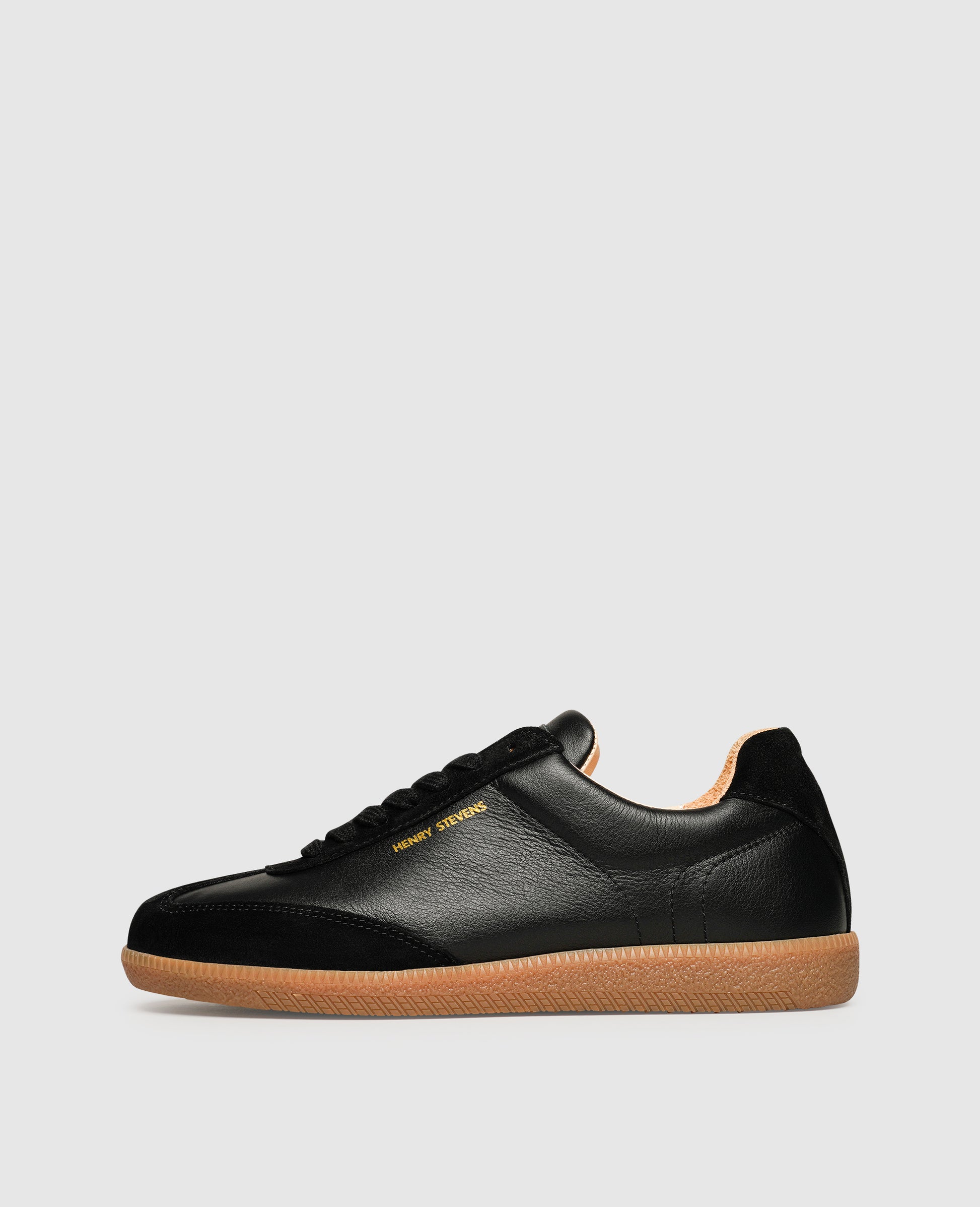 The sneakers by Henry Stevens combine comfort and a great look in a skillful way. Inside the shoe, which is made in Portugal, a fully compostable and skin-friendly organic leather lining and a comfortable exchangeable footbed with memory foam ensure an all-round comfortable walking experience. The shoe in black for ladies impresses with its dynamic mix of fine calfskin and velvety calfskin velours and is particularly stylish thanks to the lacing. A nonslip rubber outsole ensures that your feet won't get tired even after a long day. Easygoing and versatile, these casual lace-up shoes will win you over!