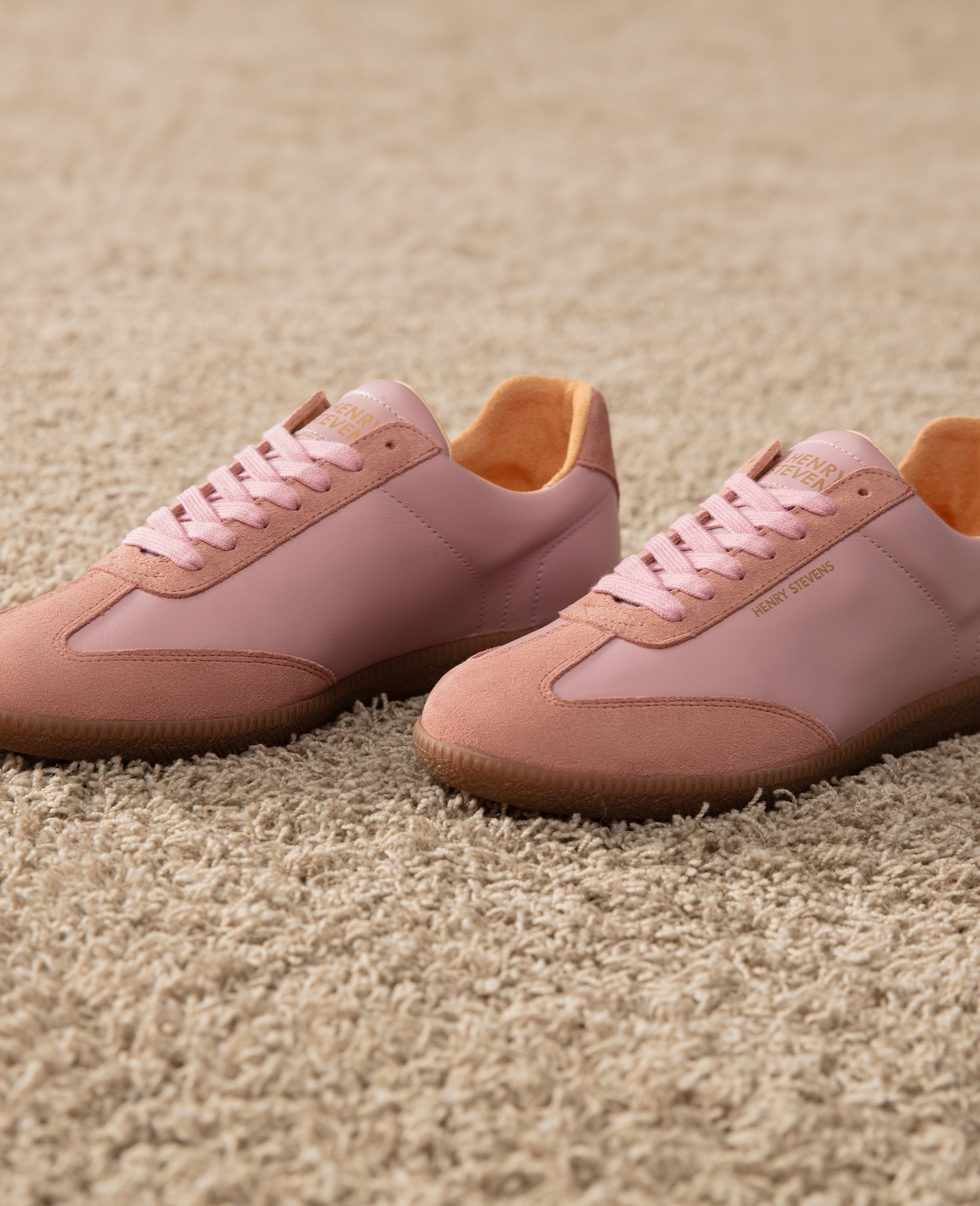 The Sophia indoor sneaker in a fashionable pink color is made of high-quality calfskin and an organic leather lining. This mix of materials in combination with the retro indoor sole complements any casual outfit.