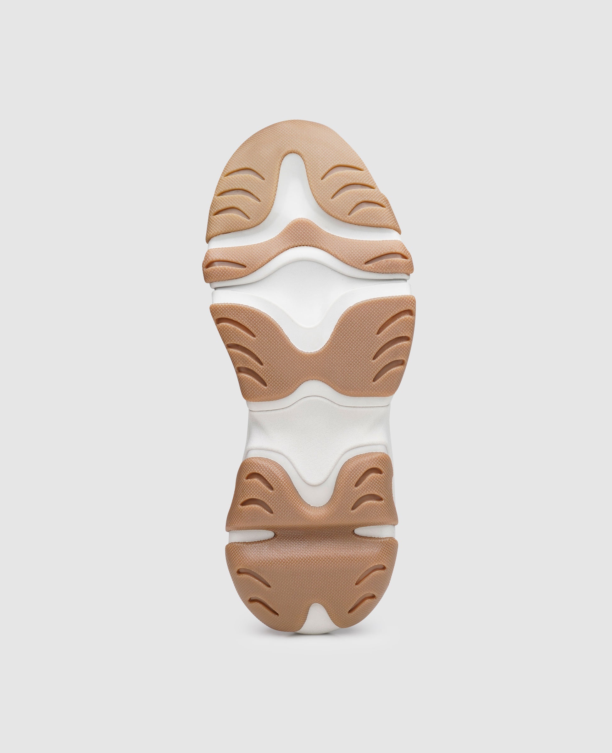 The combination of different materials is what gives these sneakers the visual dynamism for which "Dad Sneakers" have become so well known. There are three main components that make up the shaft of this shoe: The calfskin is a particularly striking feature, with a matt look that lends it the feel of a smooth leather; soft velour sections integrated in Portugal, where the shoe is manufactured, provide a rugged contrast; and the use of a sporty mesh completes the trio.