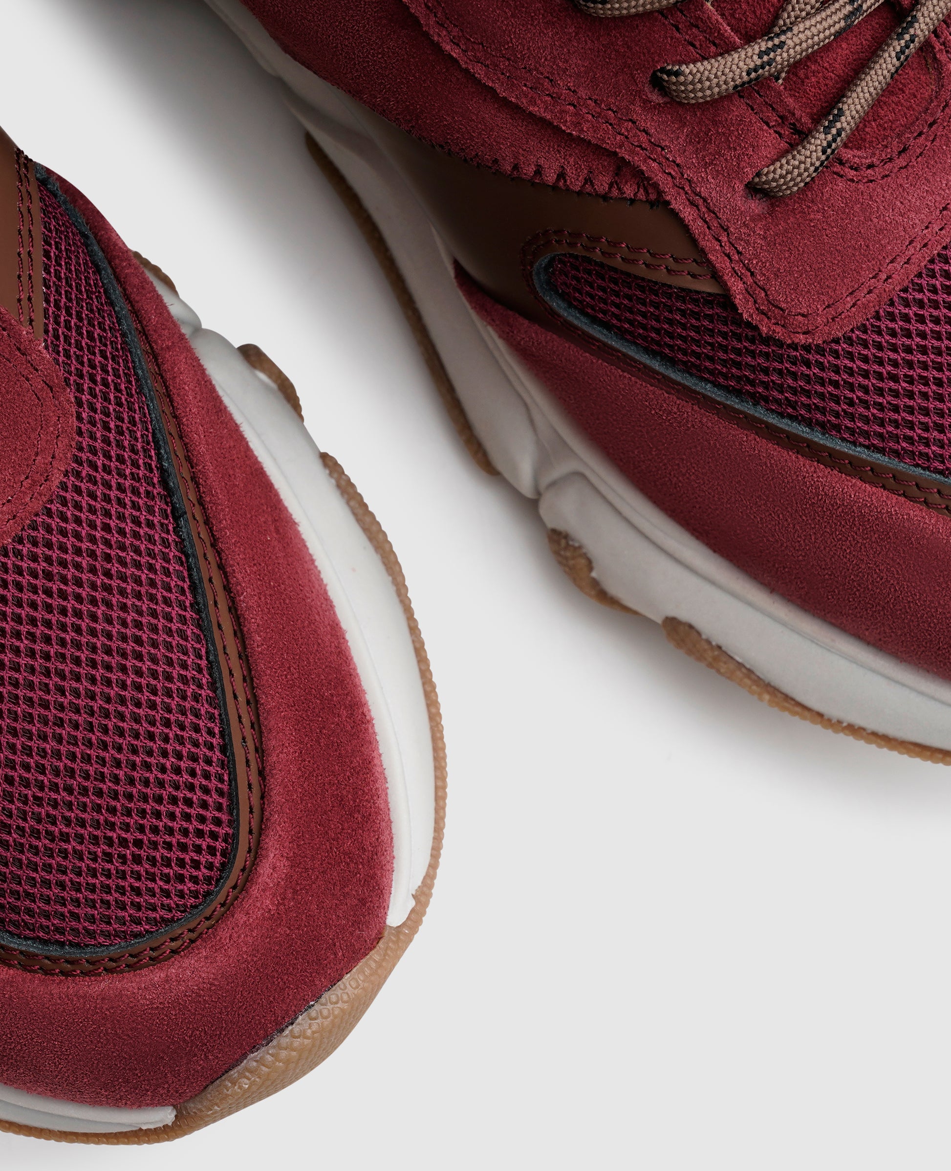 The combination of different materials is what gives these sneakers the visual dynamism for which "Dad Sneakers" have become so well known. There are three main components that make up the shaft of this shoe: The calfskin is a particularly striking feature, with a matt look that lends it the feel of a smooth leather; soft velour sections integrated in Portugal, where the shoe is manufactured, provide a rugged contrast; and the use of a sporty mesh completes the trio.