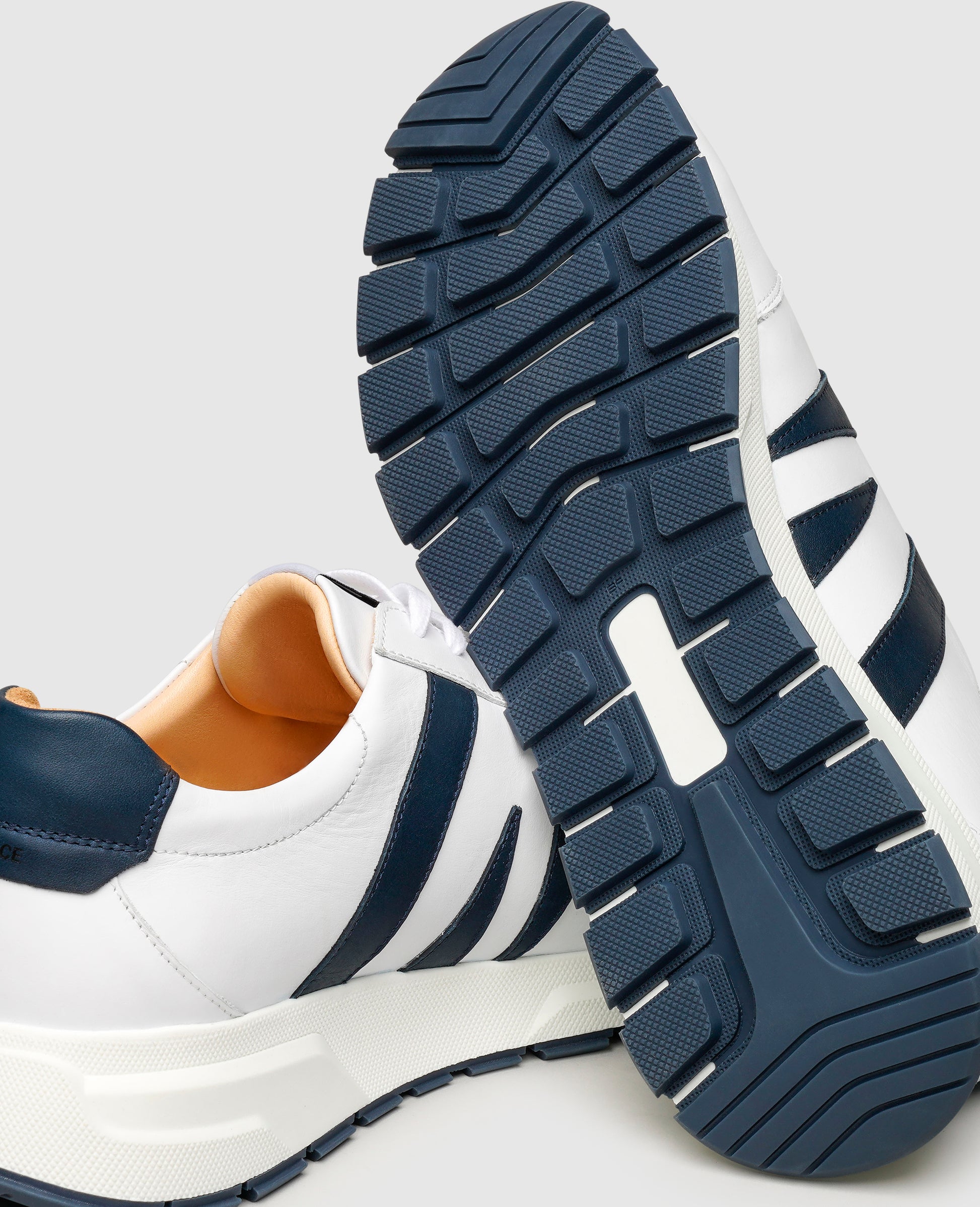 These handcrafted men's trainers from the N91 collection feature a sporty design. Smooth calfskin has been used for the shoe's upper, while its striking rubber outsole and lightweight construction are all about creating that contemporary trainer look. The logo emblem on the side references the shoe label's Berlin roots and adds a subtle dynamic accent without being too prominent.